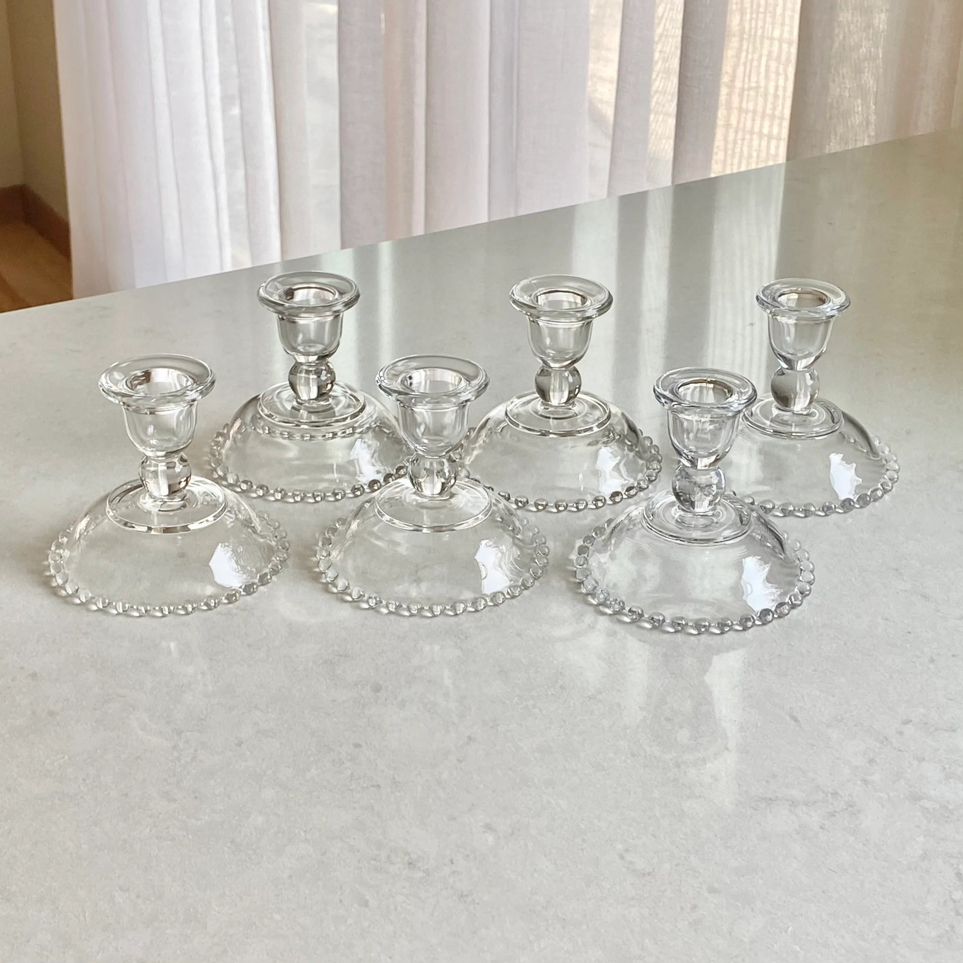 Vintage Imperial Glass Candlewick Beaded Edge Candle Holders (circa 1936 - 1984) - 6 available