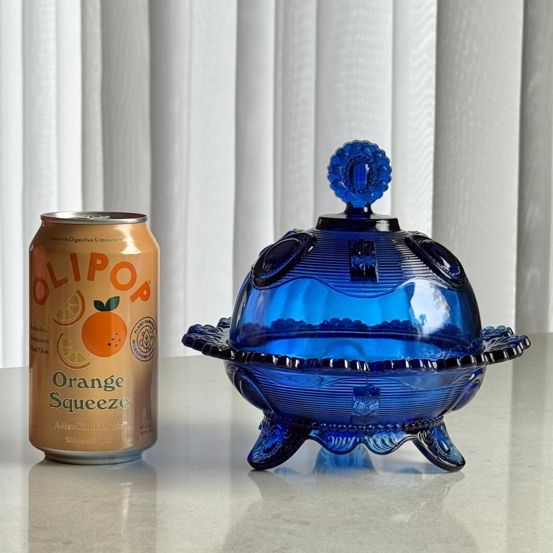 Vintage Imperial Glass Cobalt Blue Tri-Foot Lidded Dish