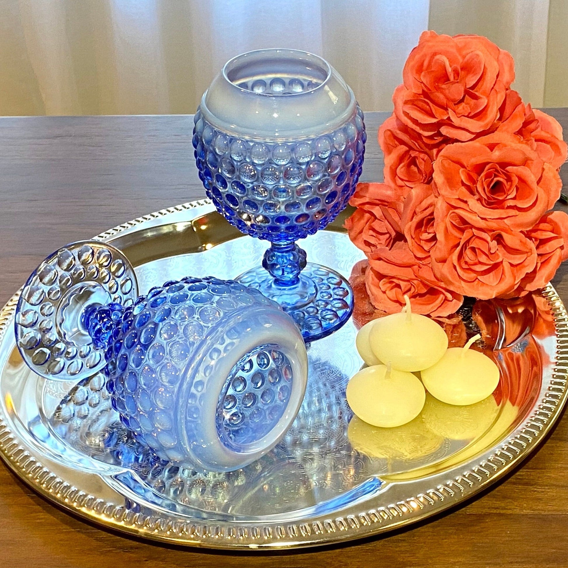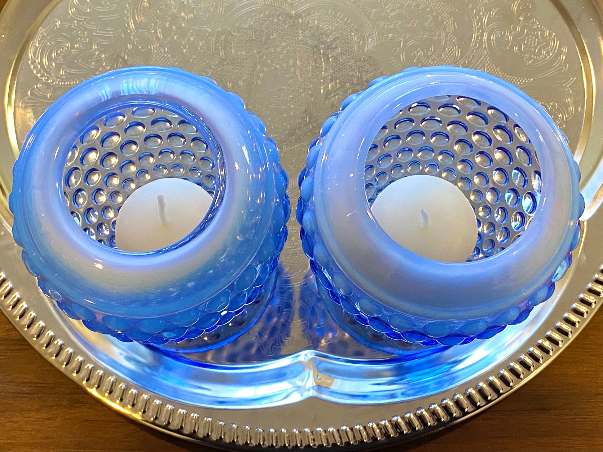 Vintage Imperial Glass Opalescent Blue Hobnail Vase or Candle Holder