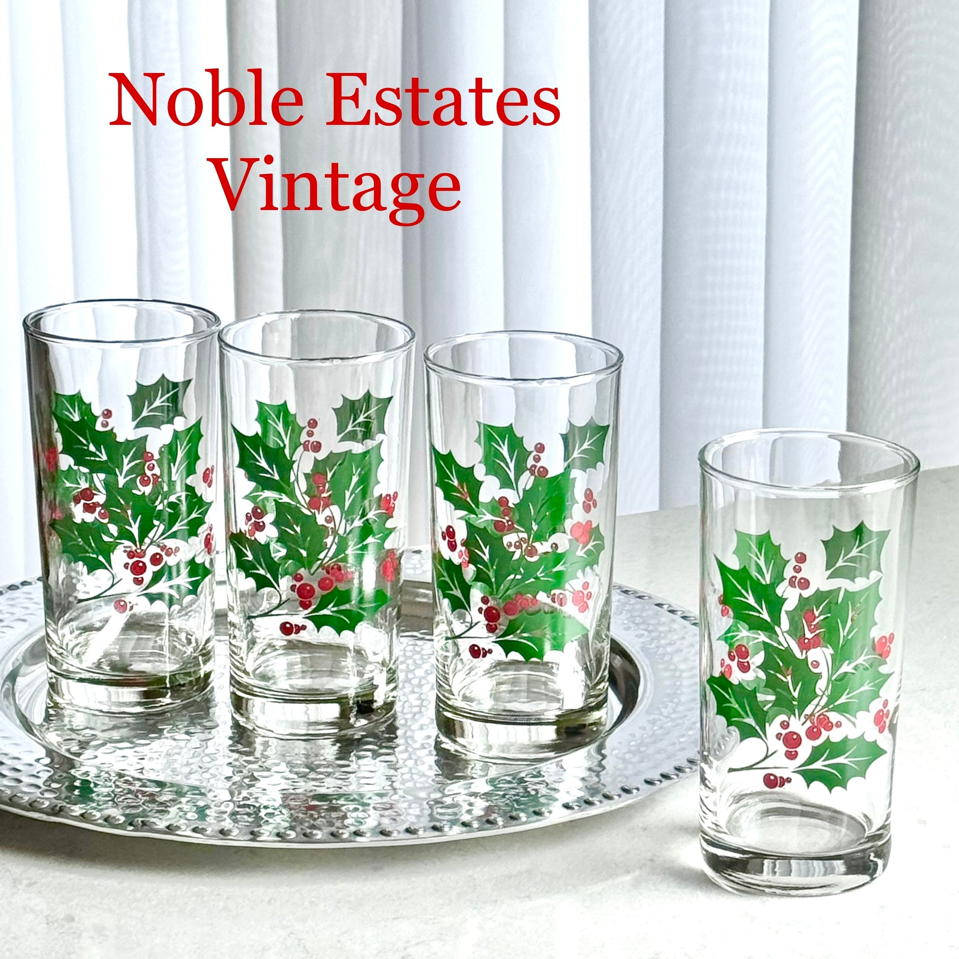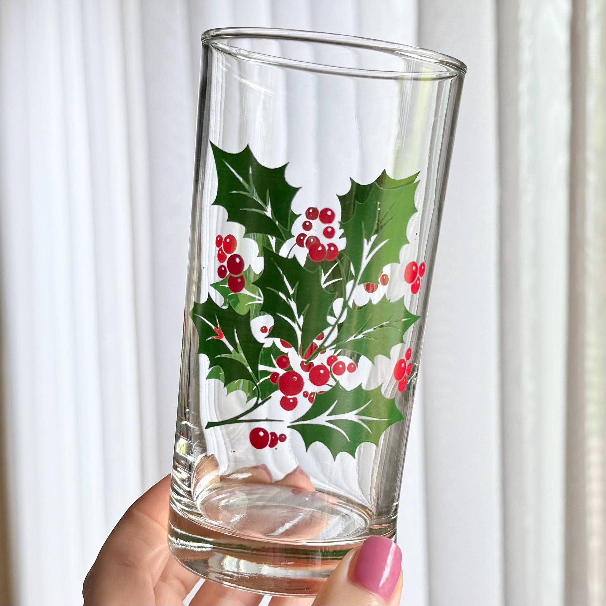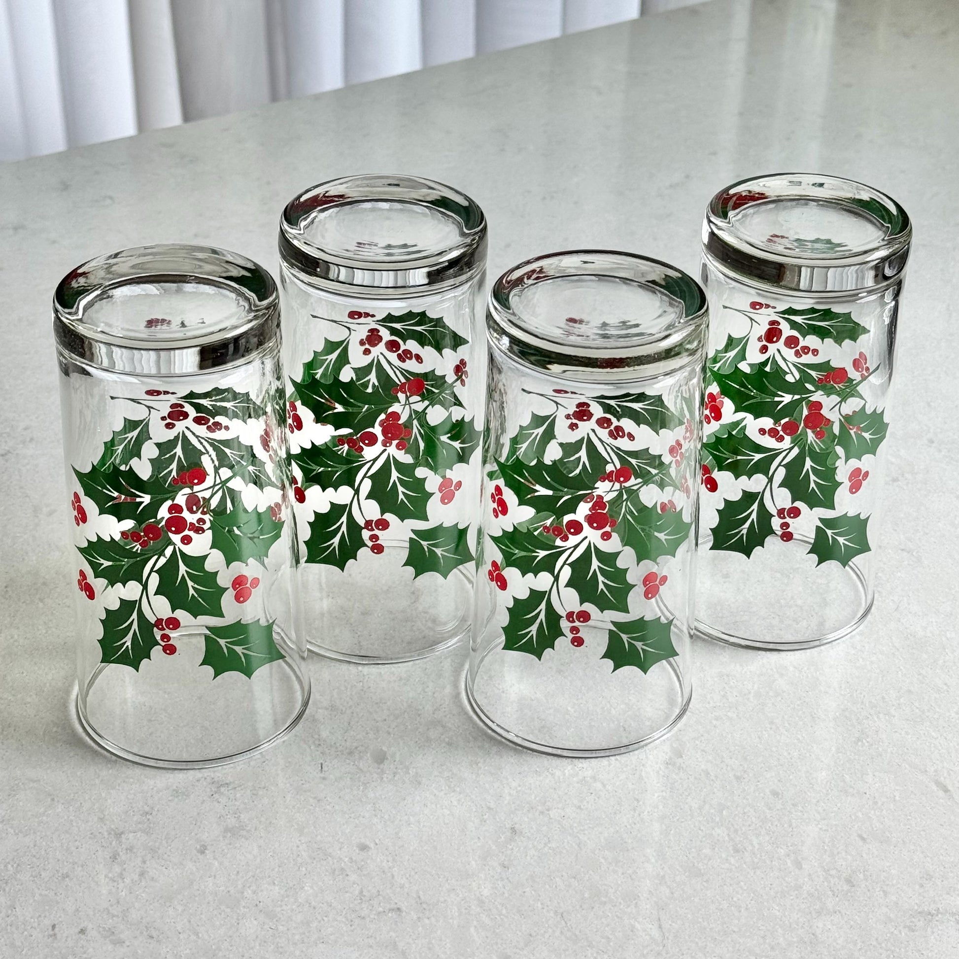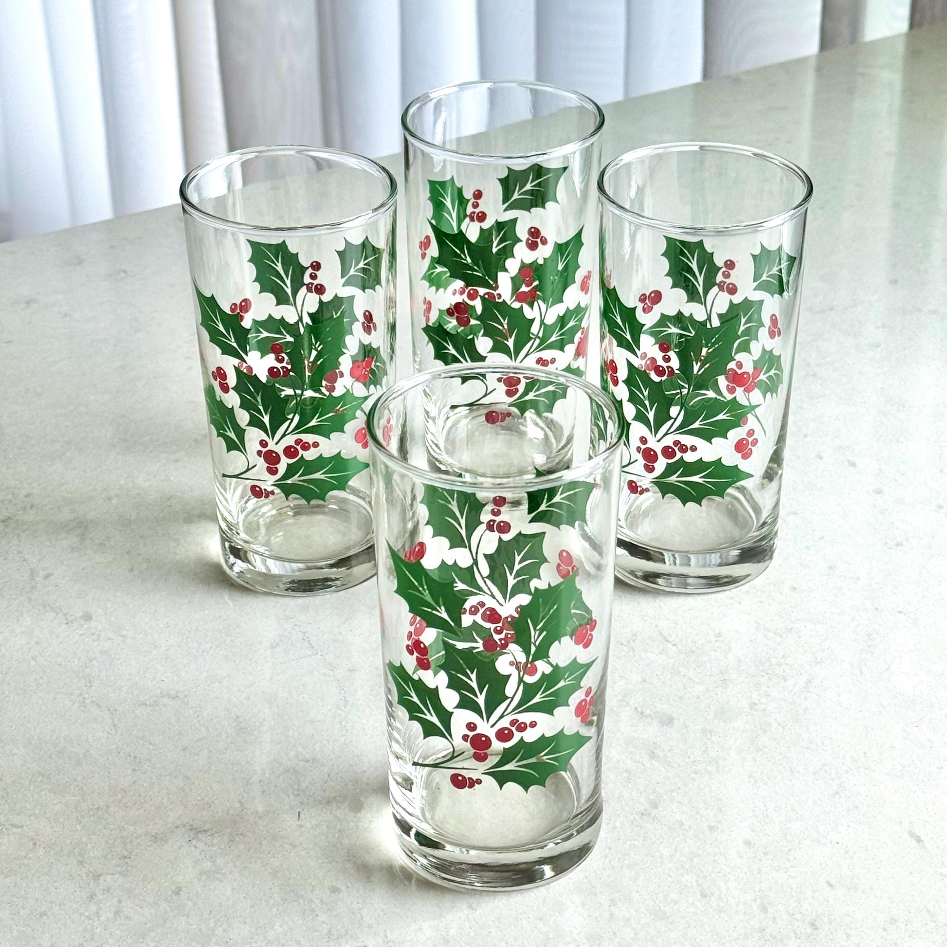 Vintage Indiana Glass 12 Ounce Holly Tumblers - Set of 4