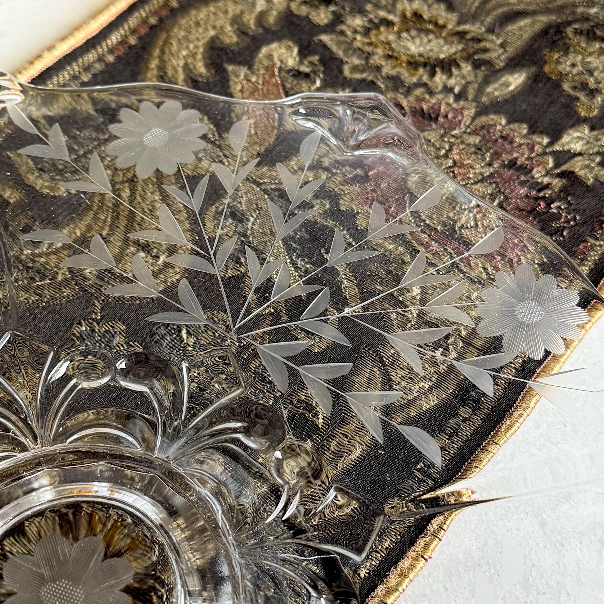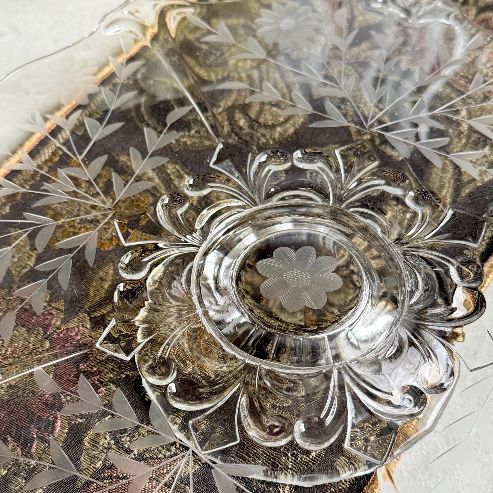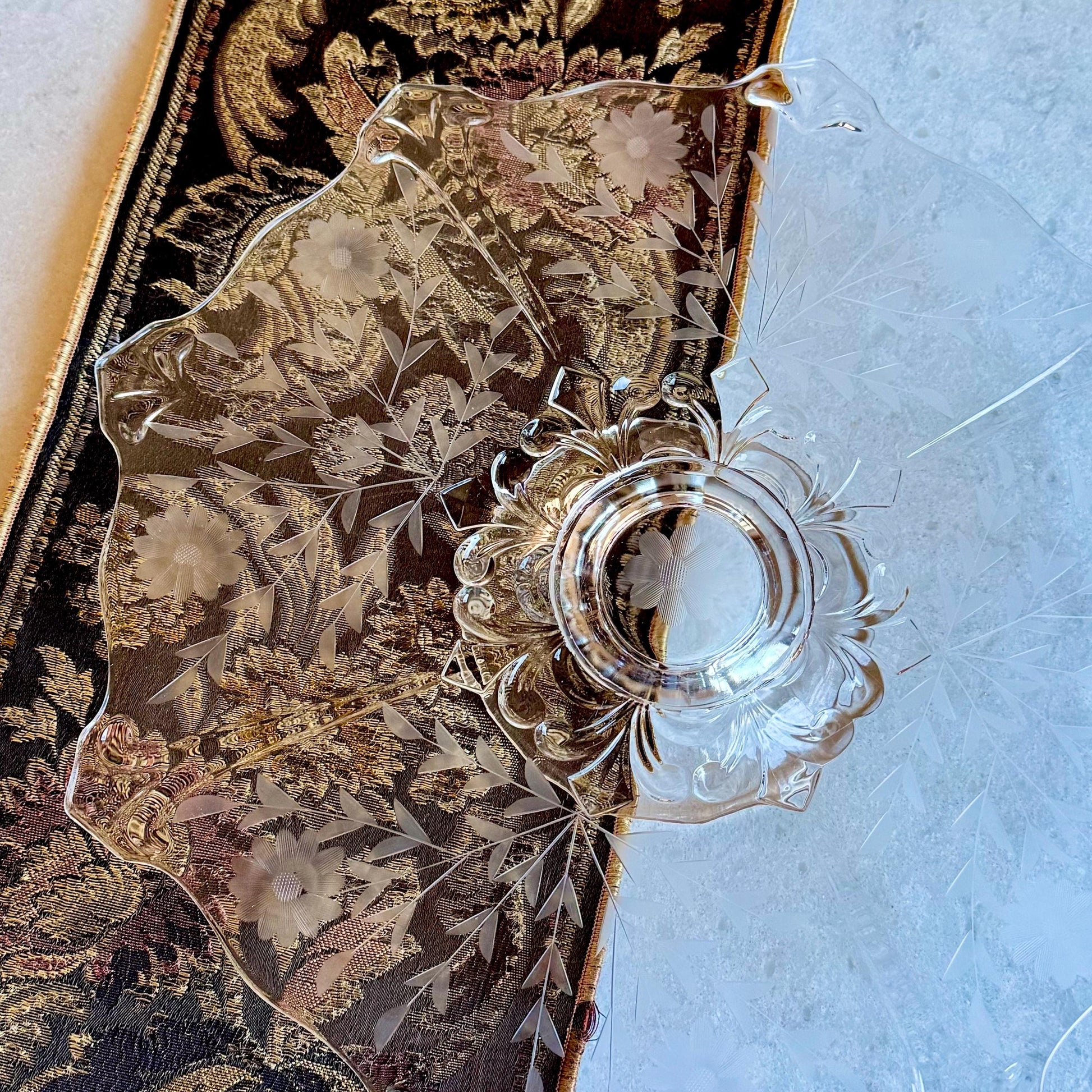 Vintage Indiana Glass 14 Inch Double Fleur De Lis Etched Cake Plate
