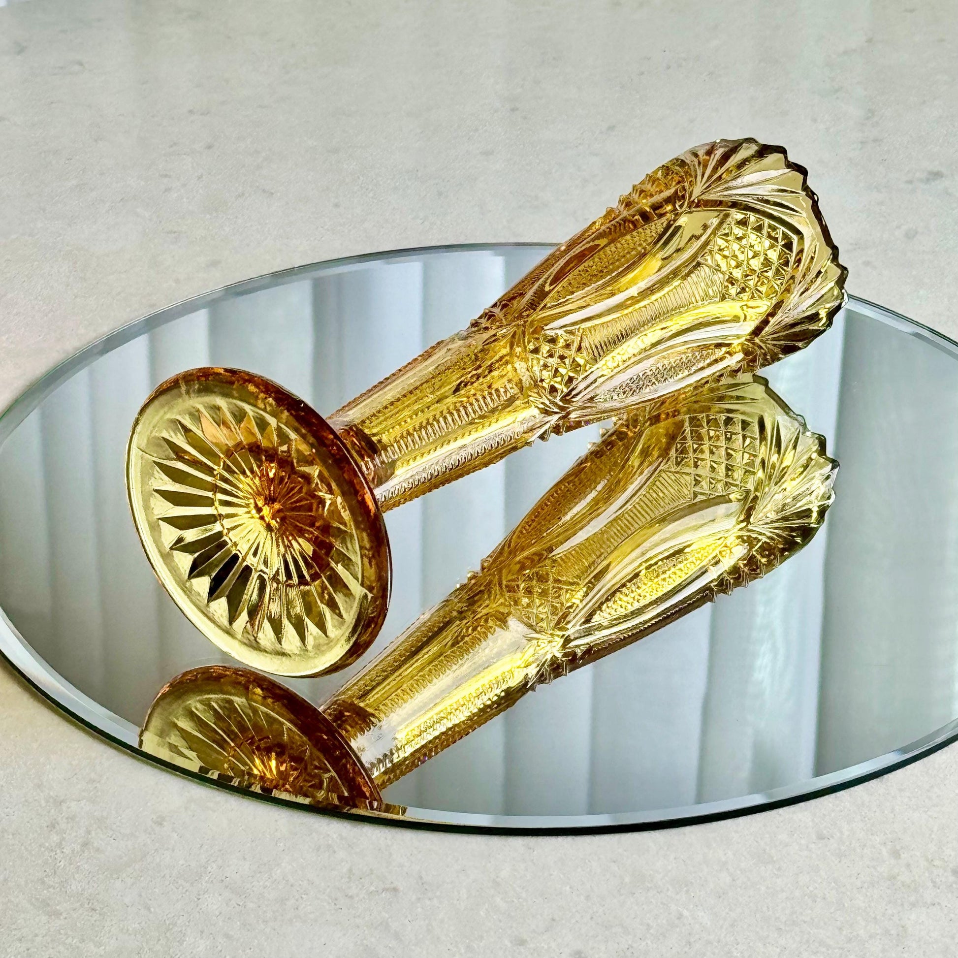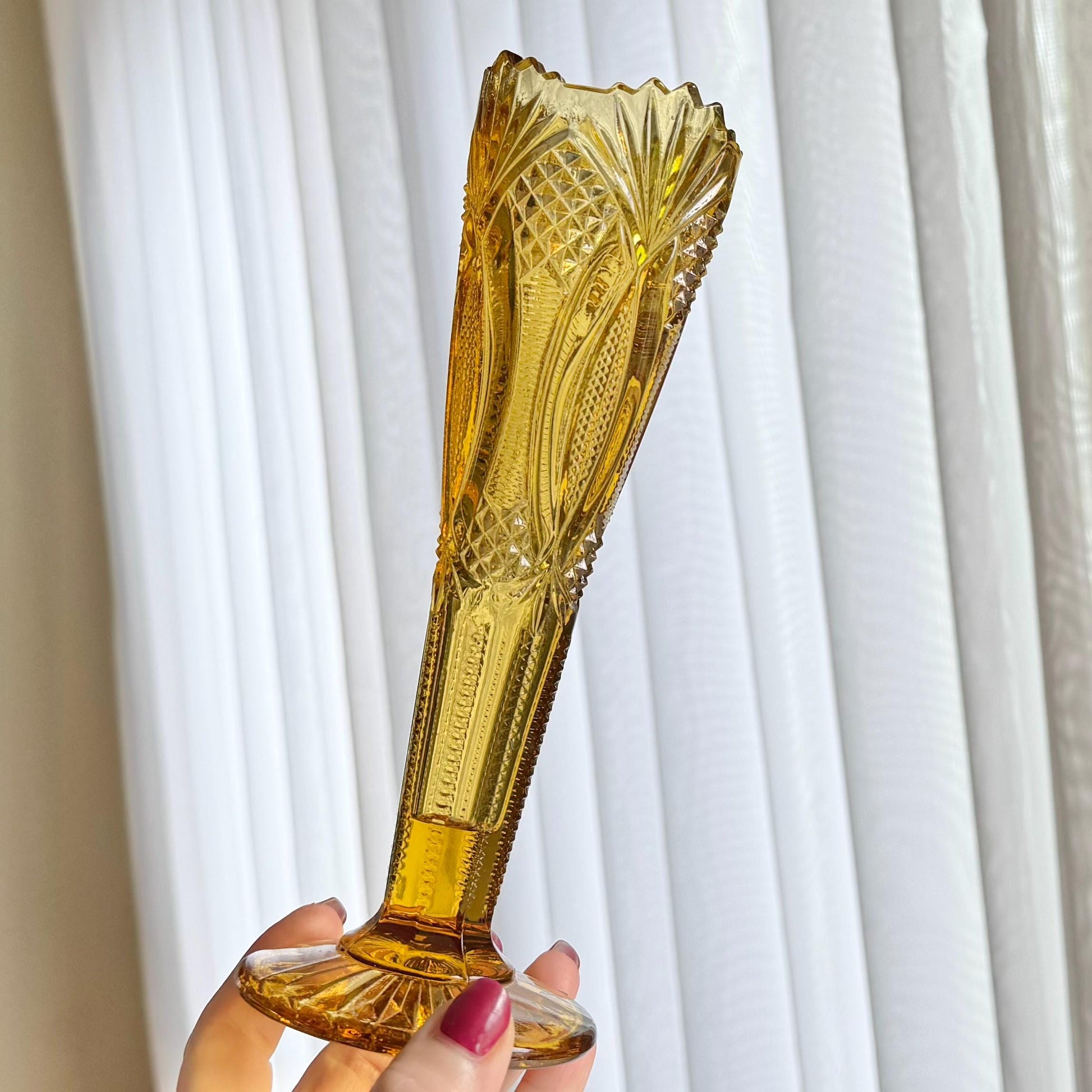 Approximately 8-1/4" tall and 3-1/4" across the base. Excellent vintage condition, but please note it leans slightly as shown in the photos.