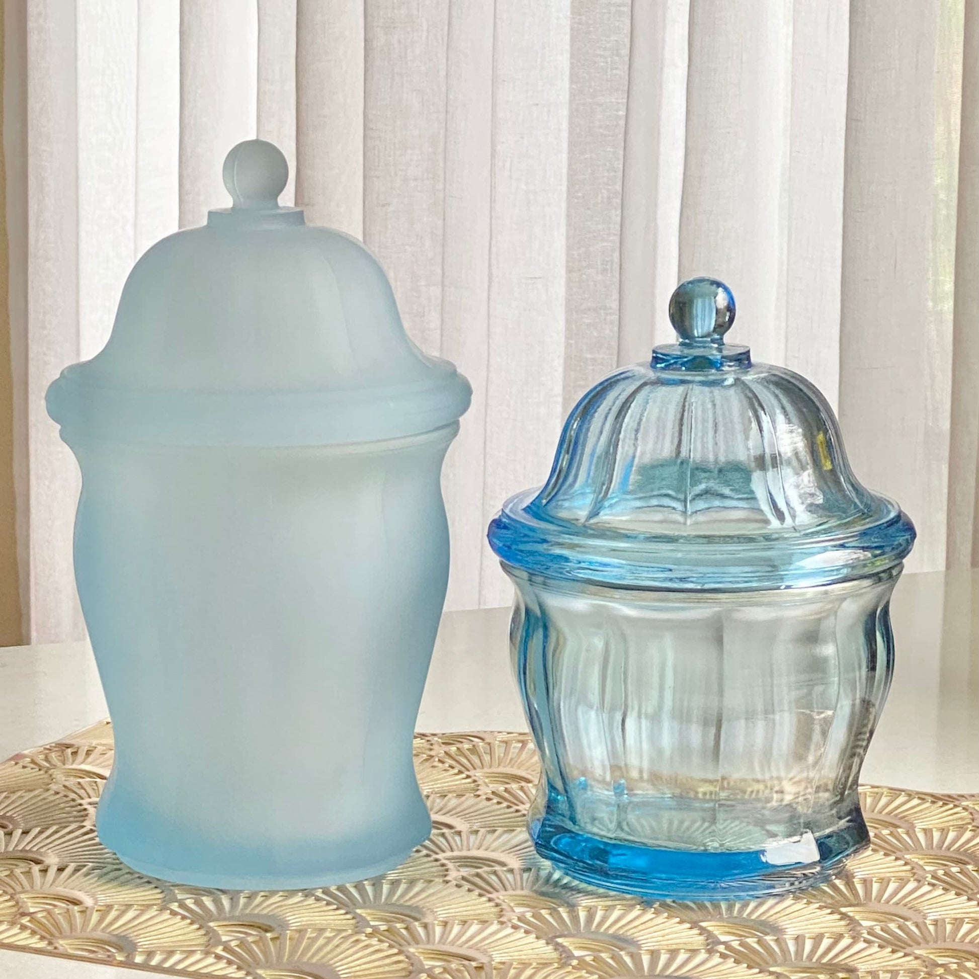 There is also a clear blue jar in a smaller size available as shown in the last photo and listed separately.
