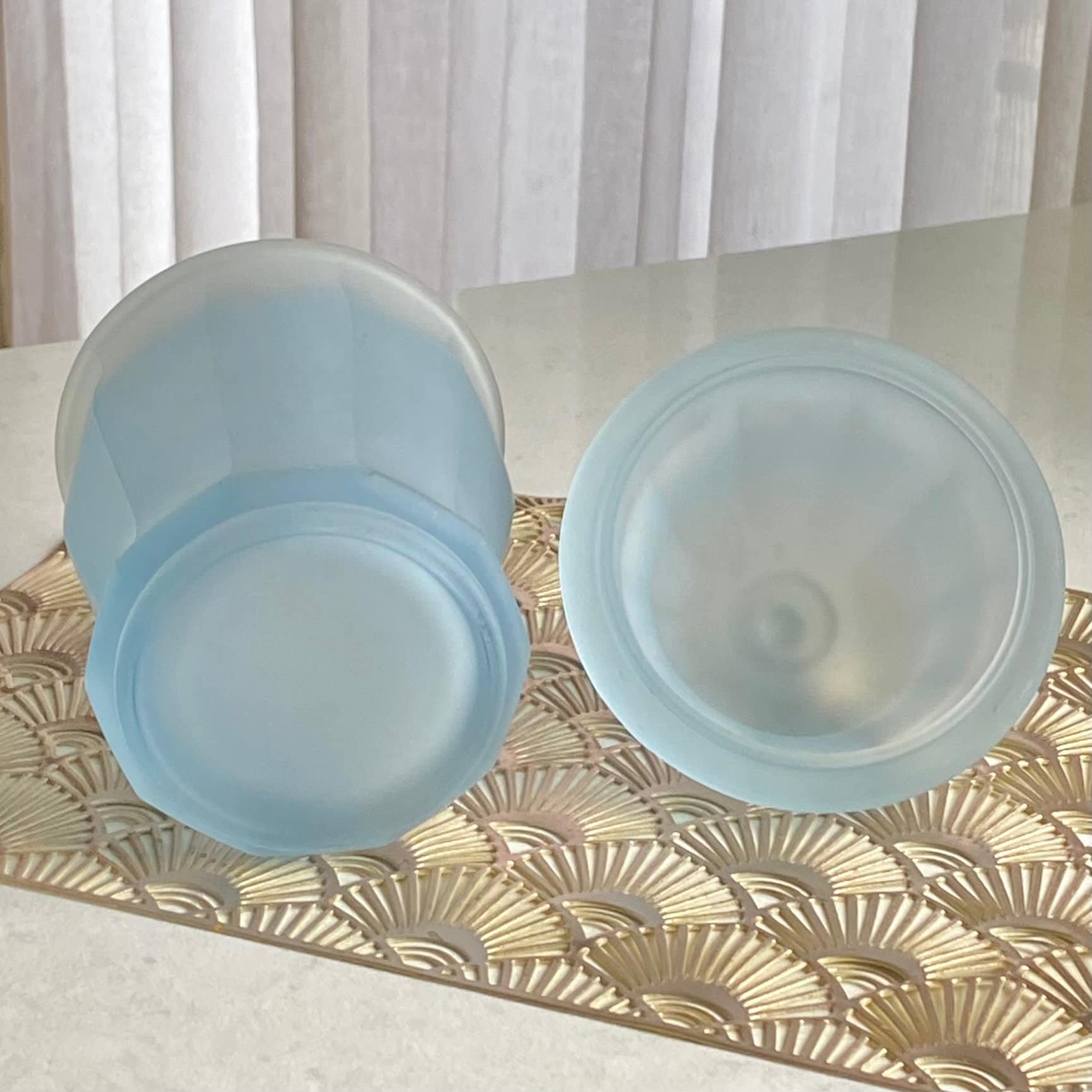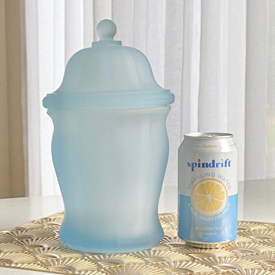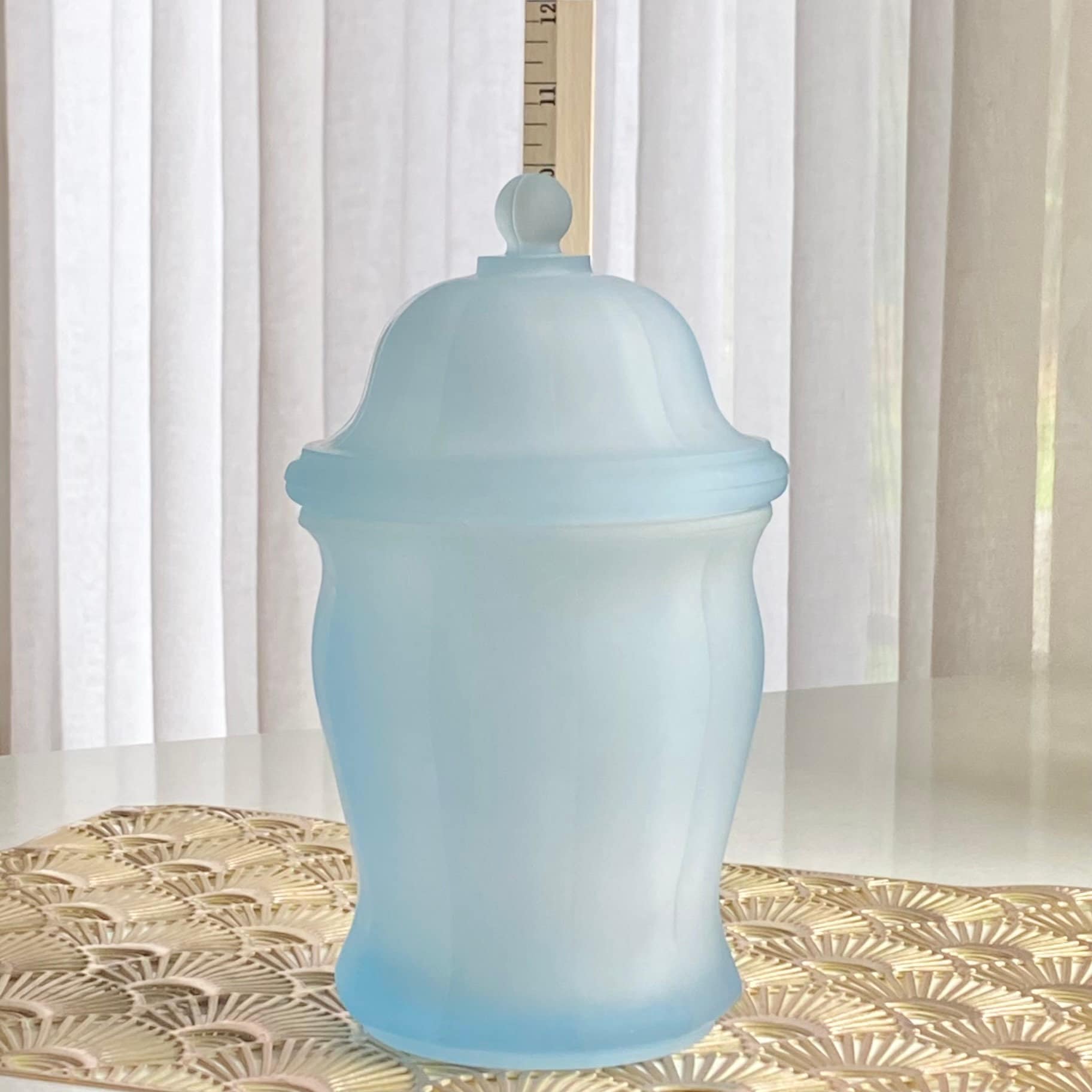 Vintage Indiana Glass Satin Frosted Blue 10 Inch Jar with Lid