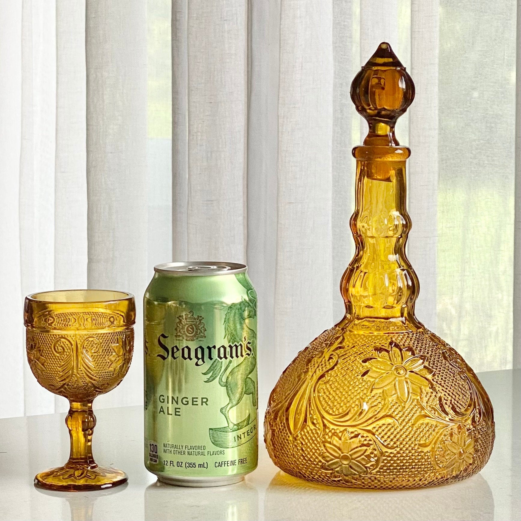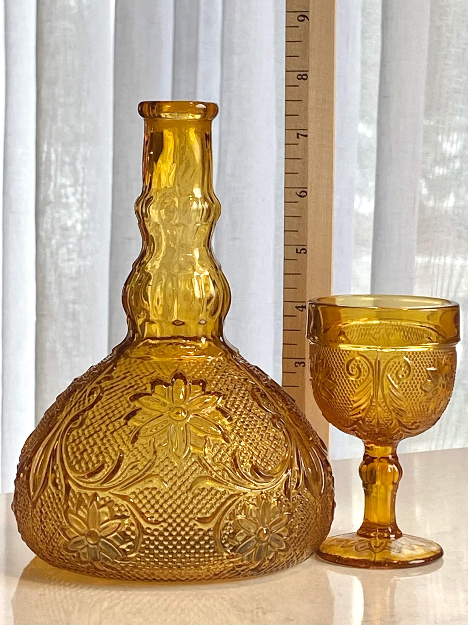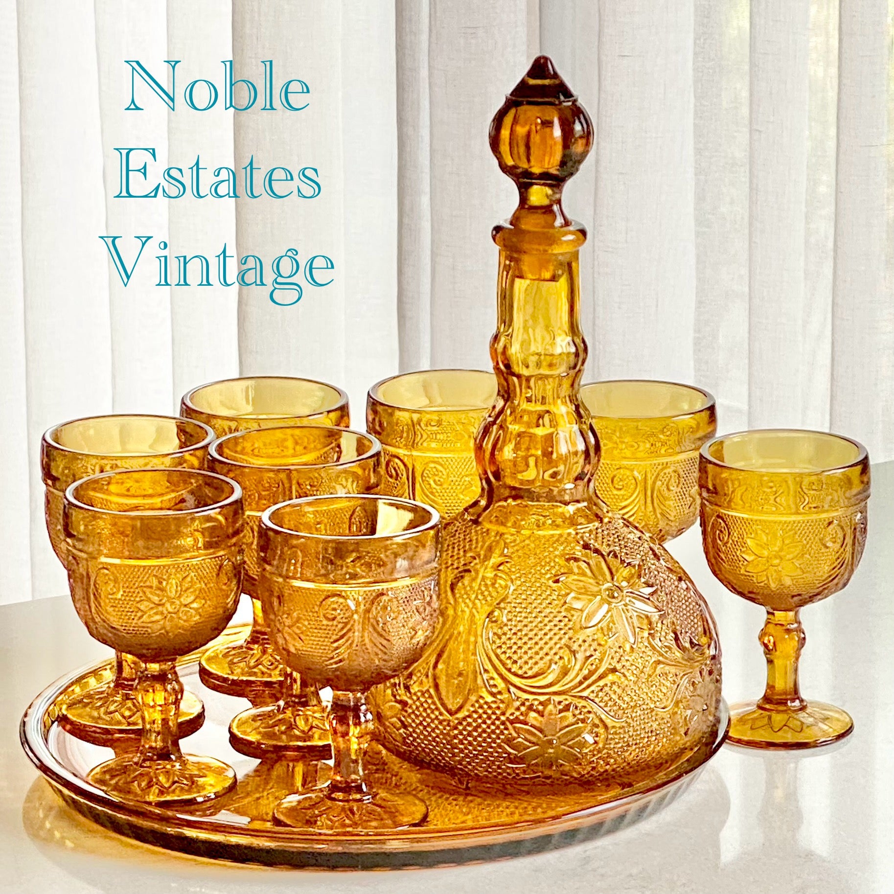 Vintage Indiana Glass Tiara Sandwich Chantilly Amber Decanter Set with Tray and Eight Glasses (circa 1971 - 1989)