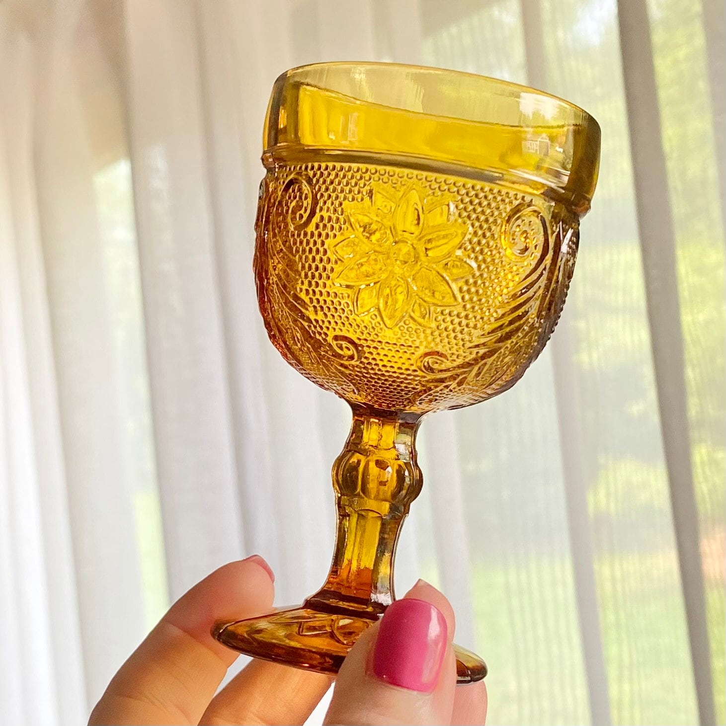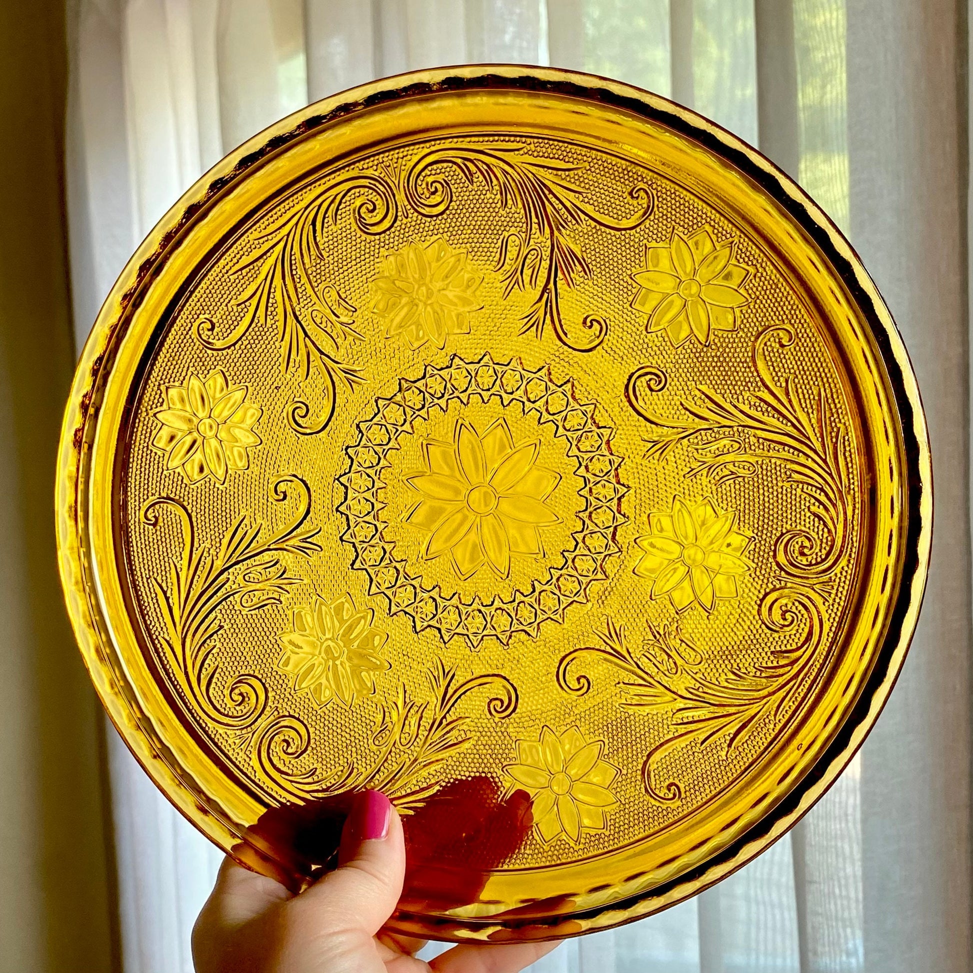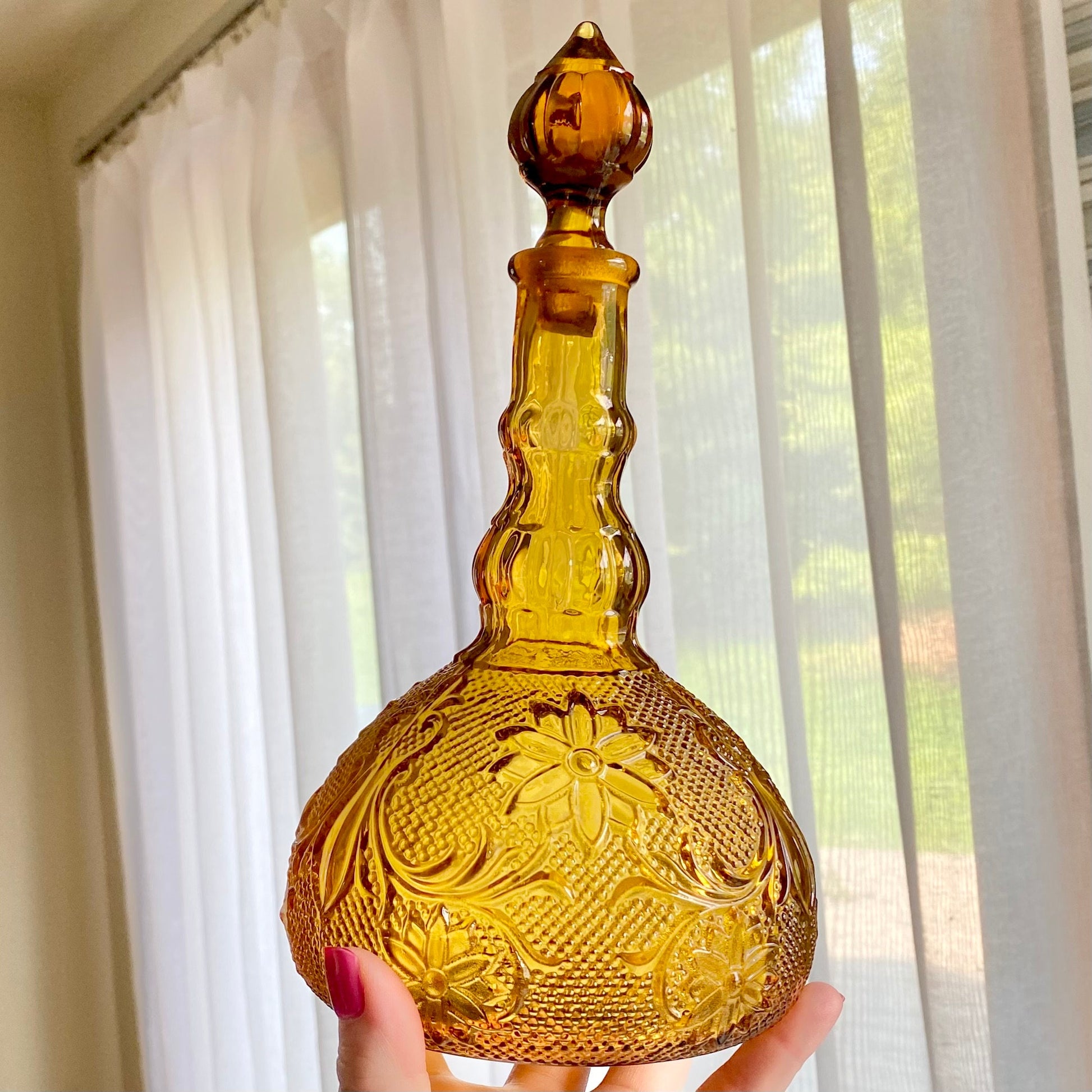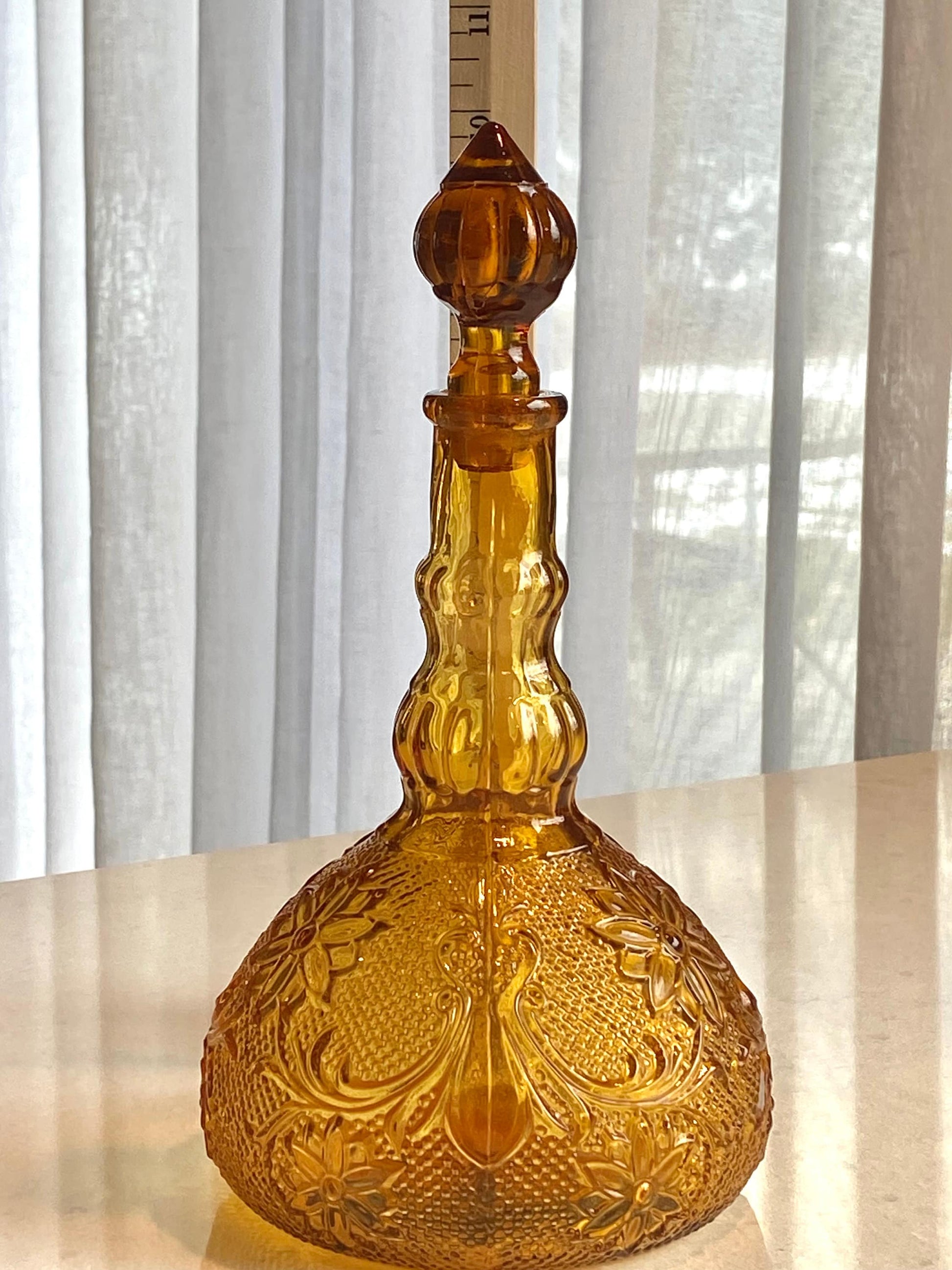 Vintage Indiana Glass Tiara Sandwich Chantilly Amber Decanter Set with Tray and Eight Glasses (circa 1971 - 1989)