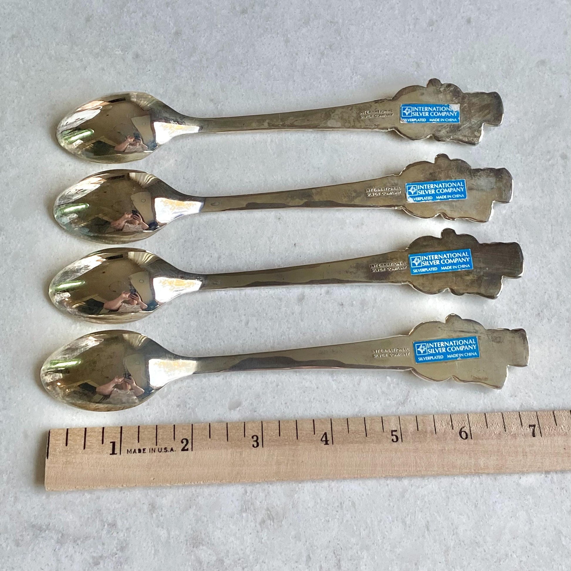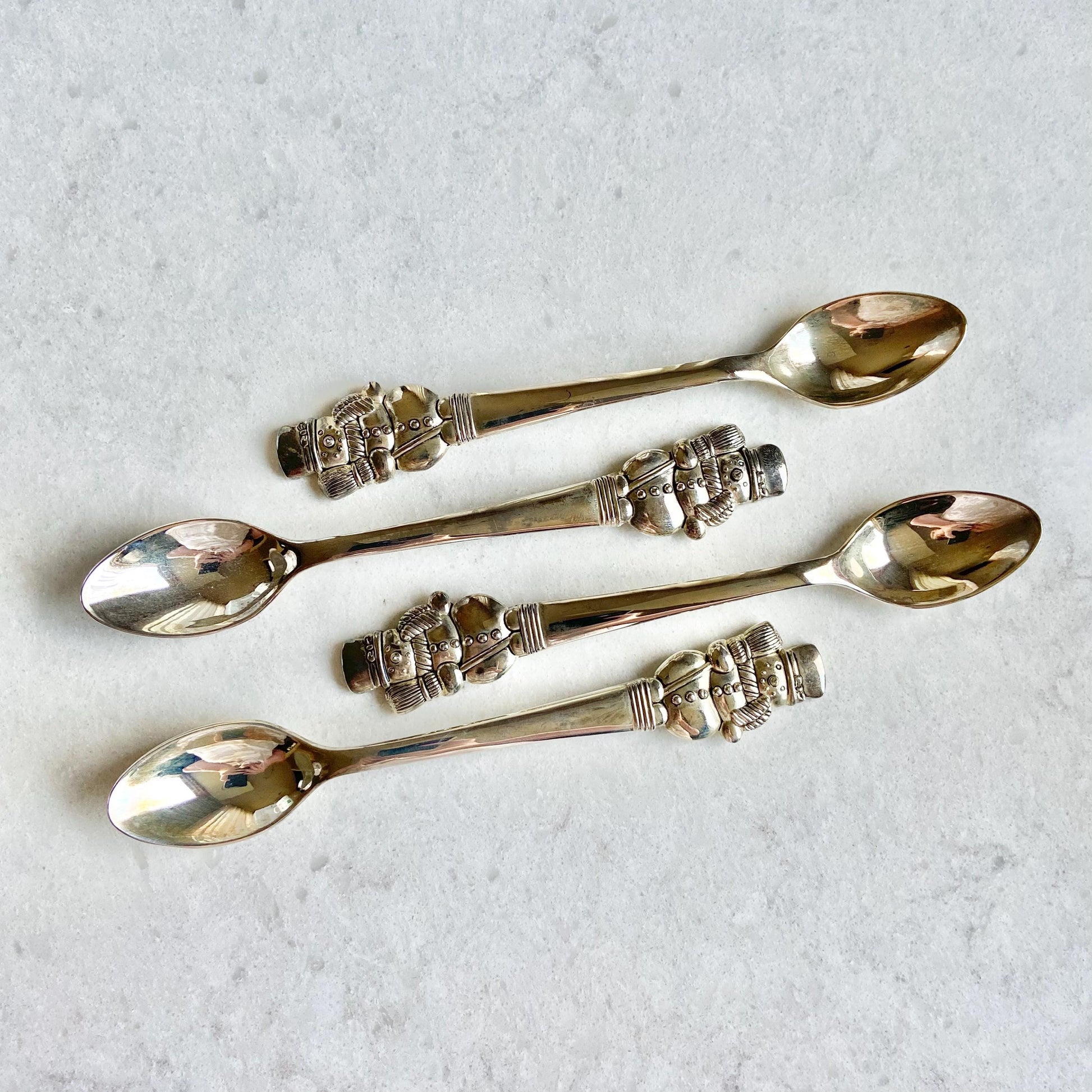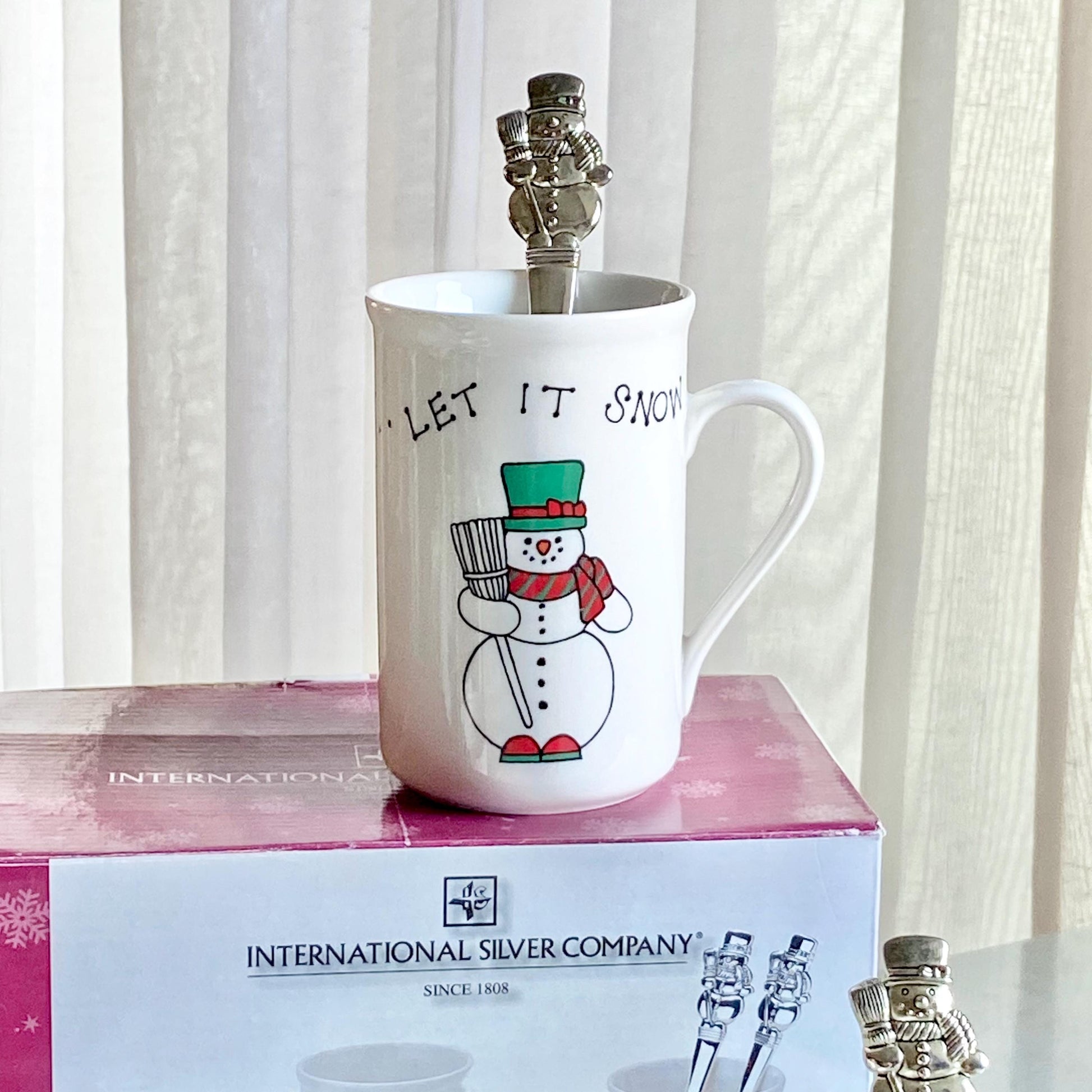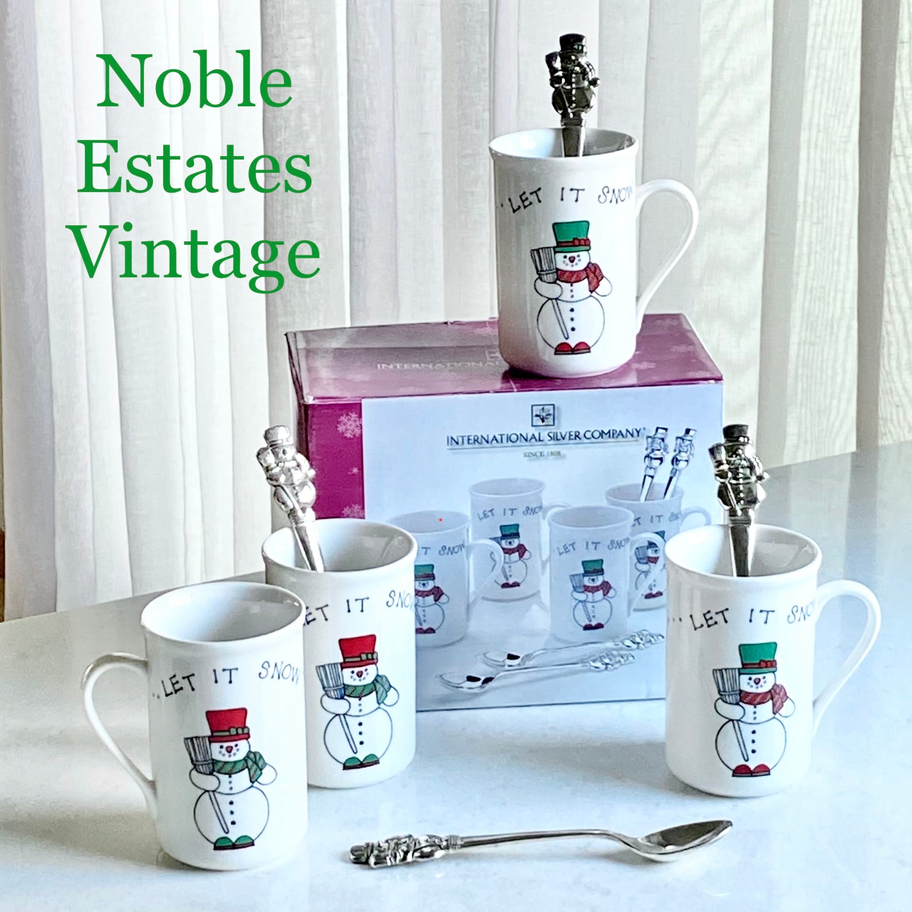 Vintage International Silver Let it Snow Snowman Mugs and Spoons - 4 sets, 8 pieces total