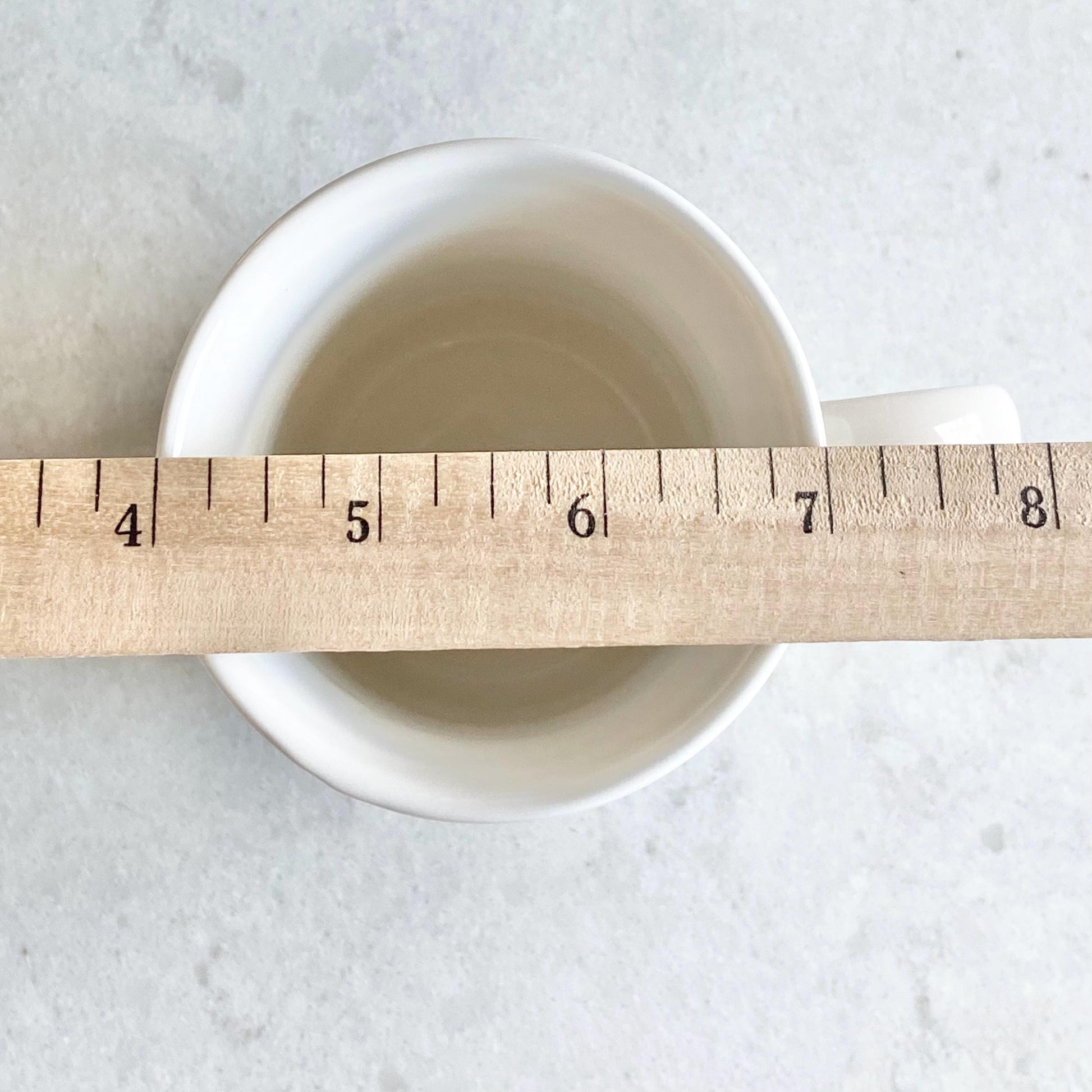 The cups are approximately 4-3/4" tall and 3" across the rim with a capacity of about 12 ounces completely full. The spoons are approximately 7" long.