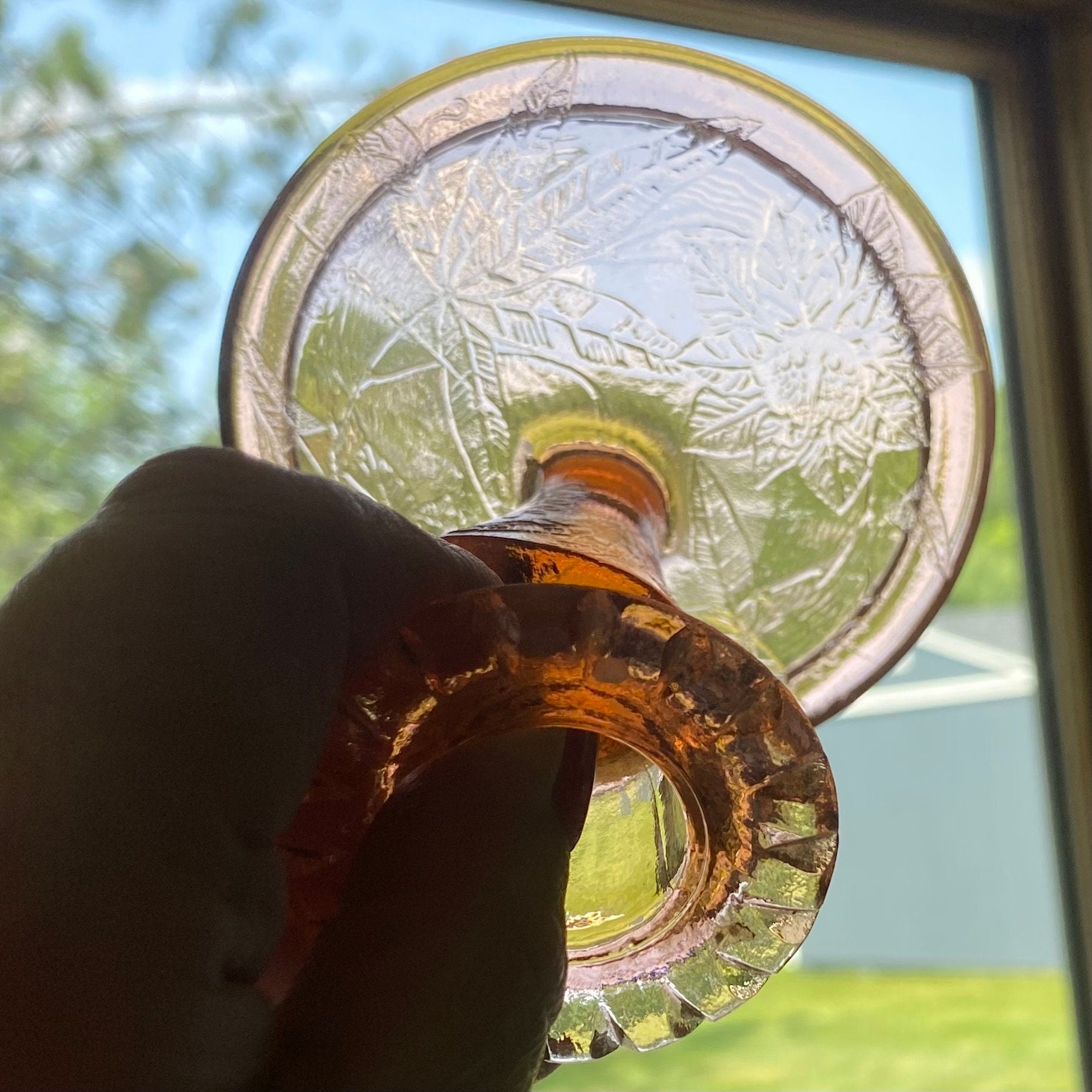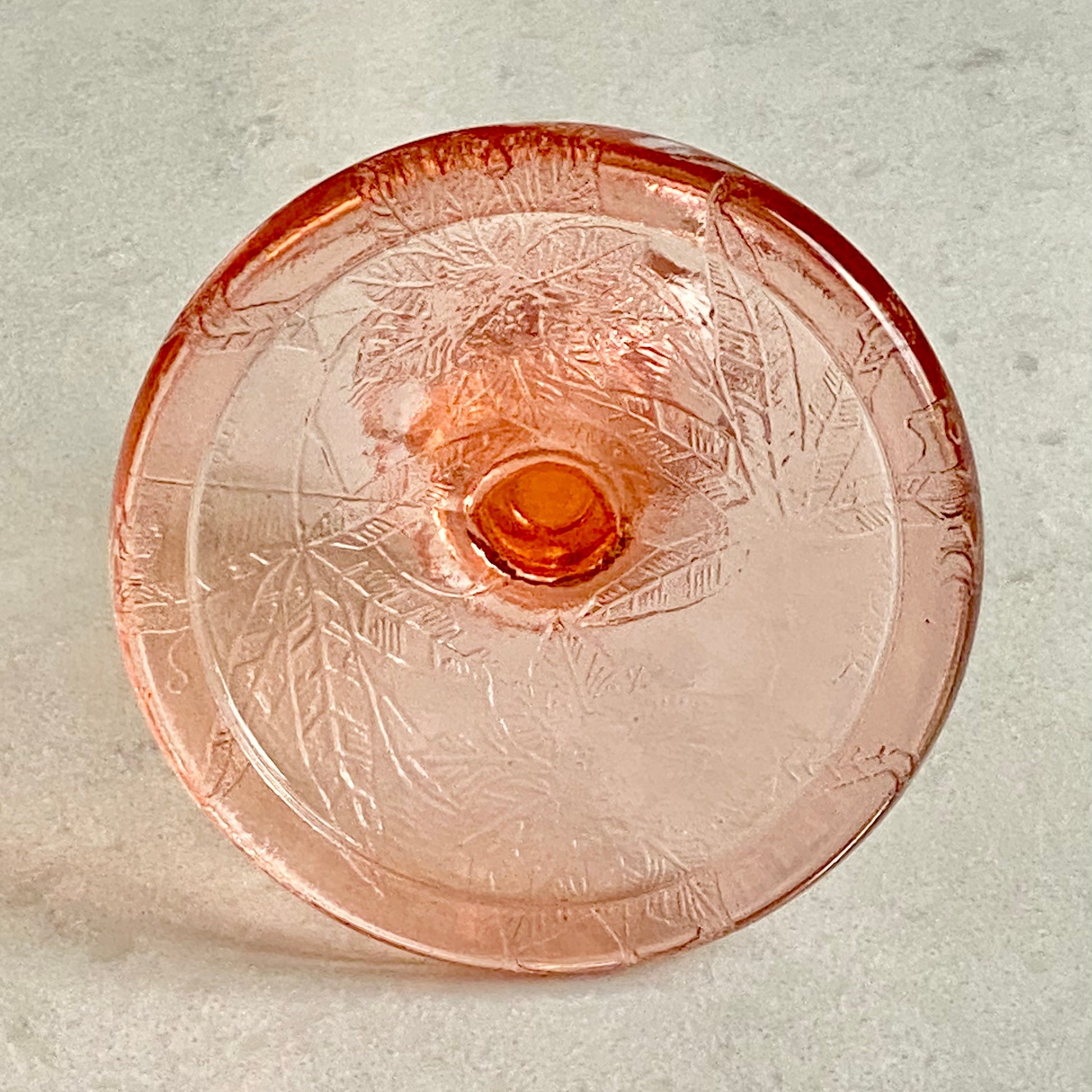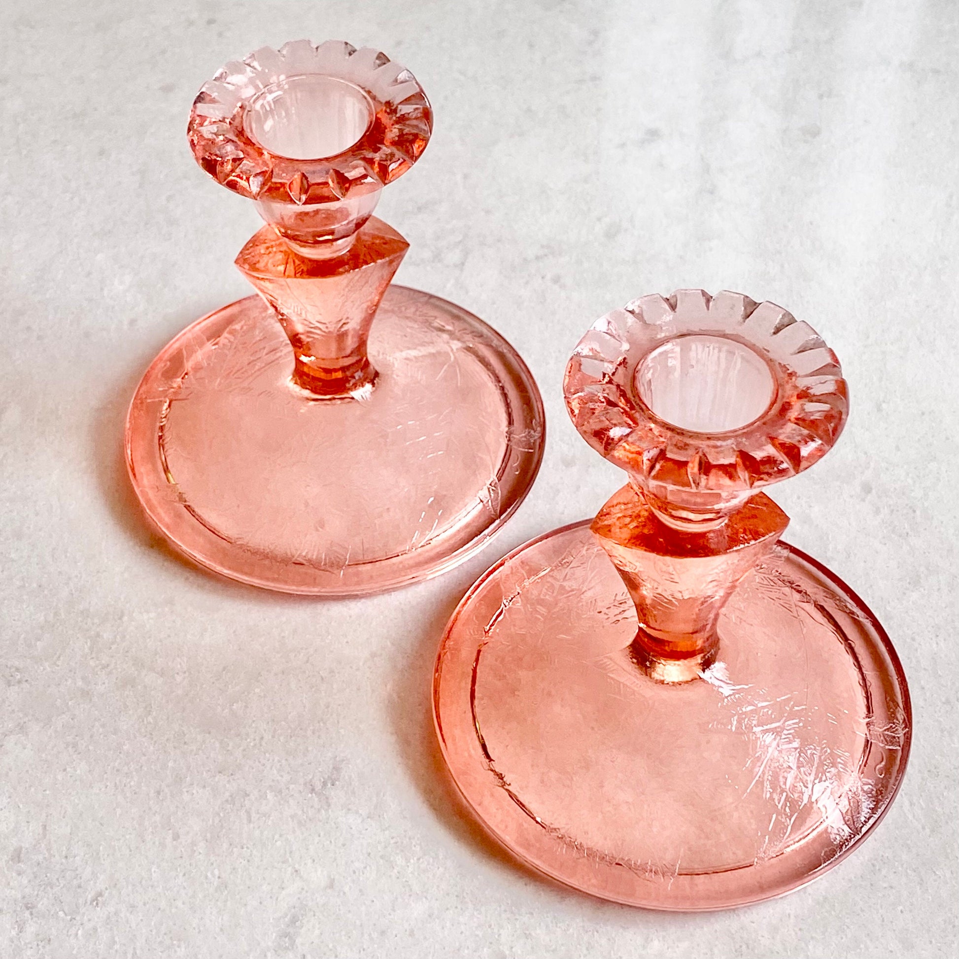 Vintage Jeannette Glass Floral Poinsettia Etched Pink Candle Holders (circa 1932 - 1935) - Set of 2