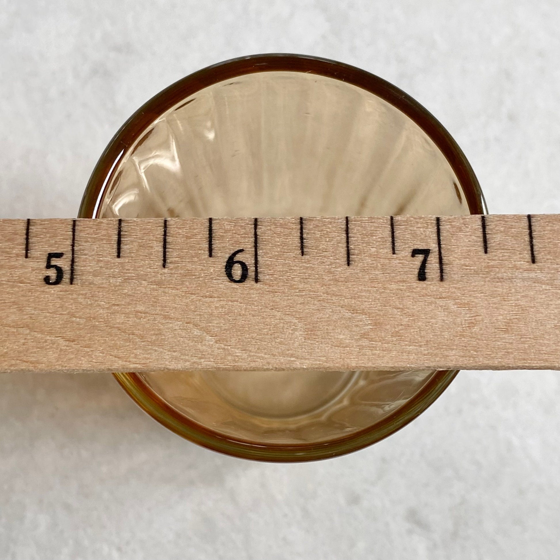 Approximately 3-7/8" tall and 2-1/4" across the rim with a capacity of about 5 ounces completely full.