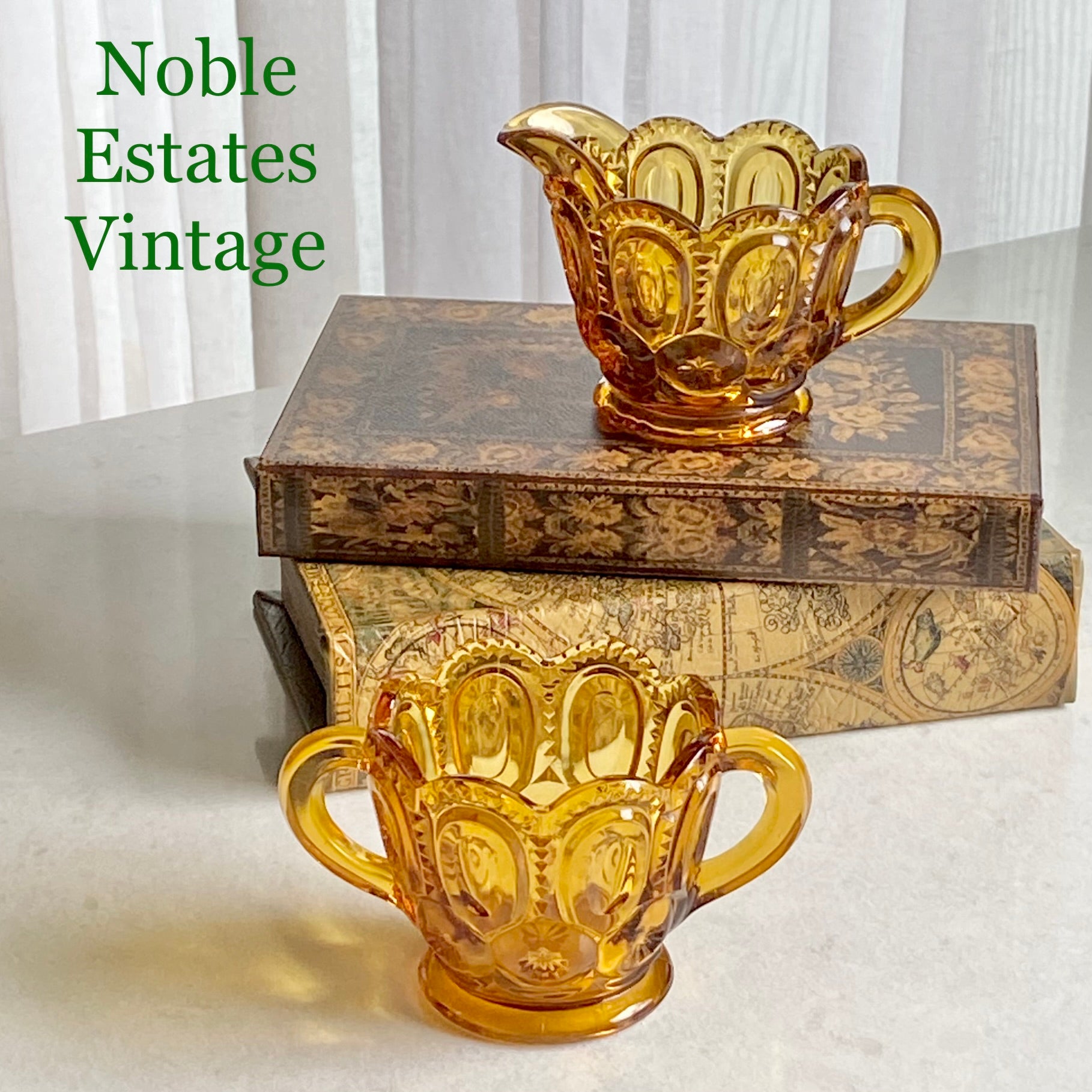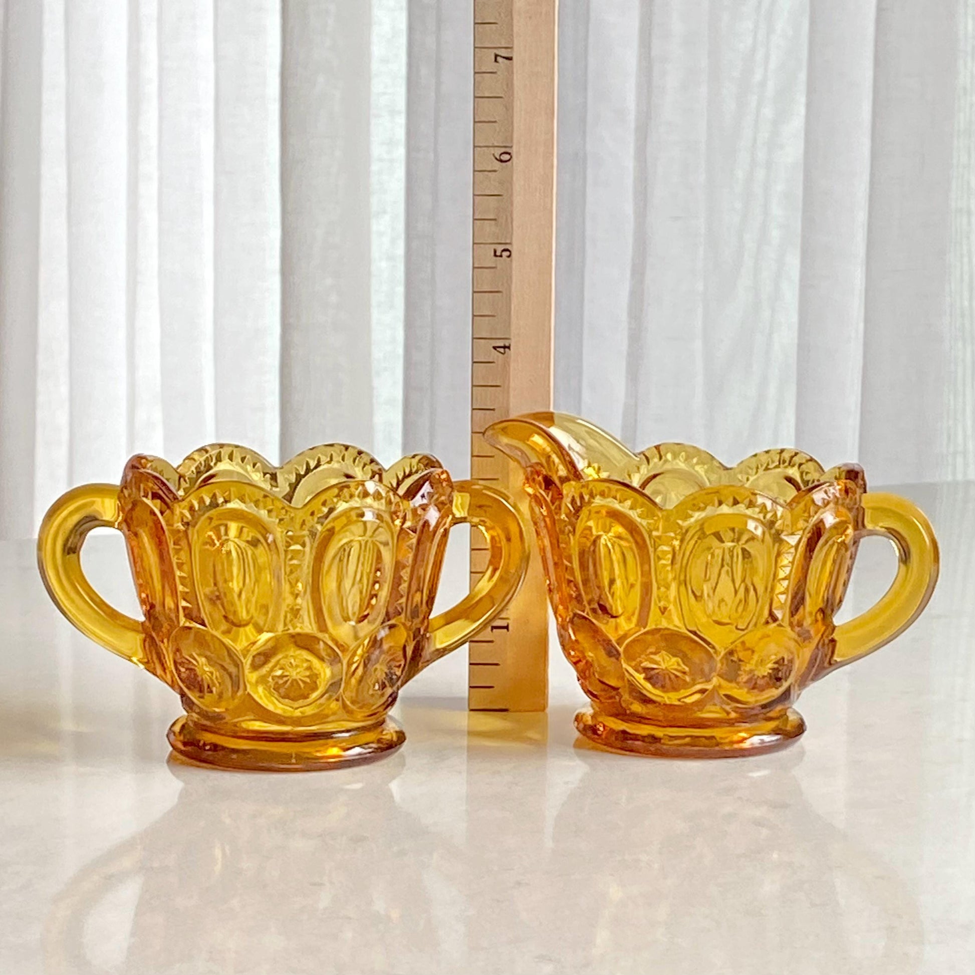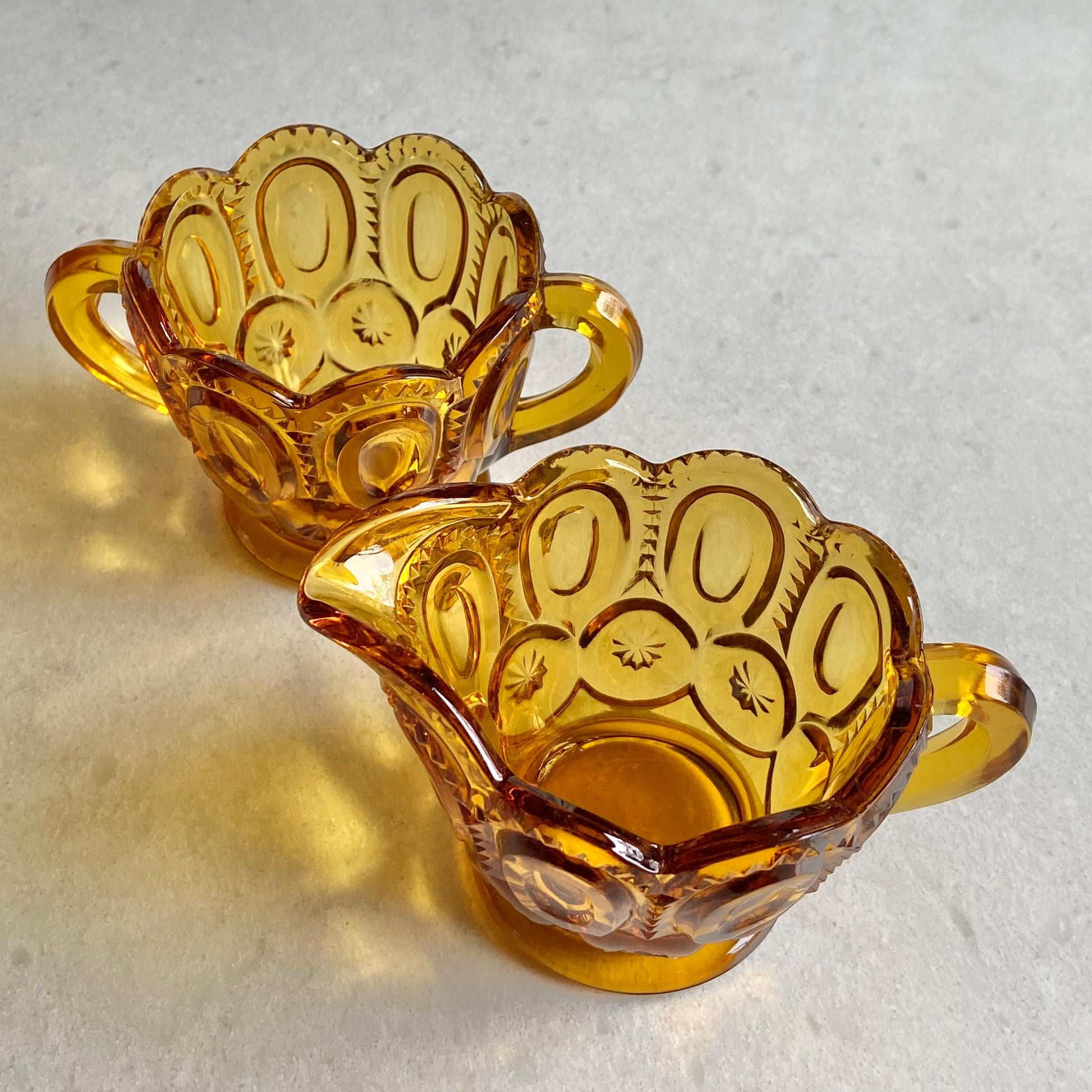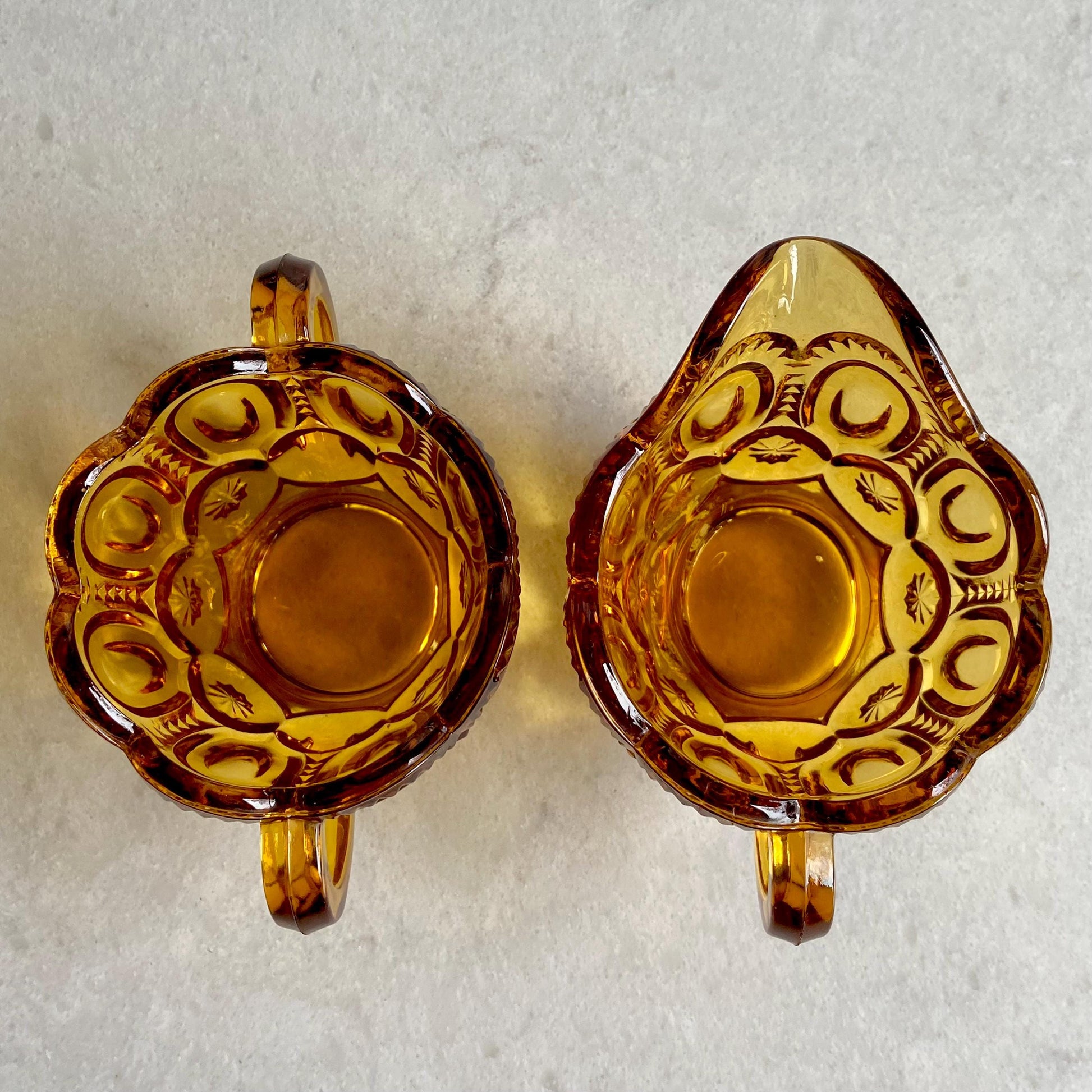 Vintage L.E. Smith Heritage Amber Moon and Stars Sugar and Creamer Set