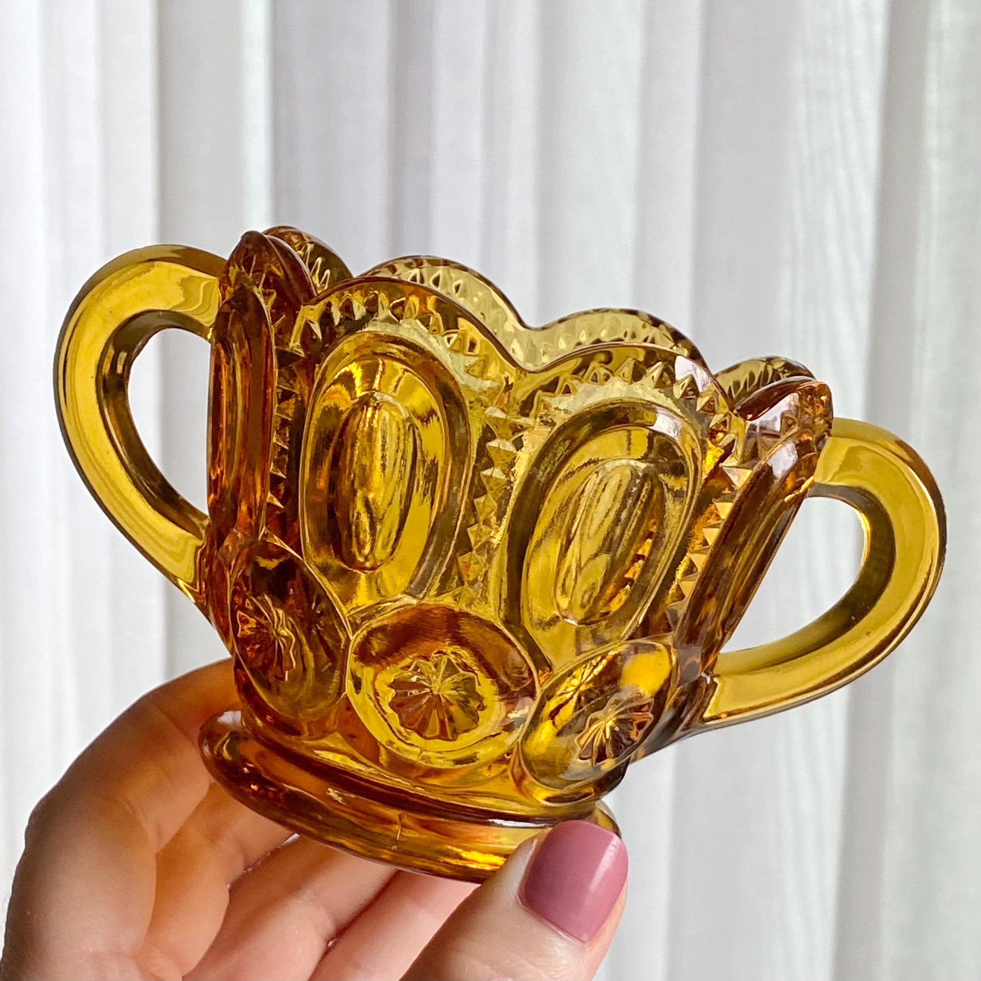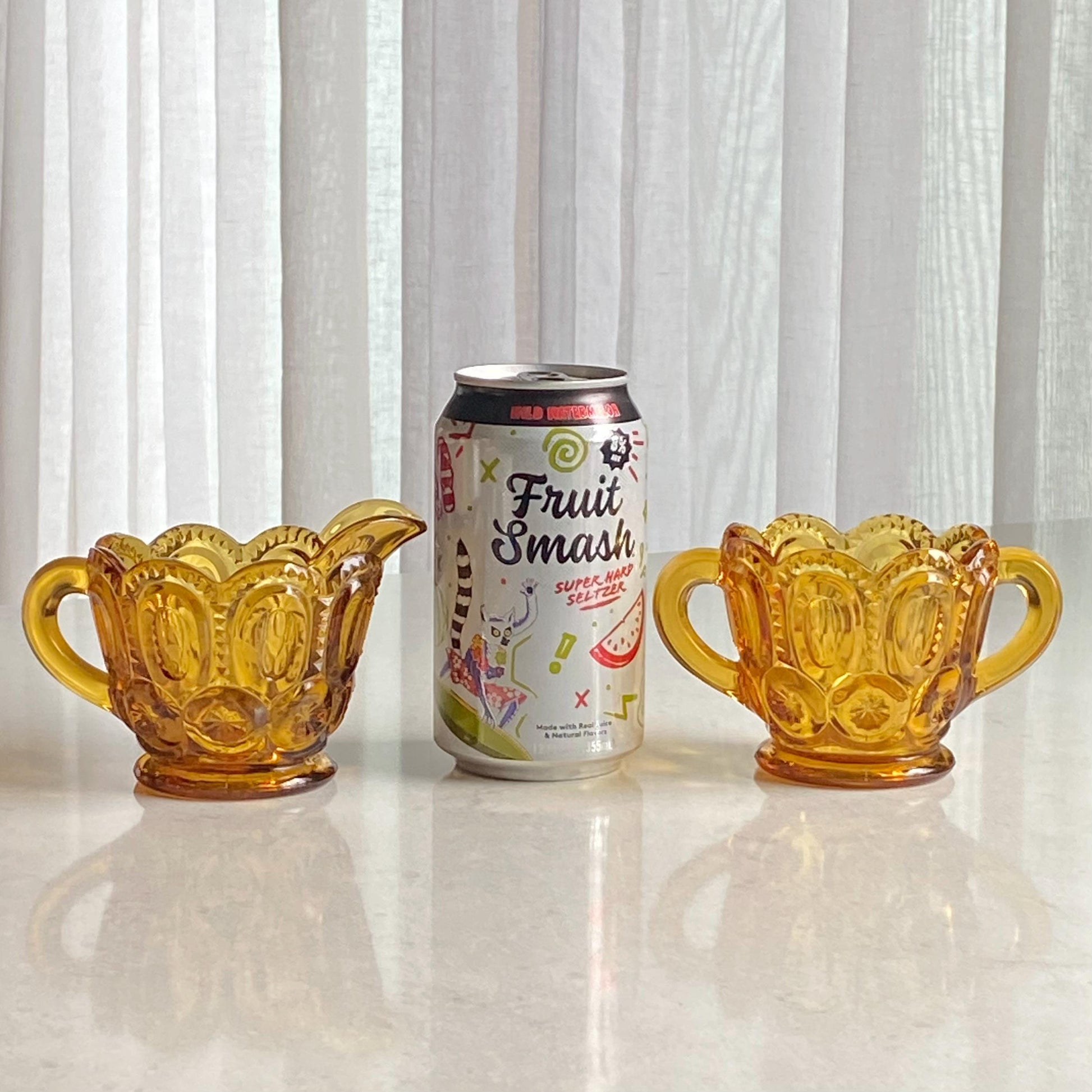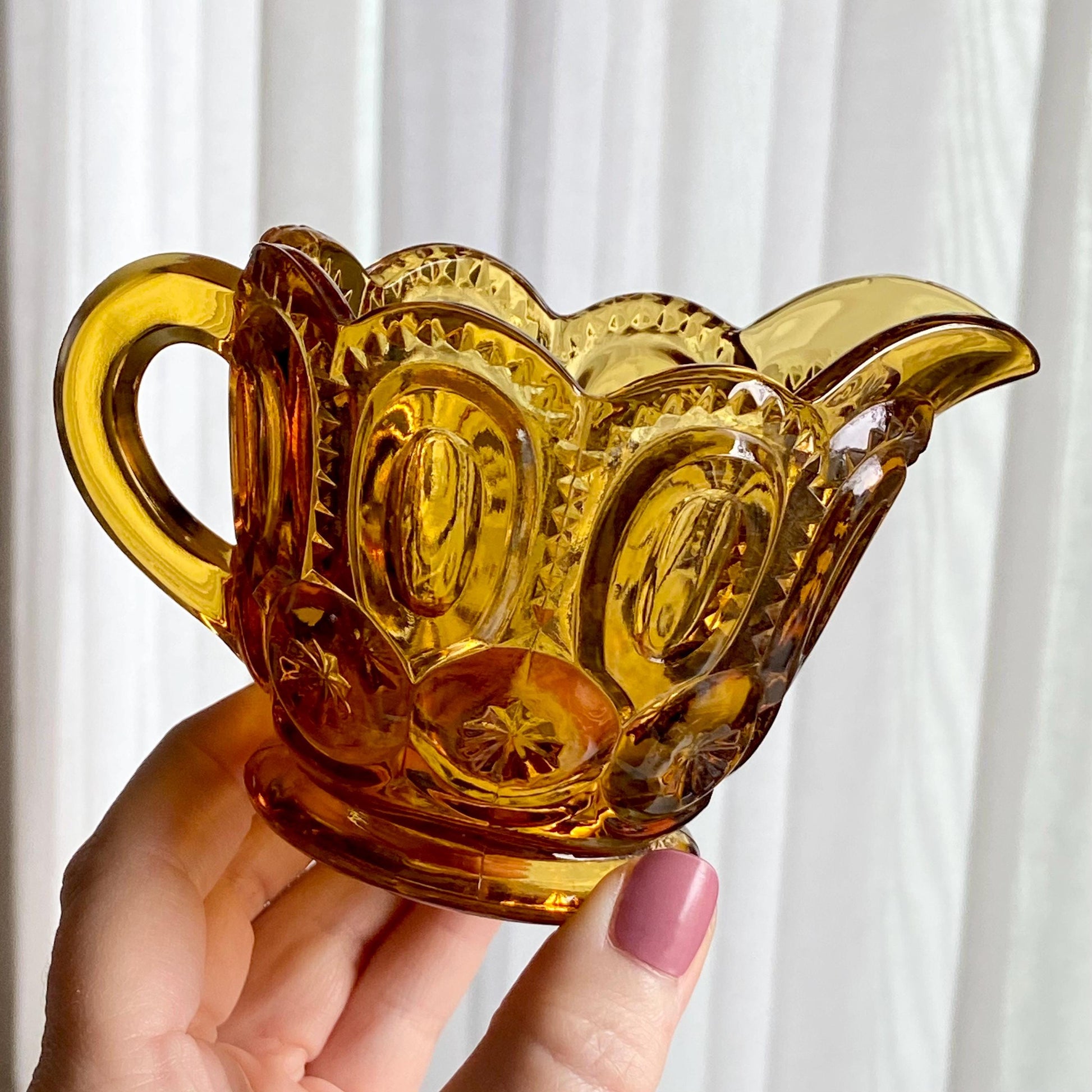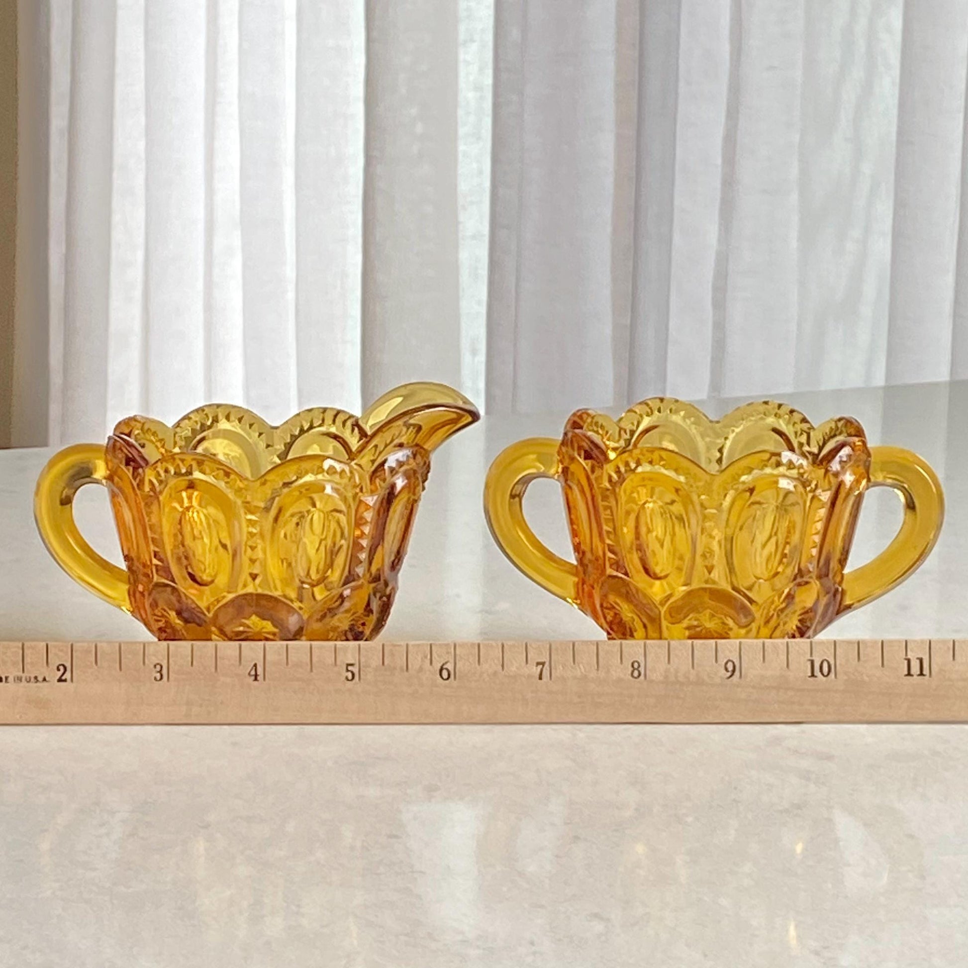 Vintage L.E. Smith Heritage Amber Moon and Stars Sugar and Creamer Set