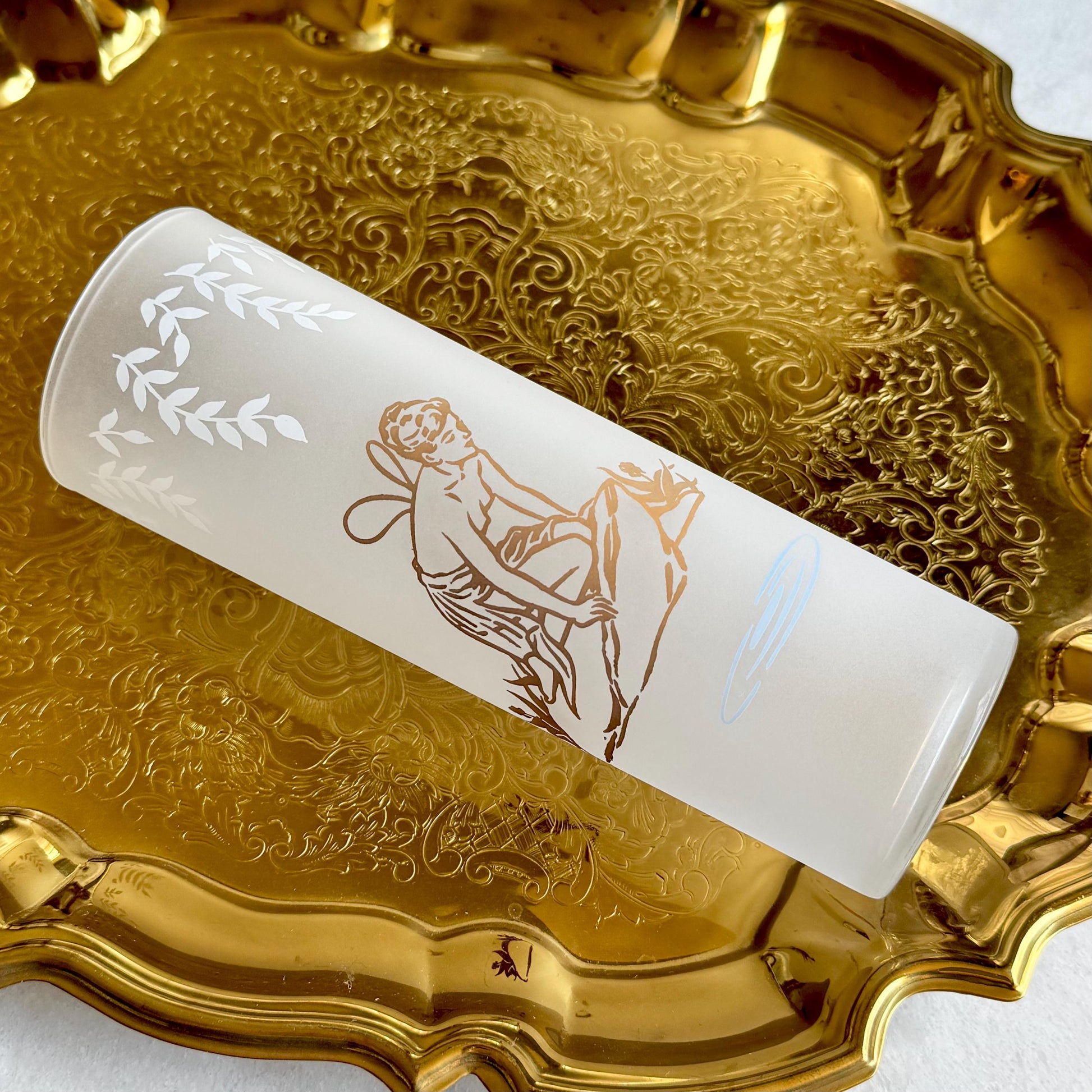 Vintage Libbey Gold Fairy Nymph Frosted Cooler Glasses - Set of 9