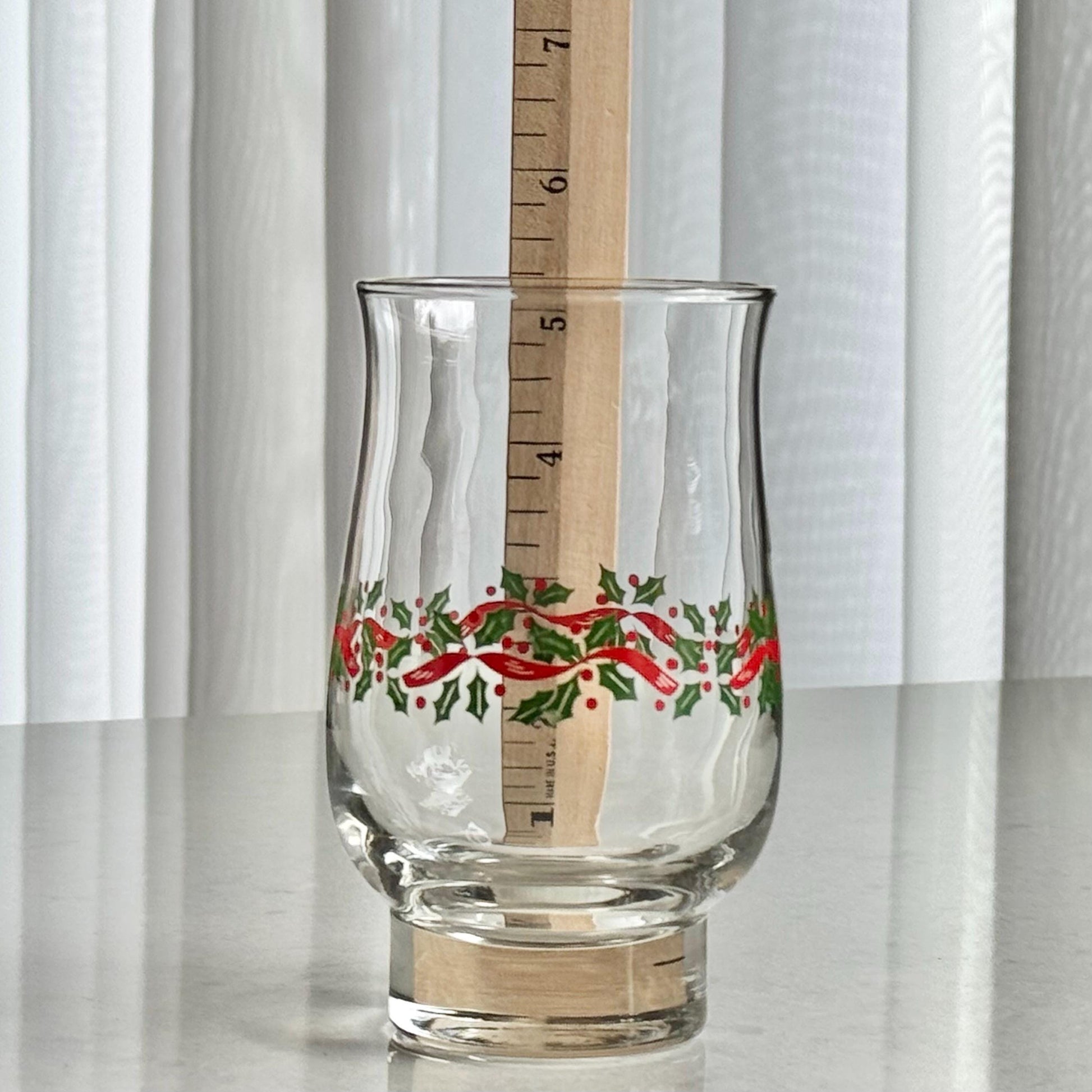 Set of four festive glasses! Approximately 5-1/4" tall and 2-7/8" across the rim with a capacity of about 14 ounces completely full. These are in really great condition, but in the interest of being conservative please remember they have been pre-loved and may not be "perfect." FREE SHIPPING in the continental U.S. included in the price. If you are outside of this area please contact me for options. Any props used or other items shown are for photo purposes only and are not included with the items being sold.