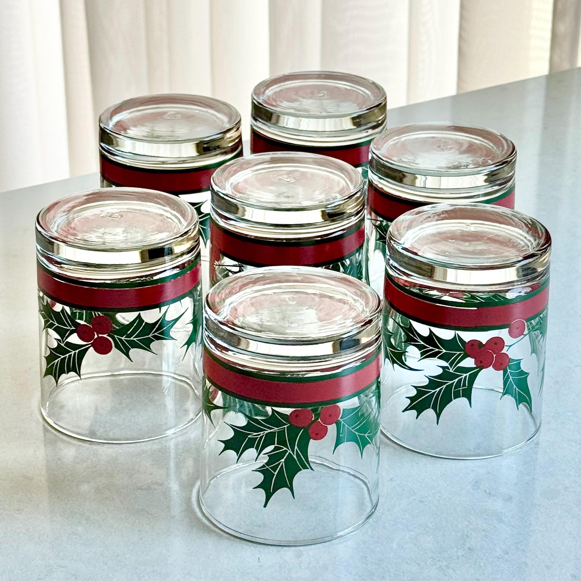 Vintage Libbey Holly and Berries Glasses - Set of 7