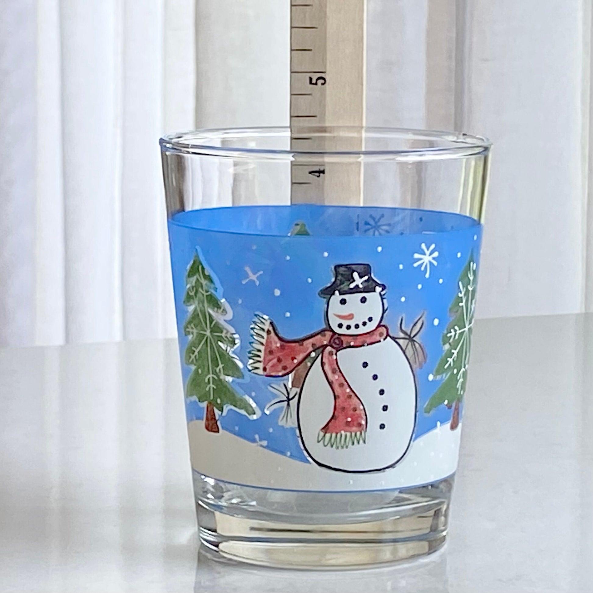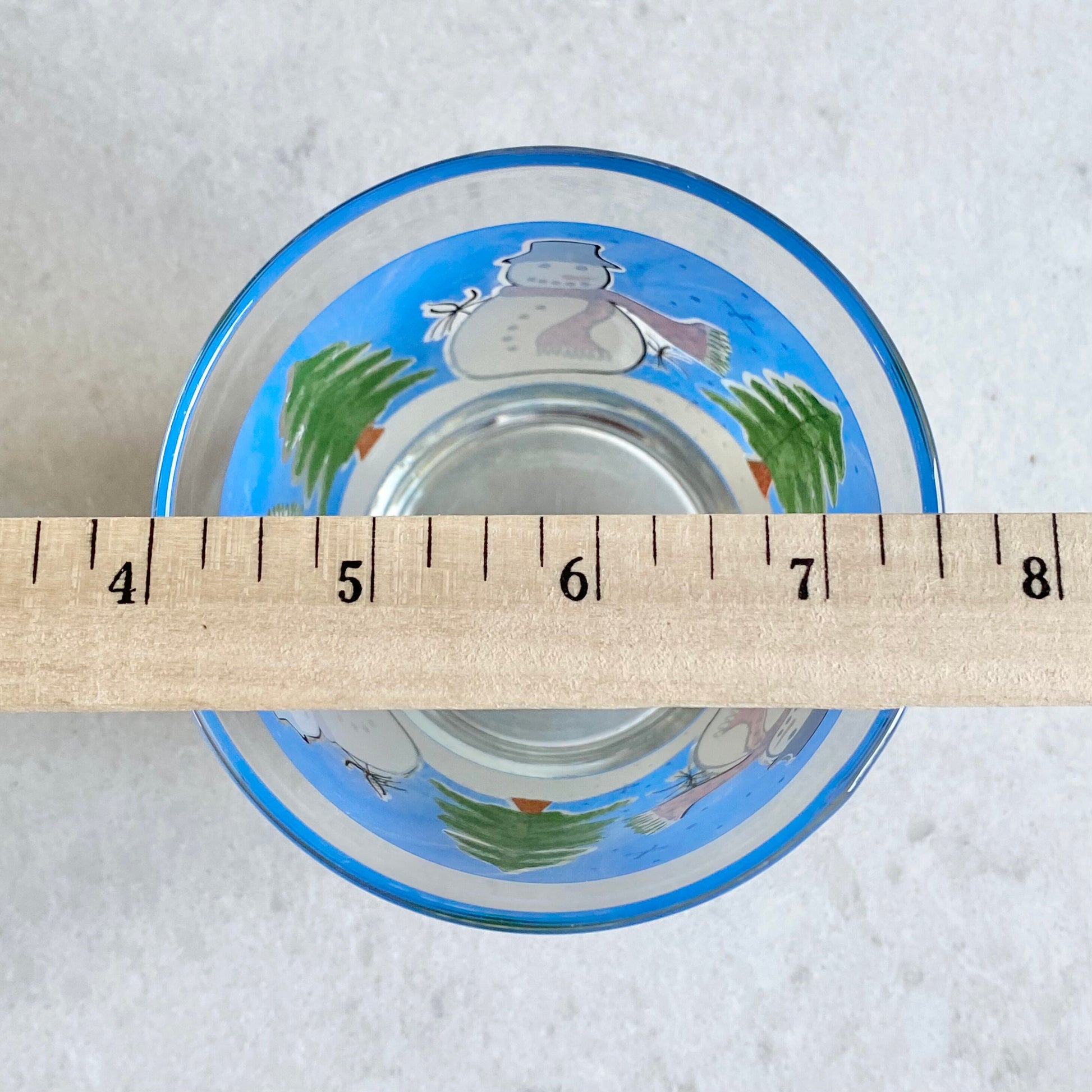 Approximately 4-1/8" tall and 3-1/2" across the rim with a capacity of about 16 ounces completely full.