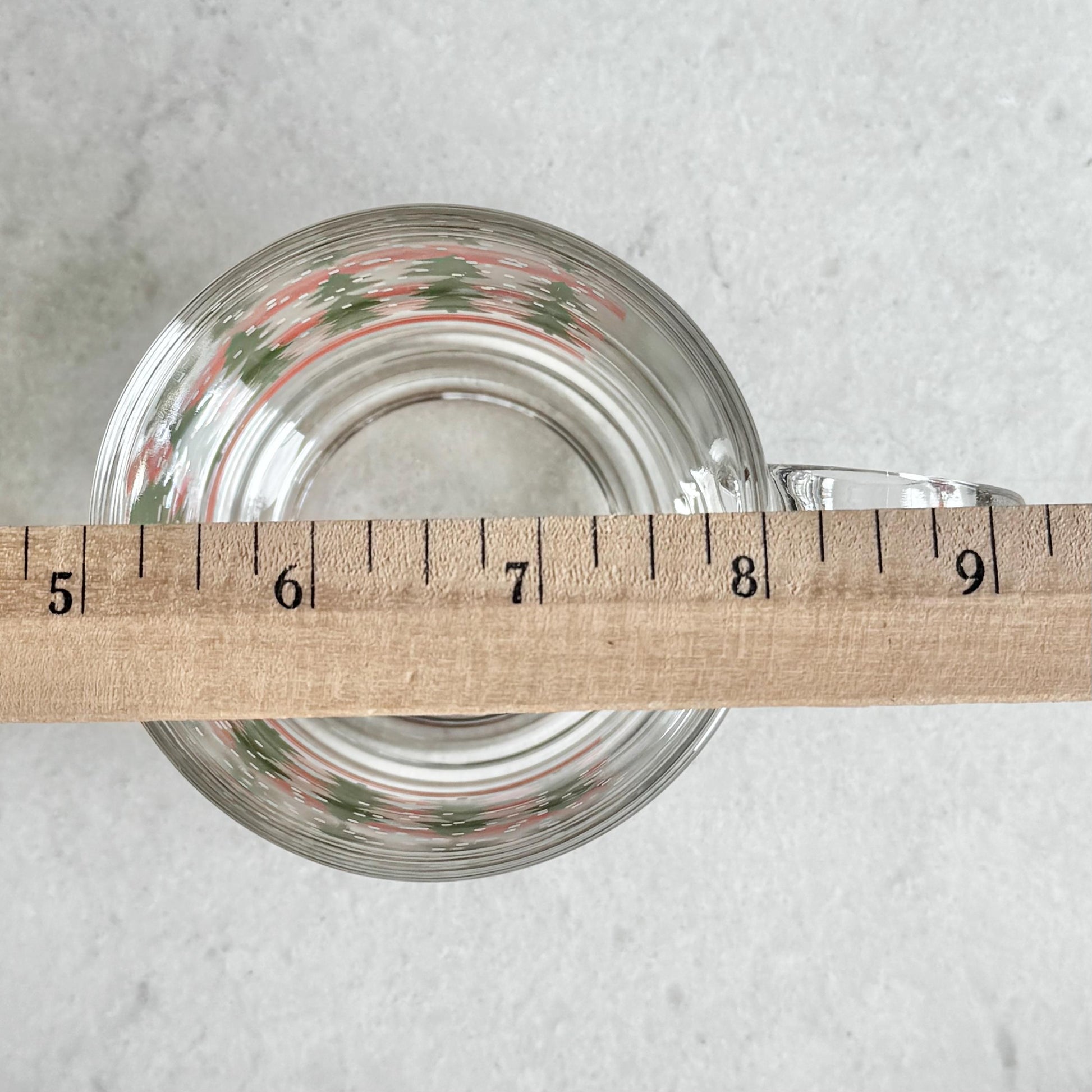 Approximately 3-1/2" tall and 3" across the rim with a capacity of about 9 ounces completely full. Excellent vintage condition.