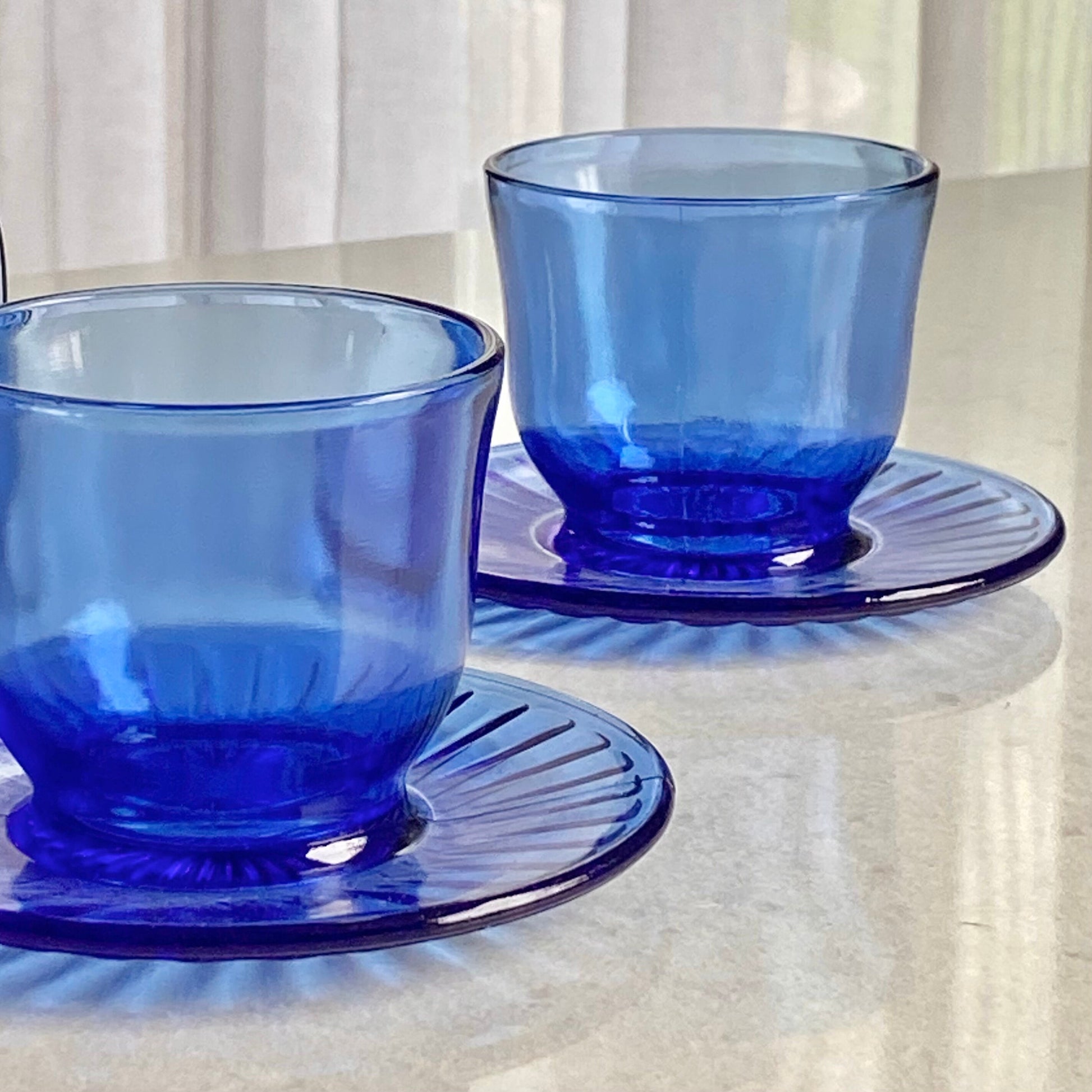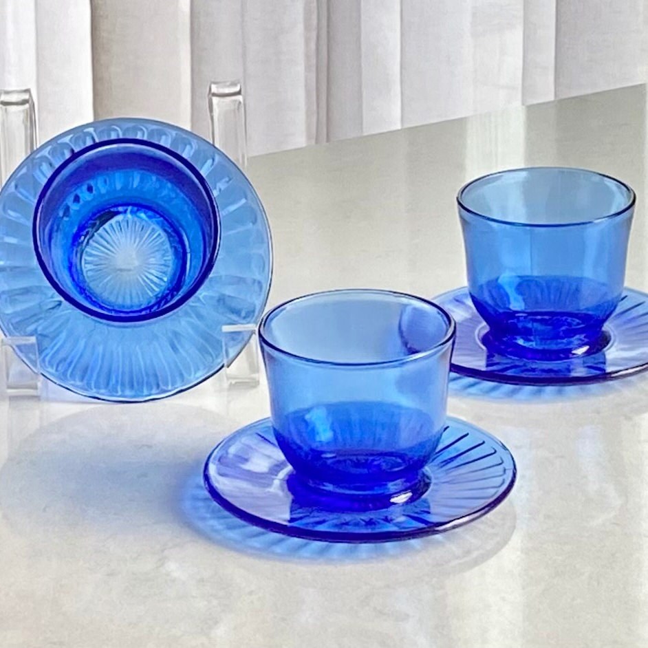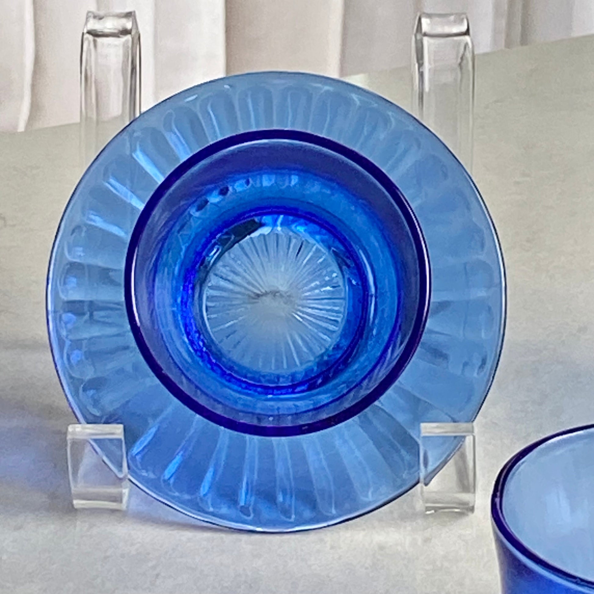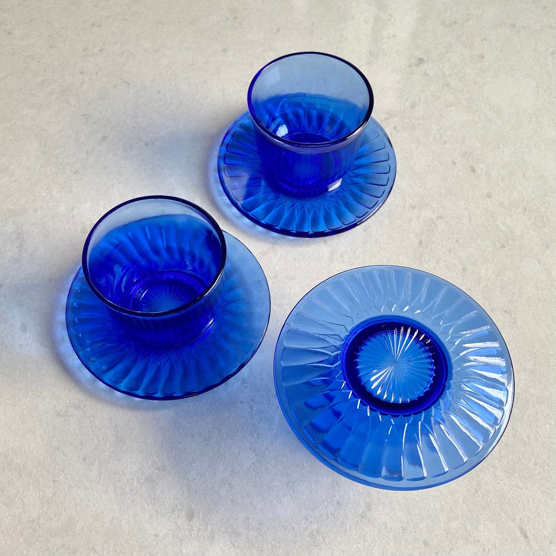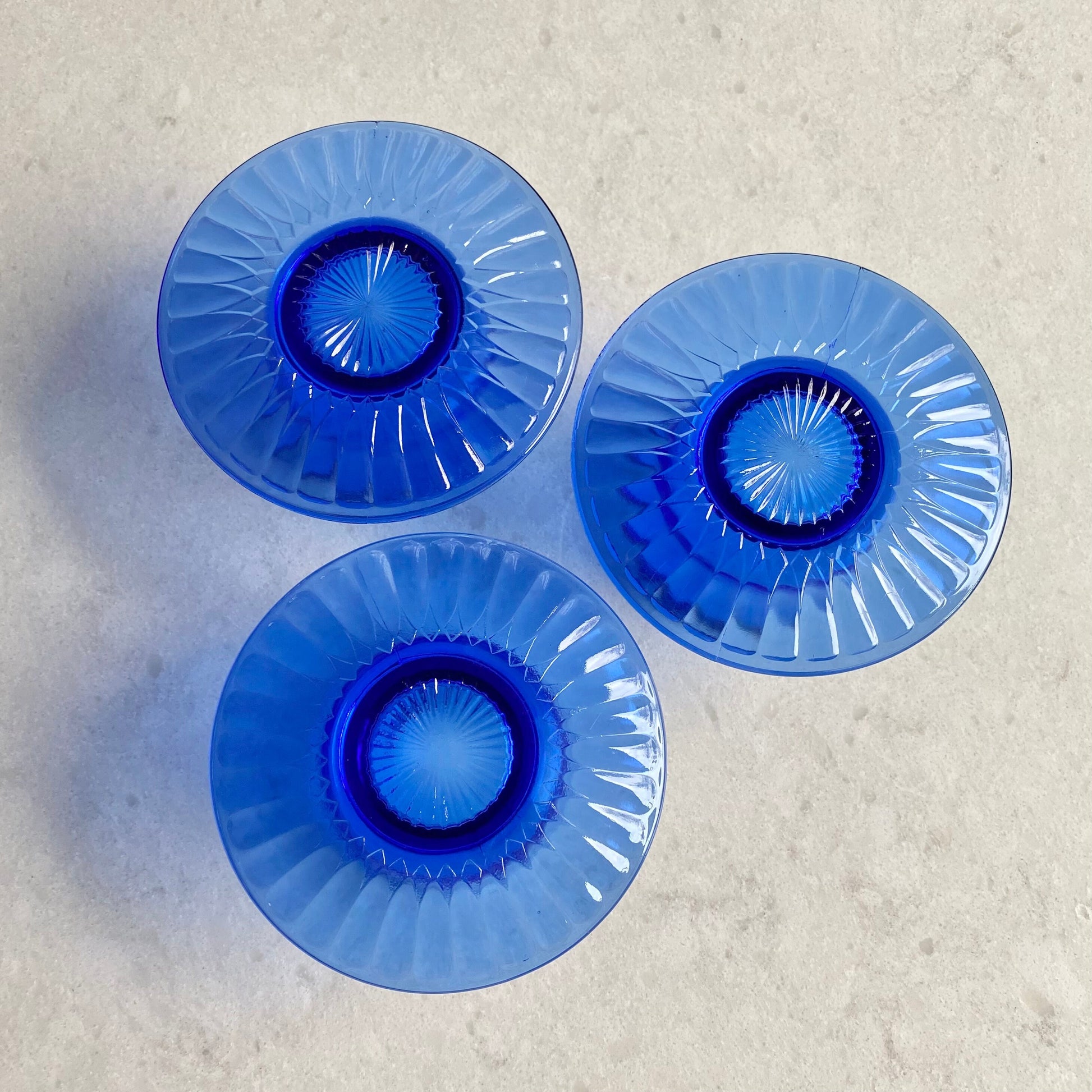 Vintage MacBeth Evans Petalware Blue Condiment Bowls with Attached Under Saucer - Set of 3