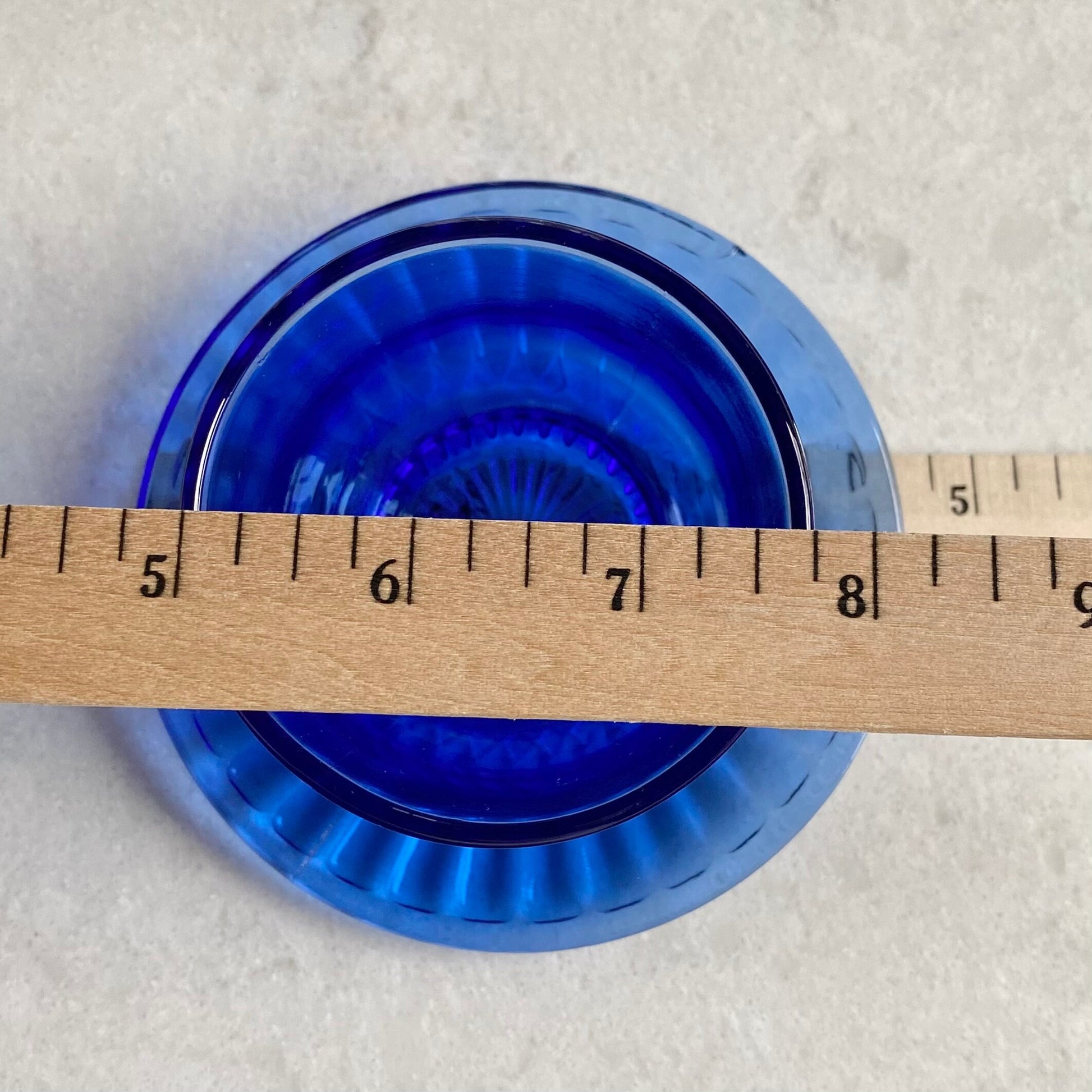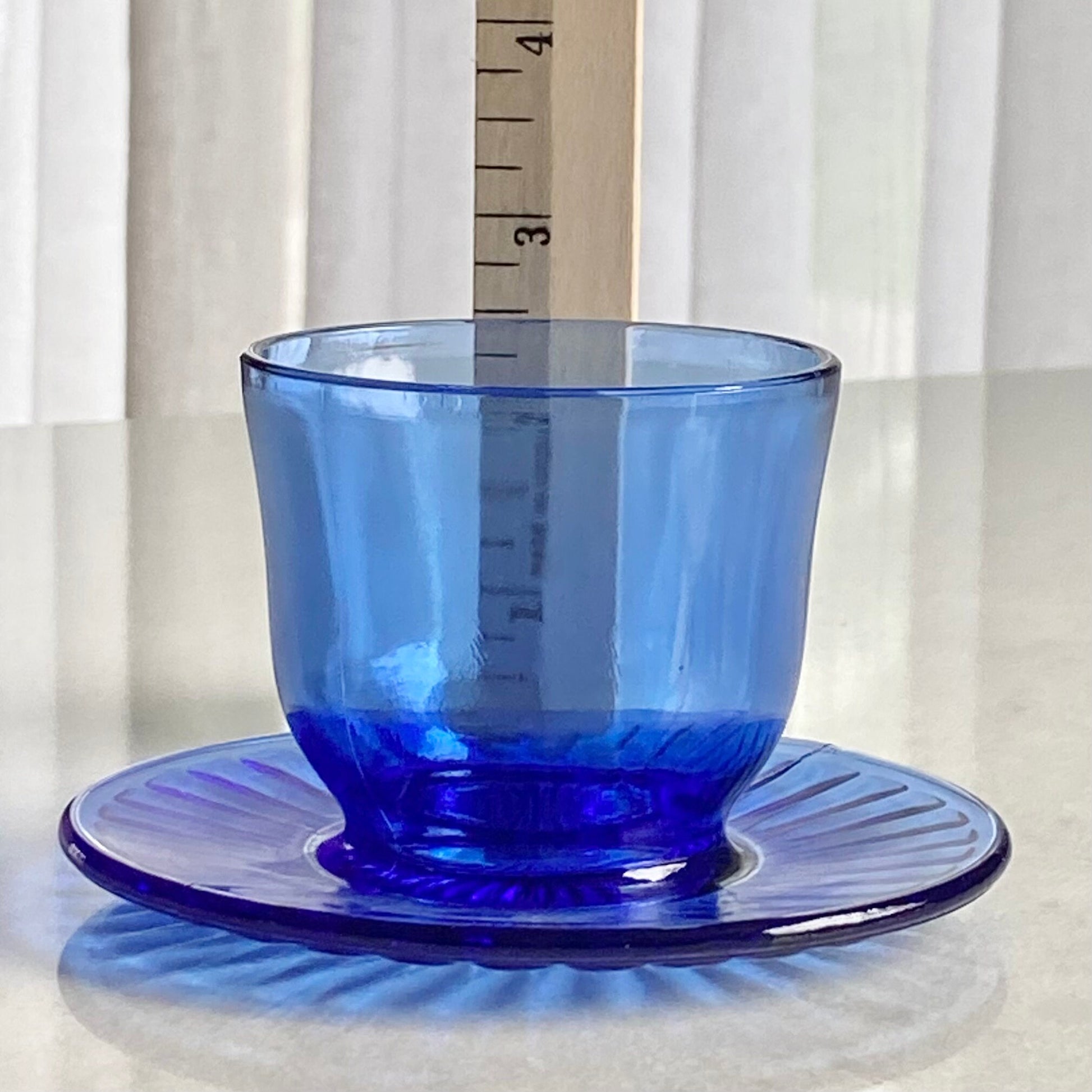 Approximately 2-1/2" tall. The bowl portion is about 2-3/4" across and the underplate is 4-1/2" across. Excellent vintage condition.