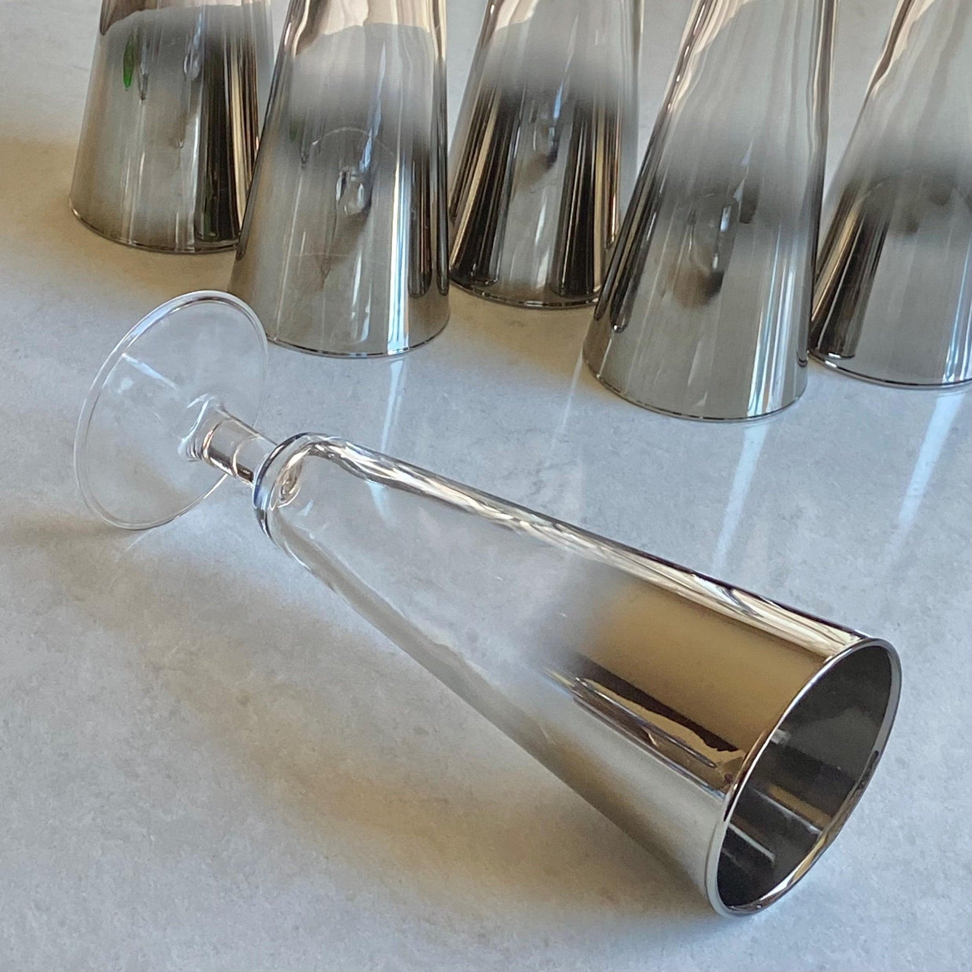 Vintage MCM Metallic Silver Fade Ombre Glasses - Set of 6