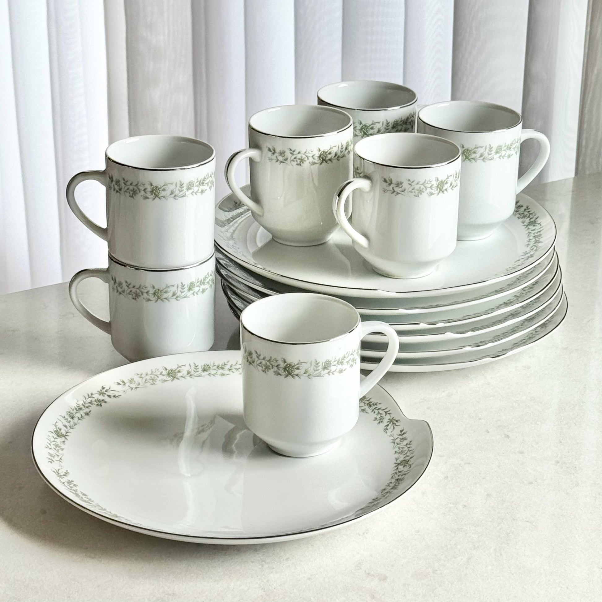 Vintage Mikasa Montclair Snack Sets - 7 sets, 14 pieces total