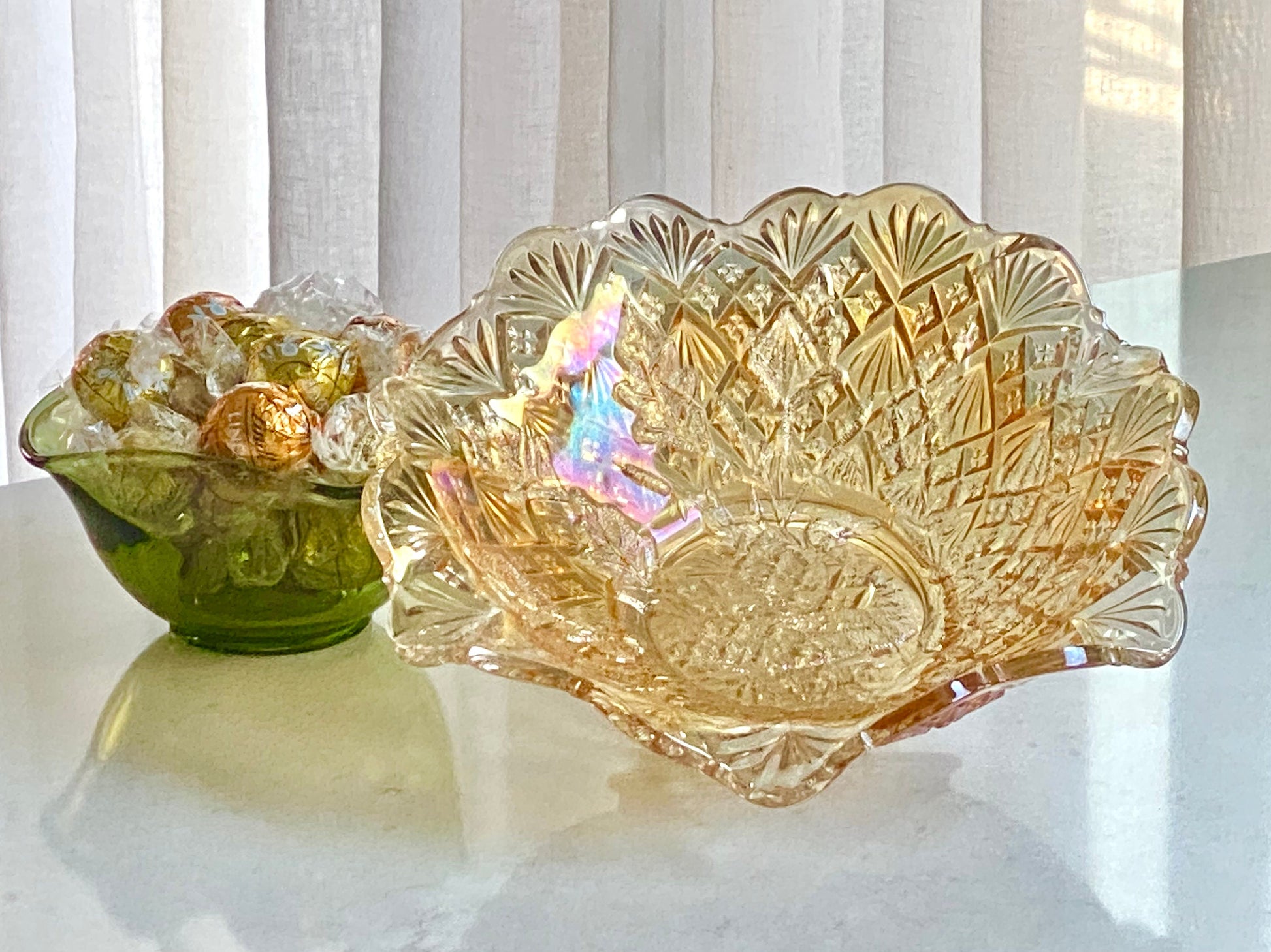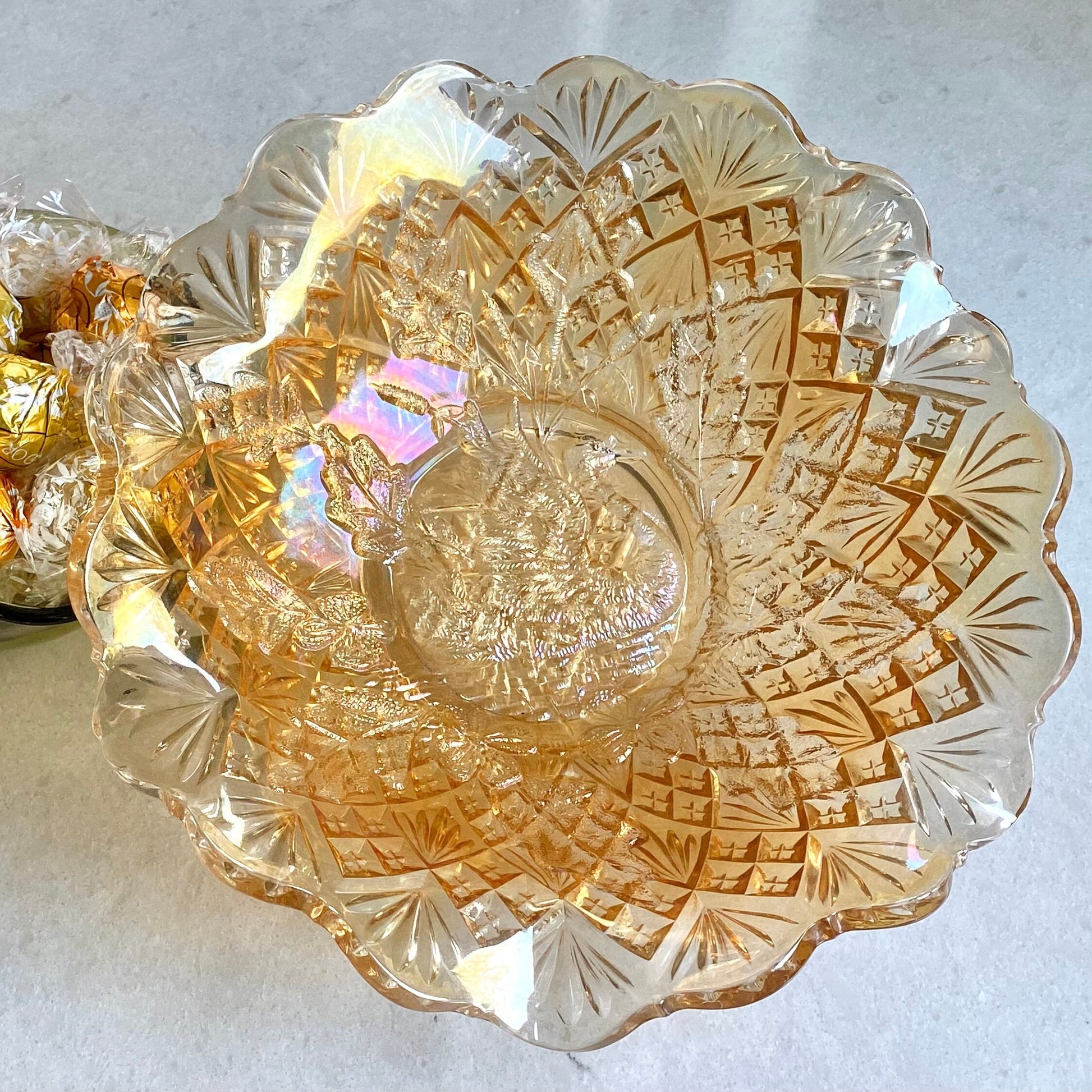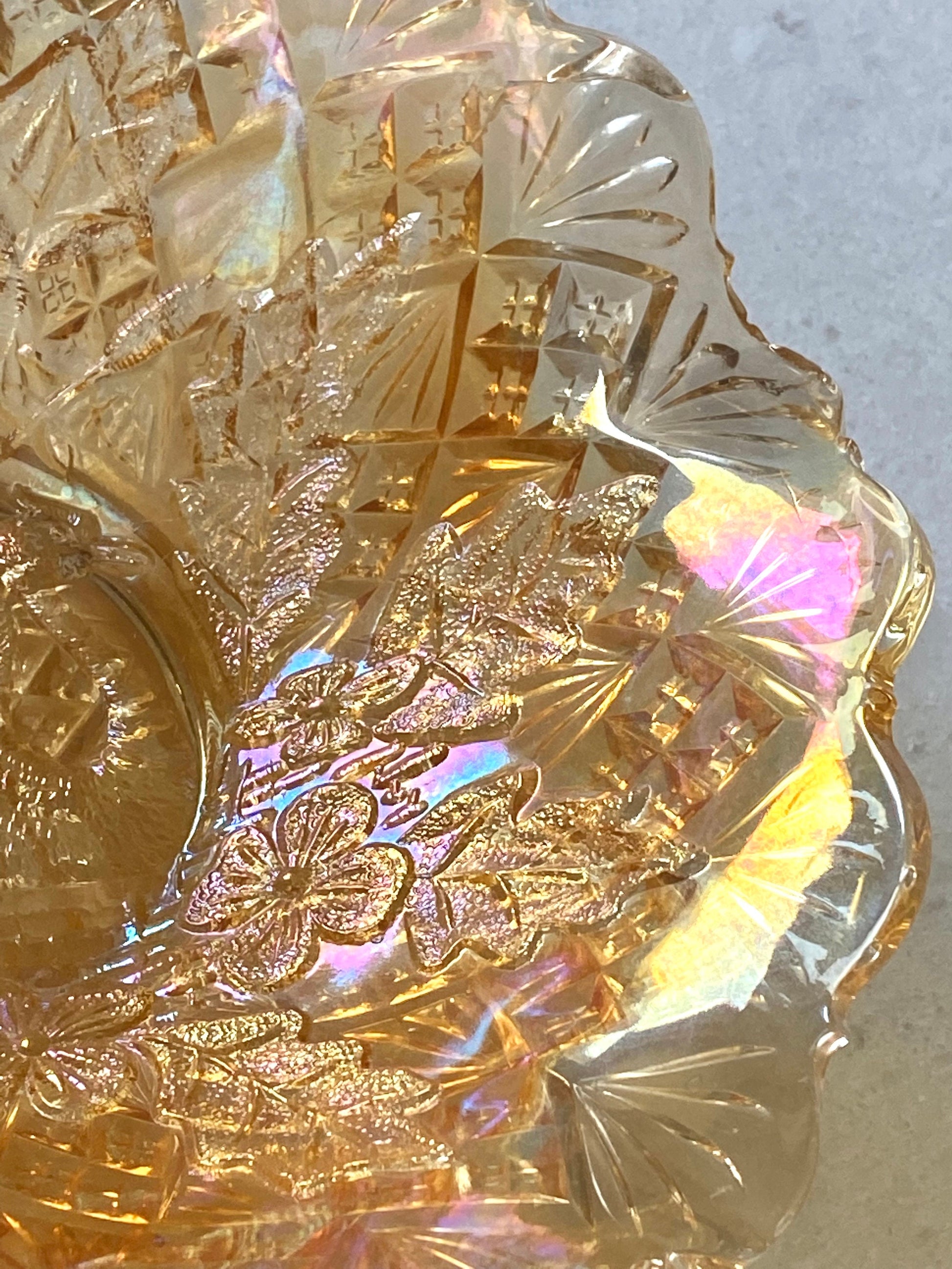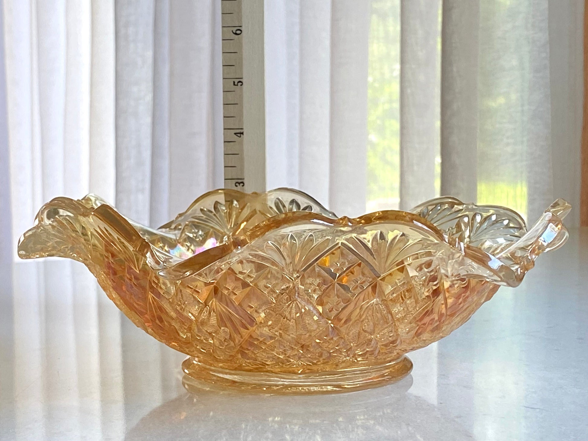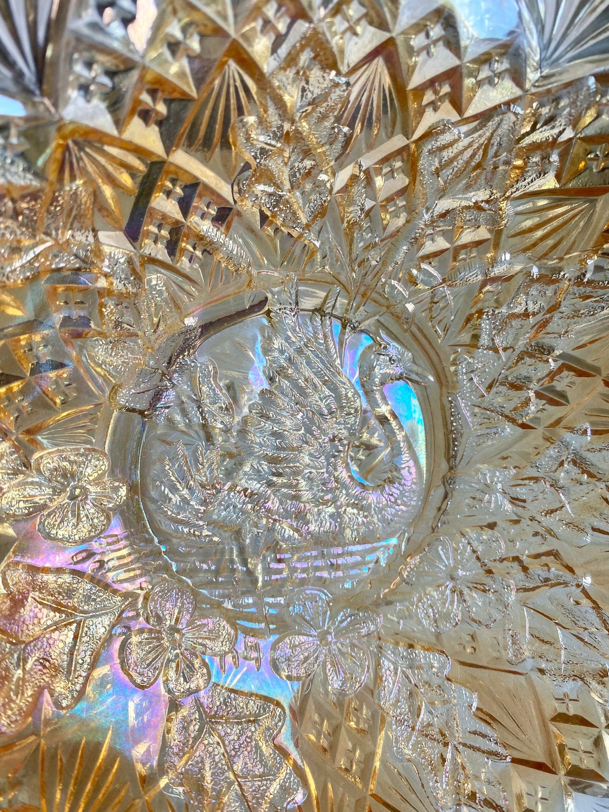 Vintage Millersburg Light Marigold Carnival Glass Nesting Swan Bowl (circa 1909 - 1912)