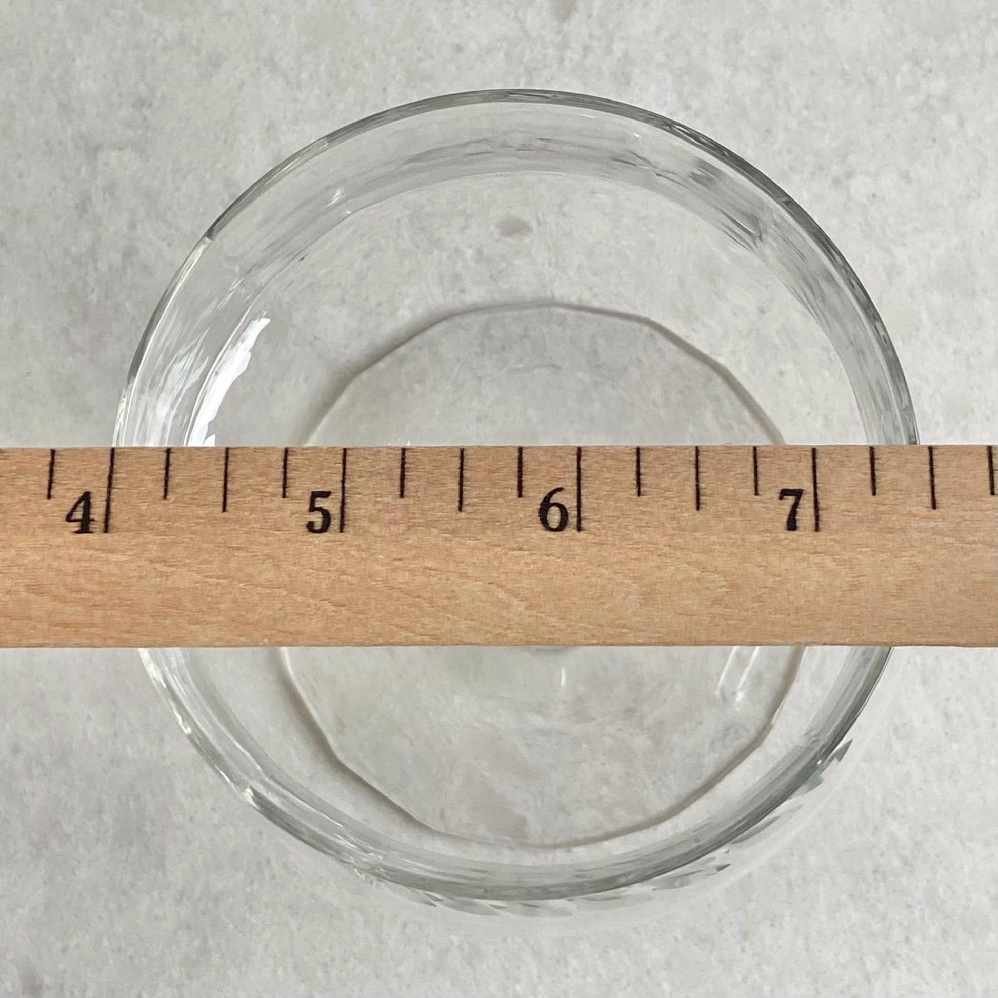 Approximately 4-1/2" tall and 3-7/8" across with a capacity of about 13 fluid ounces completely full. Excellent vintage condition.