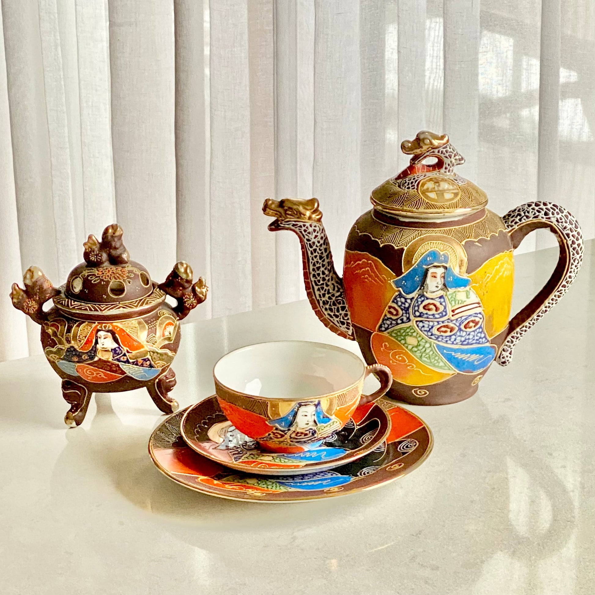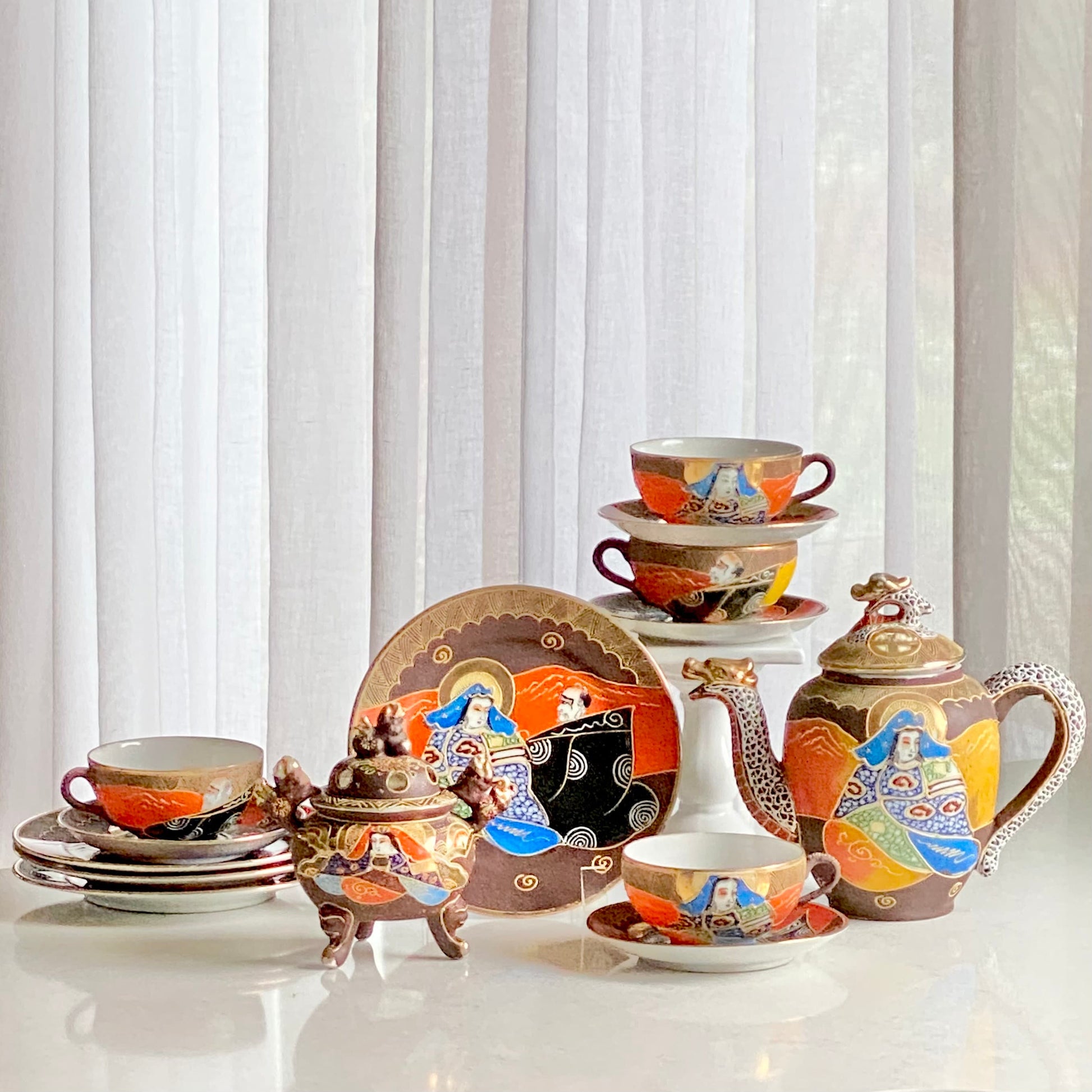 Vintage Moriage Tea Set - 16 pieces total