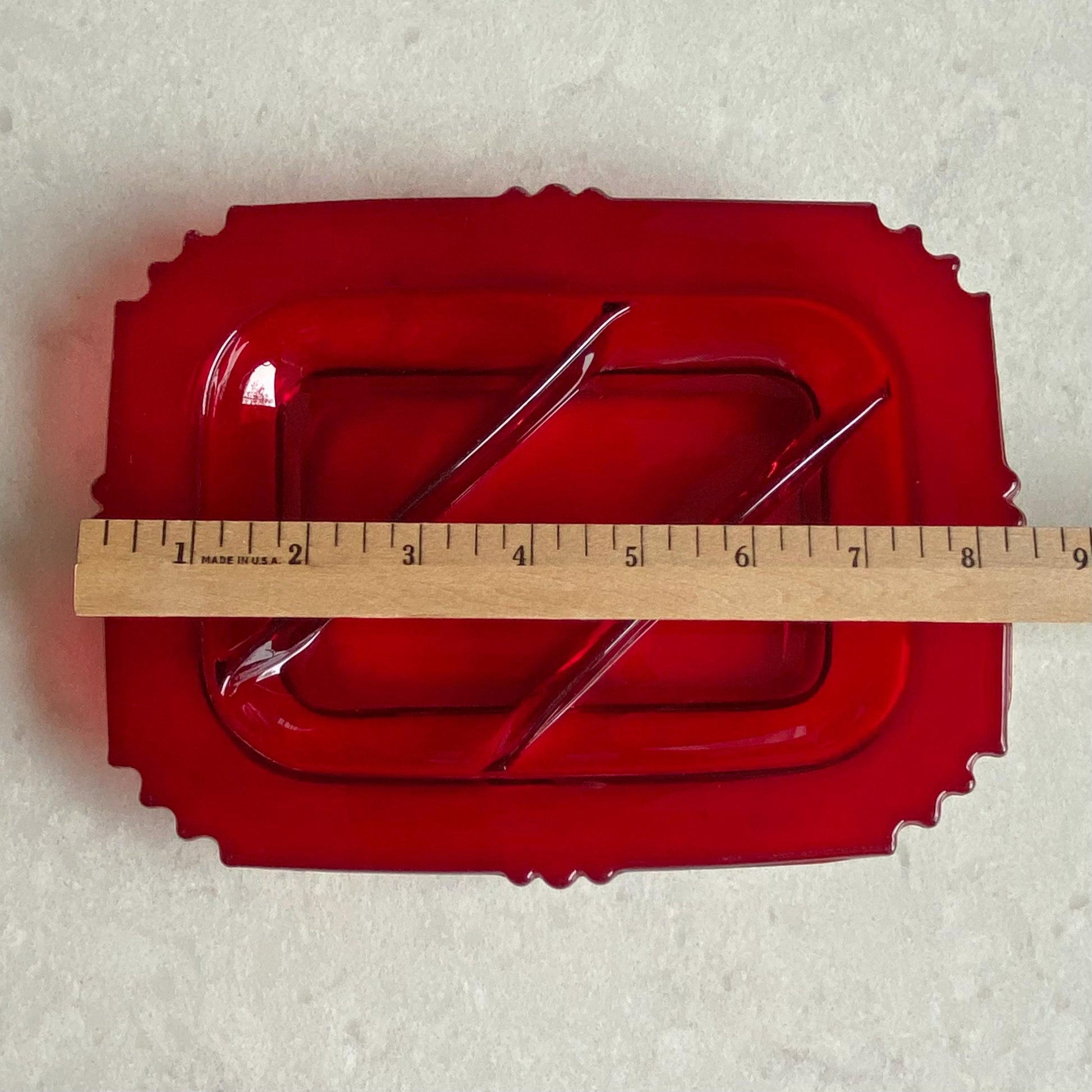 Vintage New Martinsville Oscar Ruby Three Part Divided Dish
