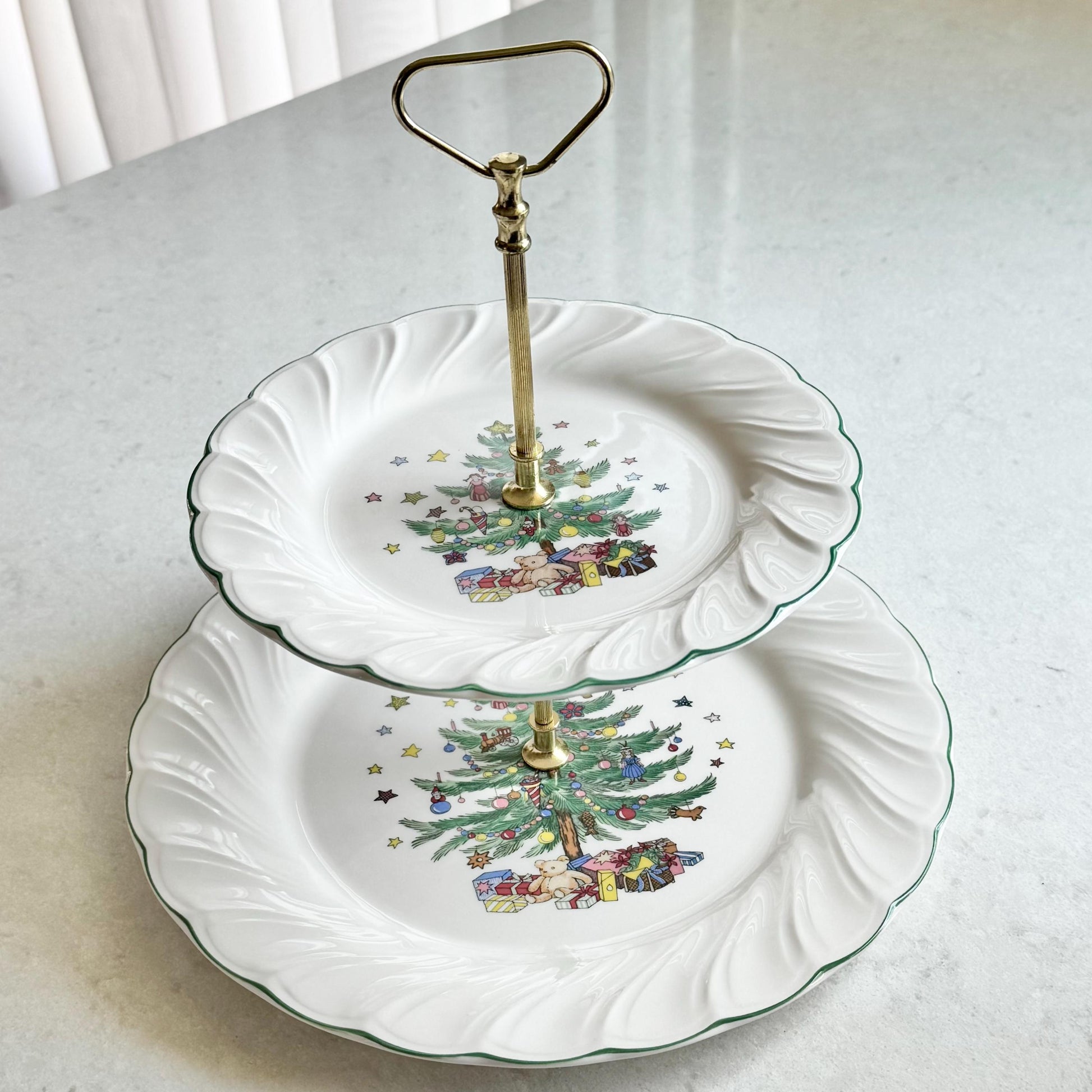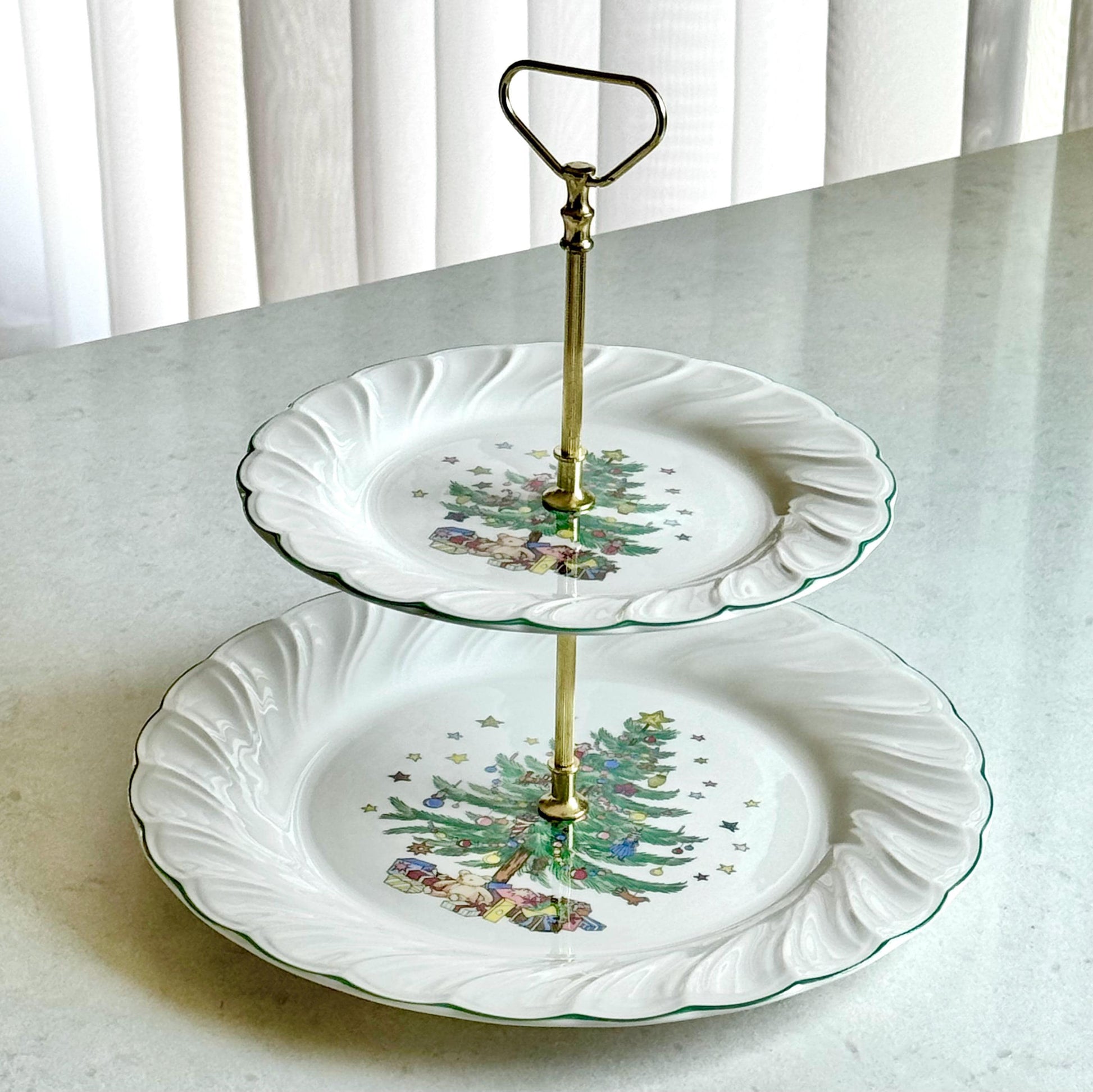 Vintage Nikko Happy Holidays Two Tier Tidbit Tray