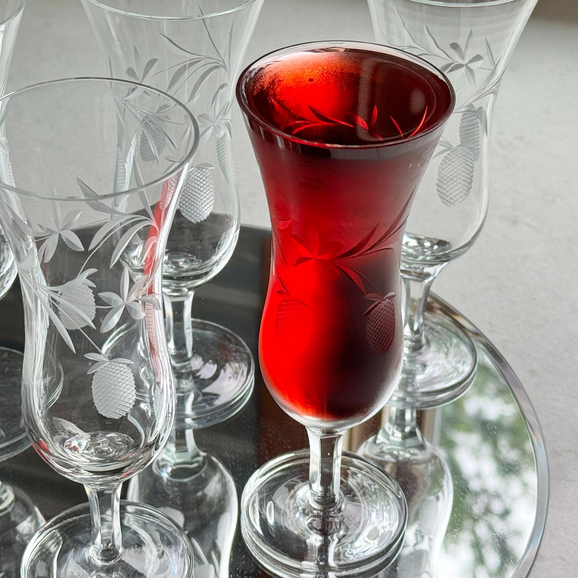 Approximately 7” tall and 2-5/8" across the rim with a capacity of about 6 ounces completely full. Excellent vintage condition.