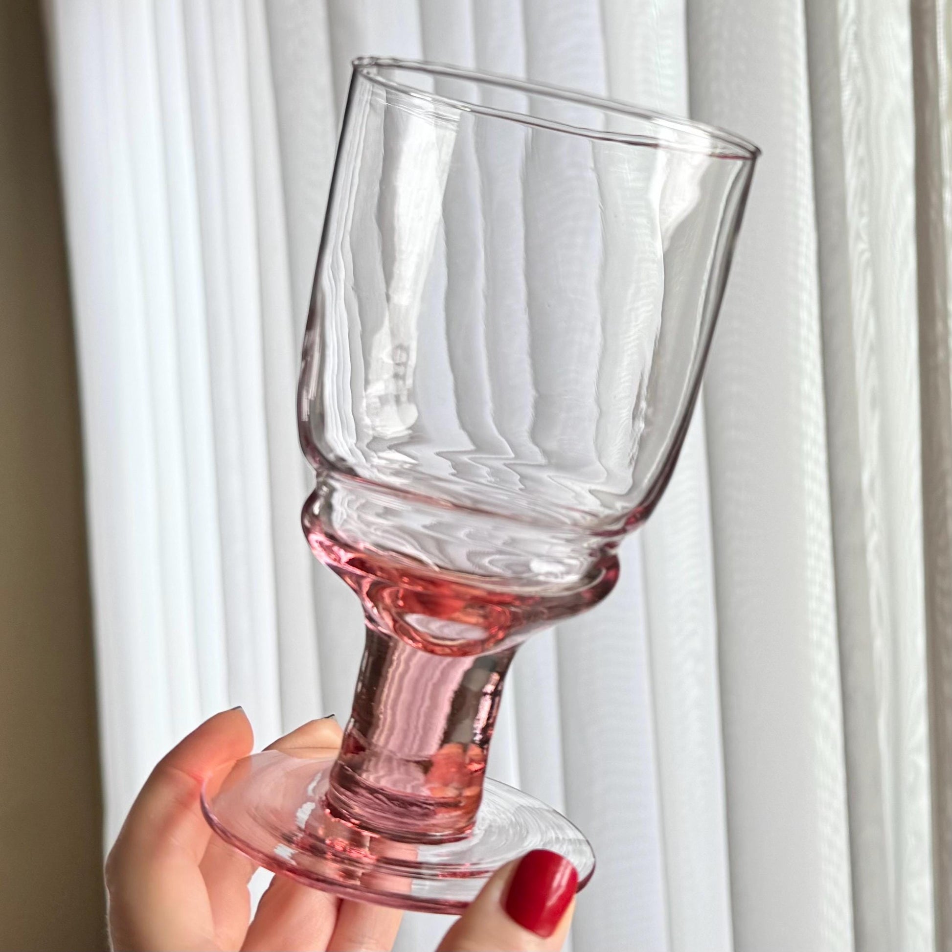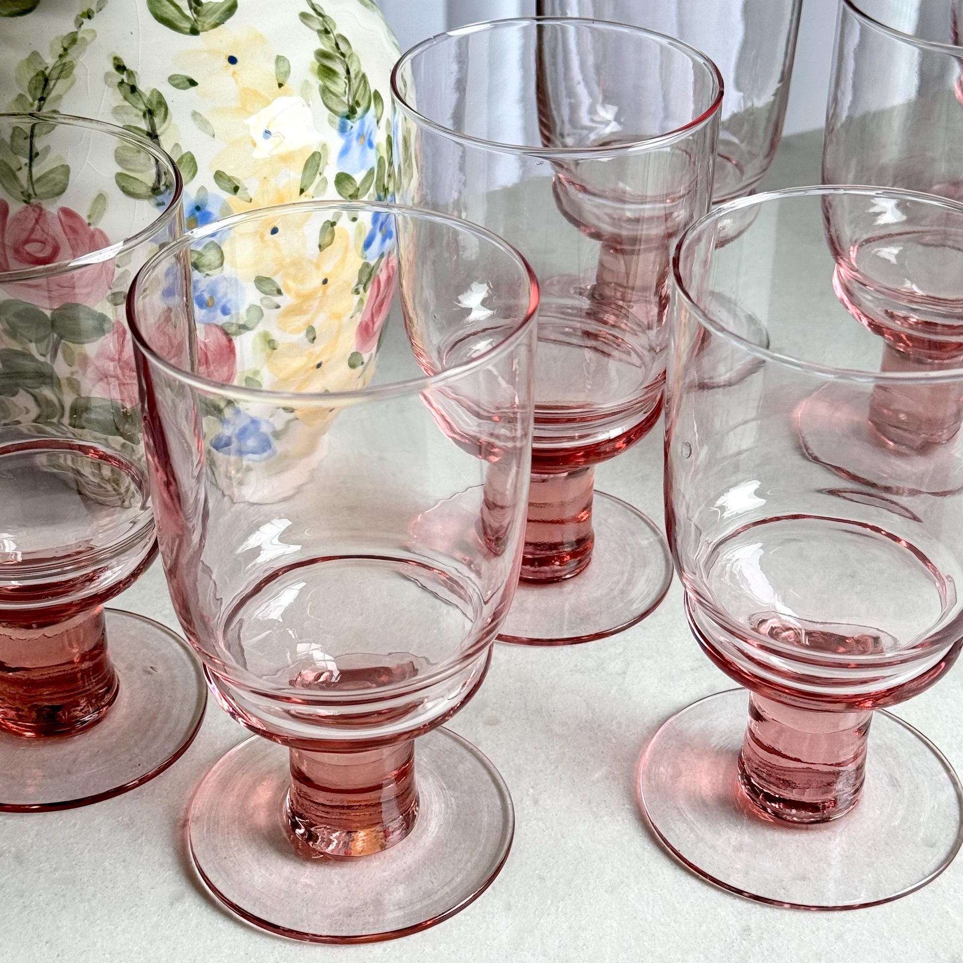 Vintage Pink Column Stem Glasses - Set of 10 Goblets