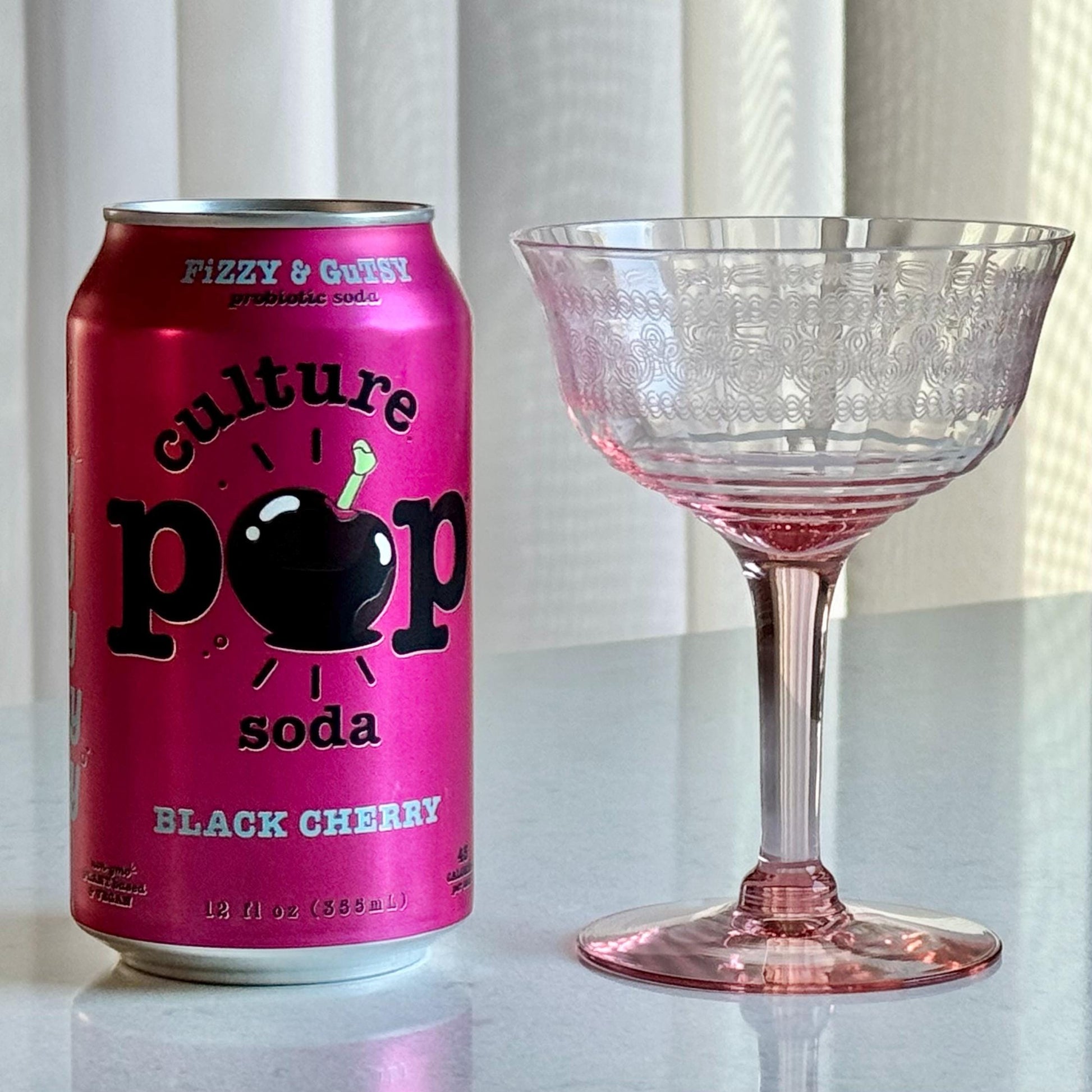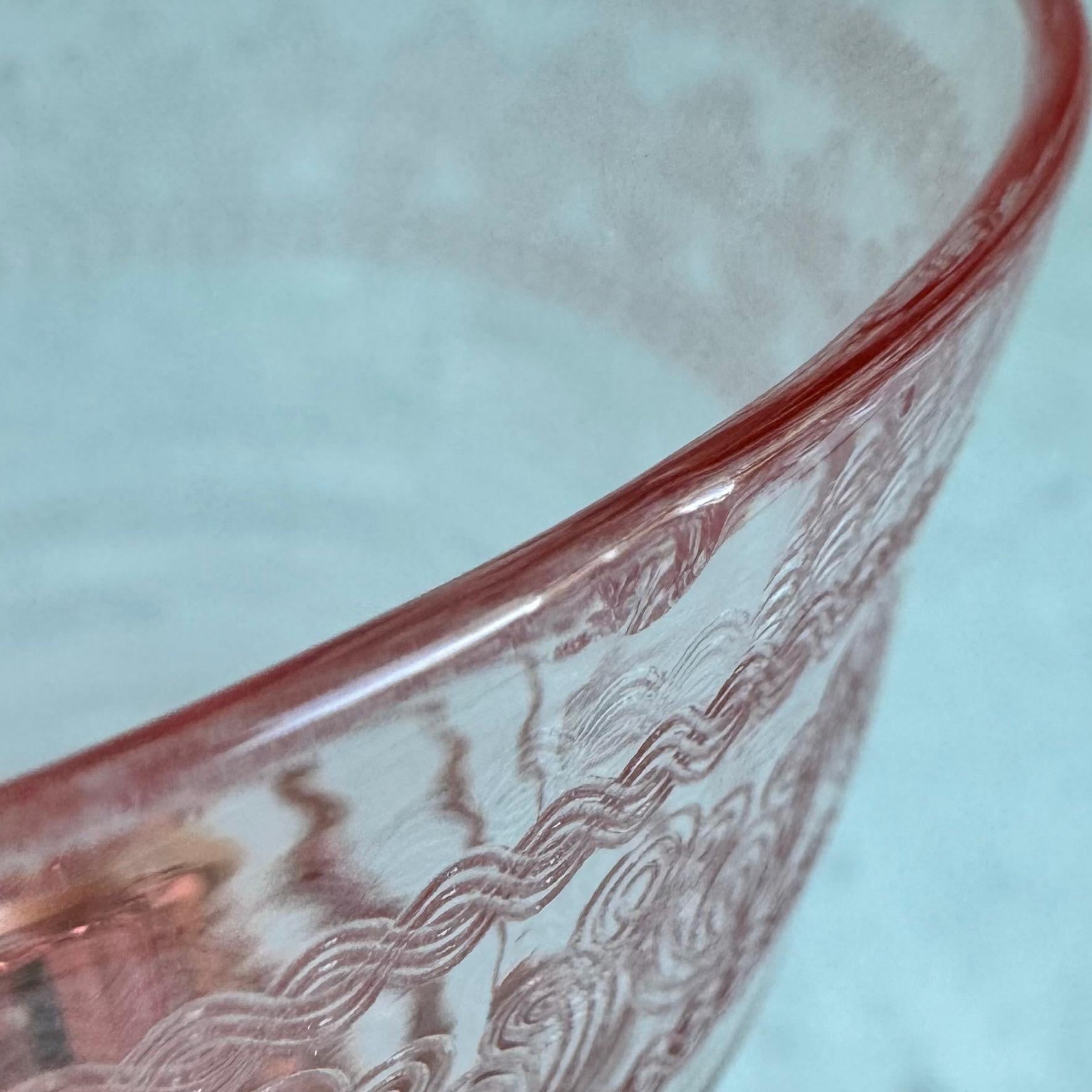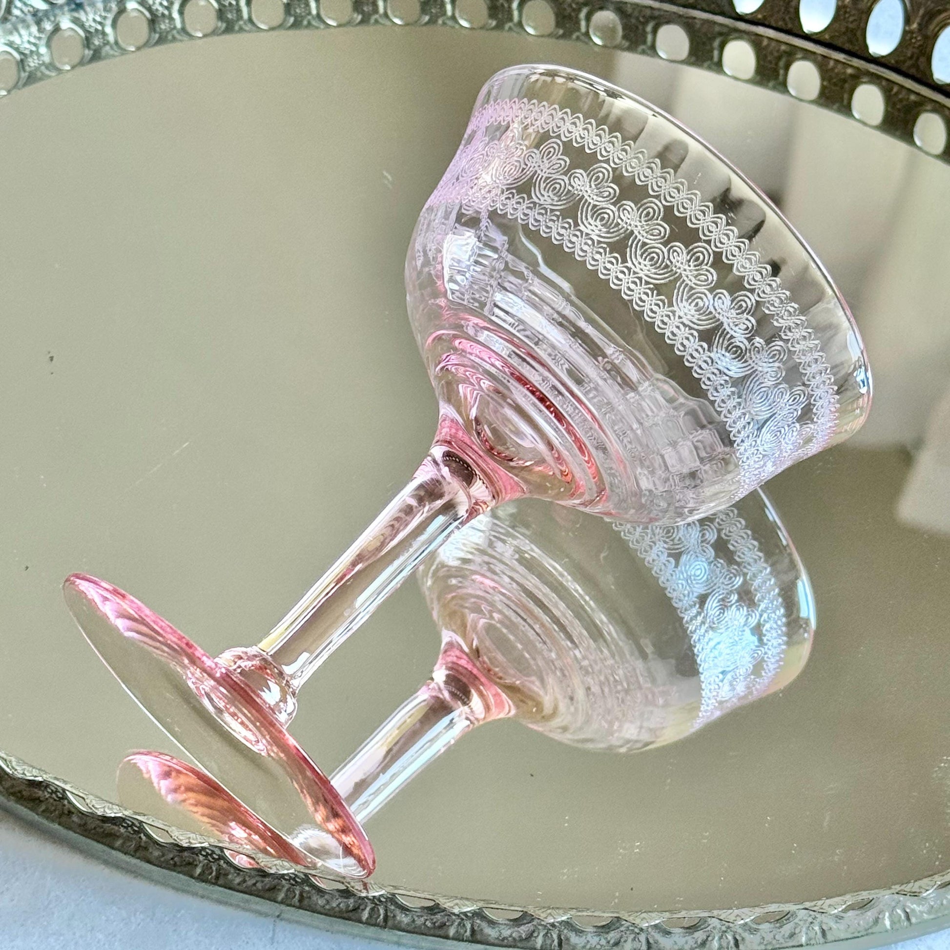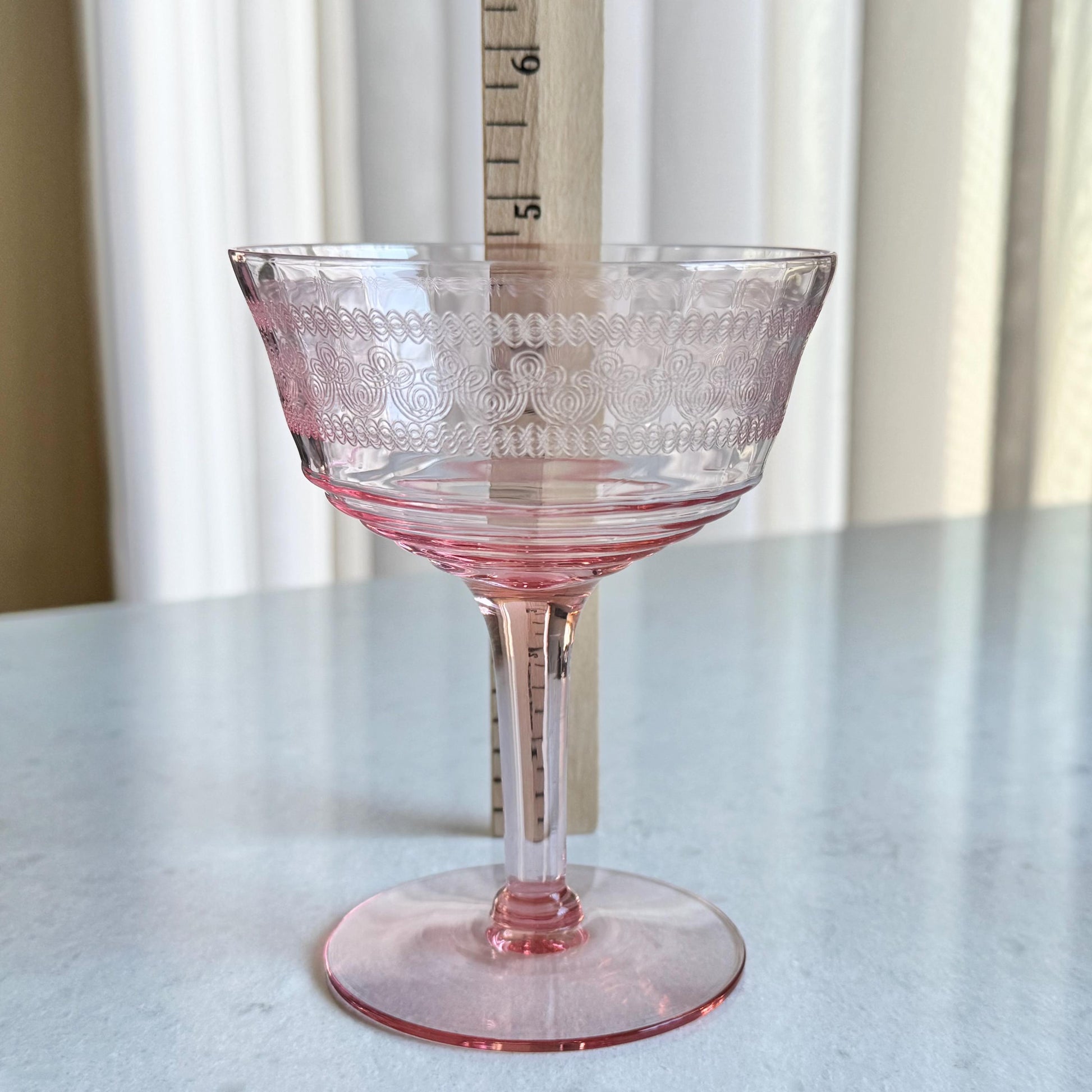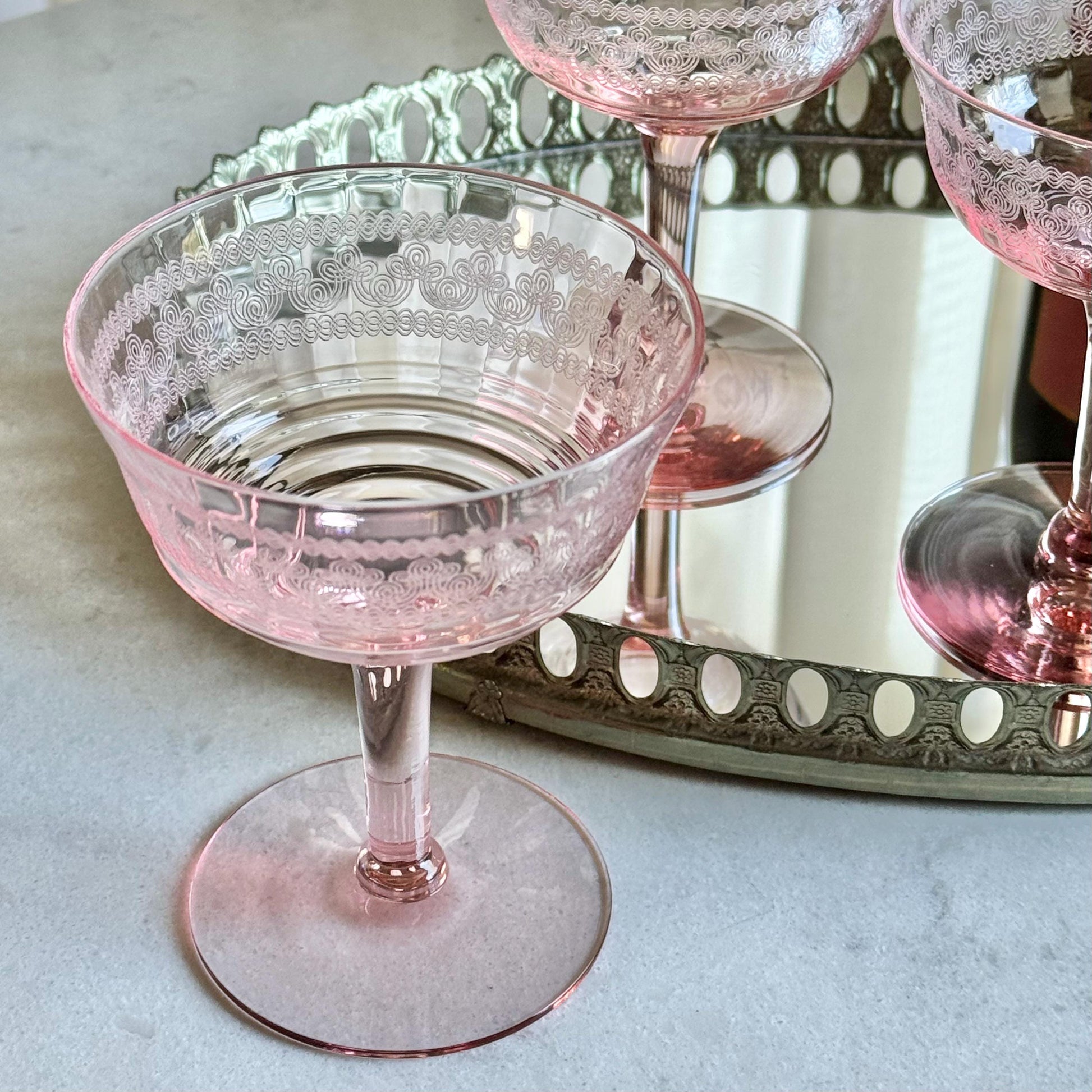 Vintage Pink Needle Etched Optic Panel Glasses - Set of 4