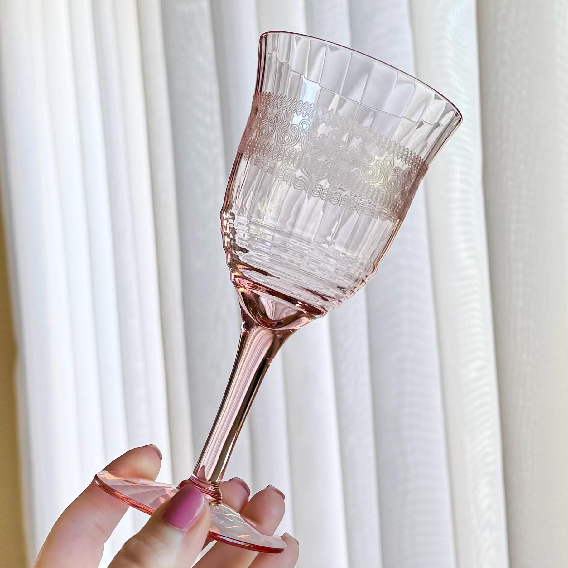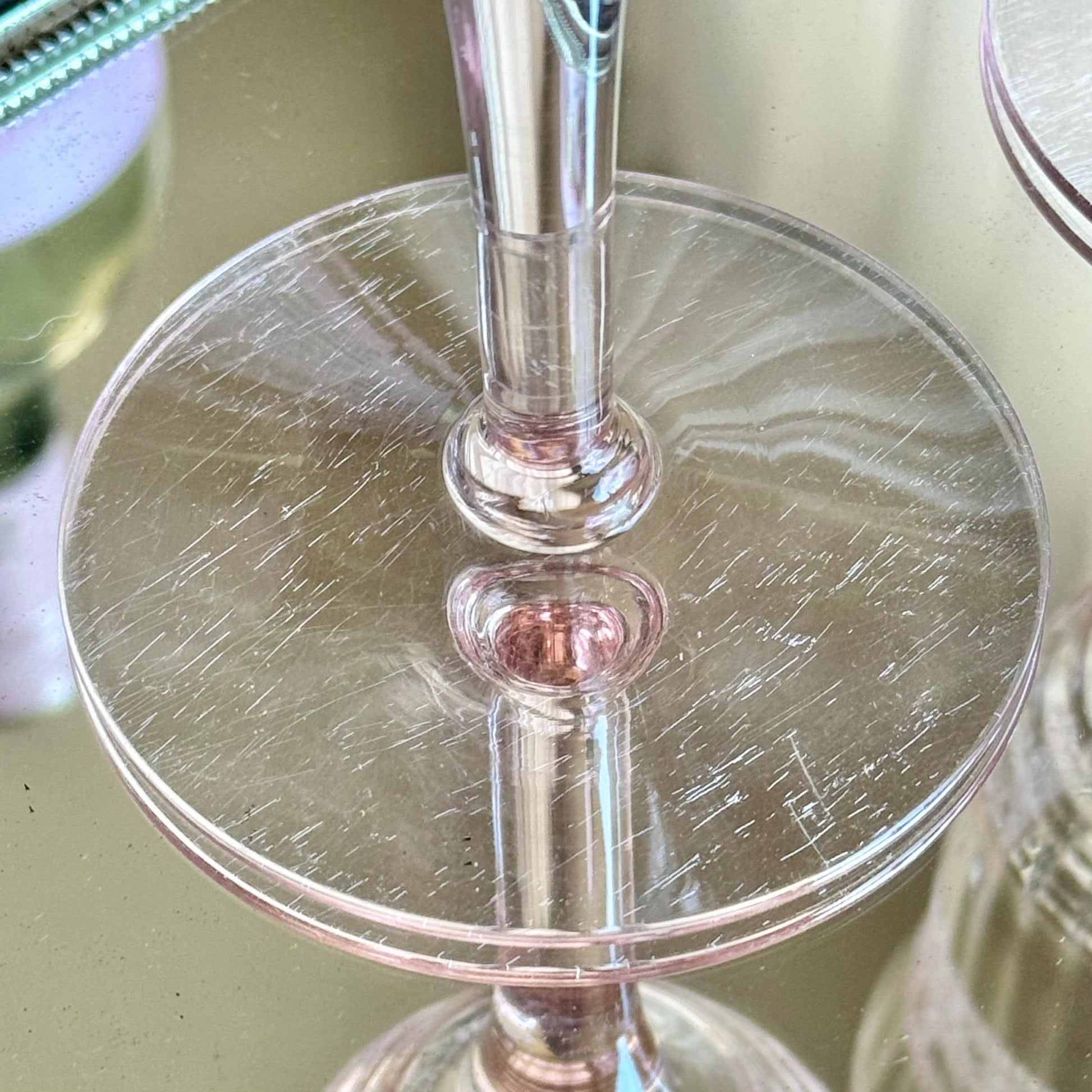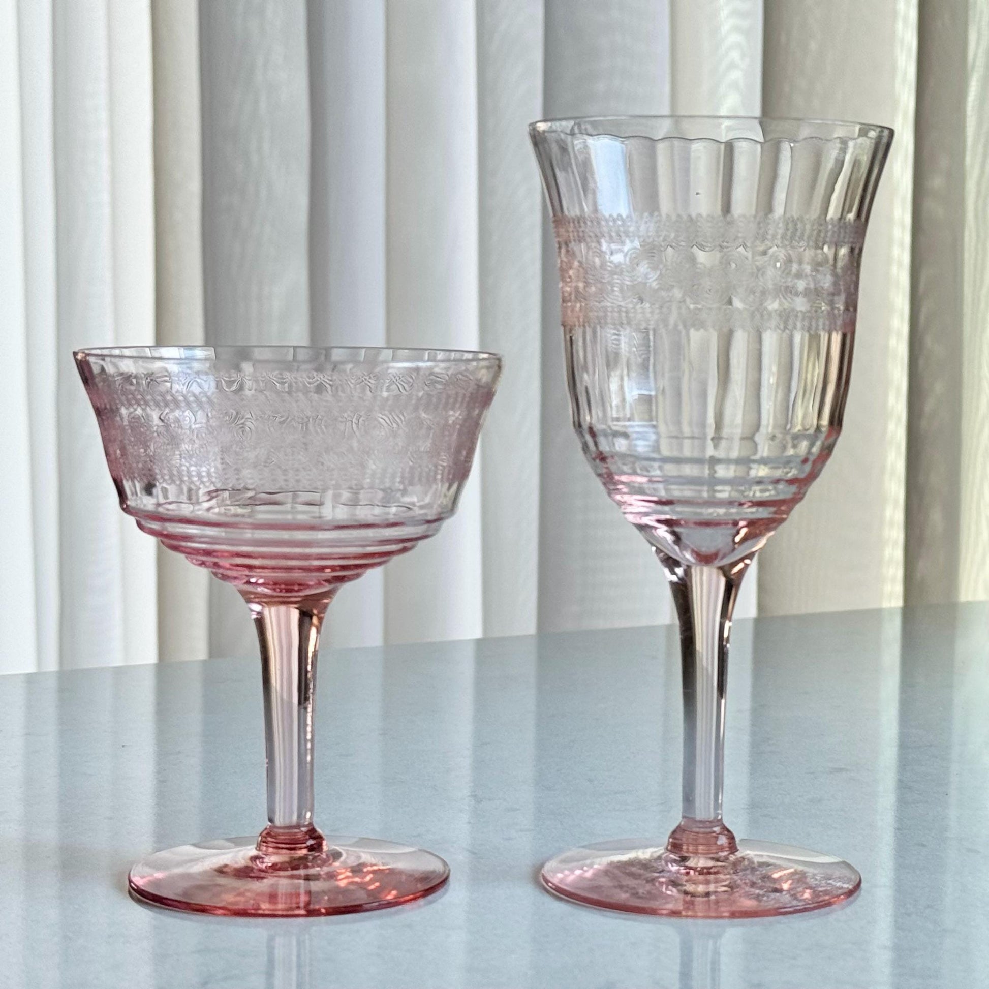 Vintage Pink Needle Etched Optic Panel Glasses - Set of 6