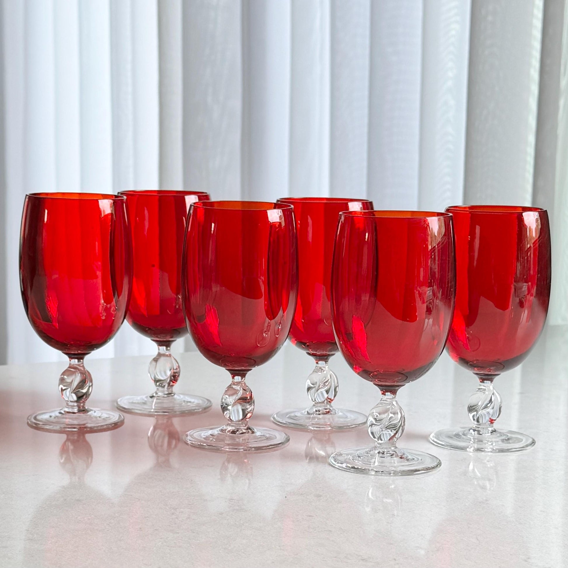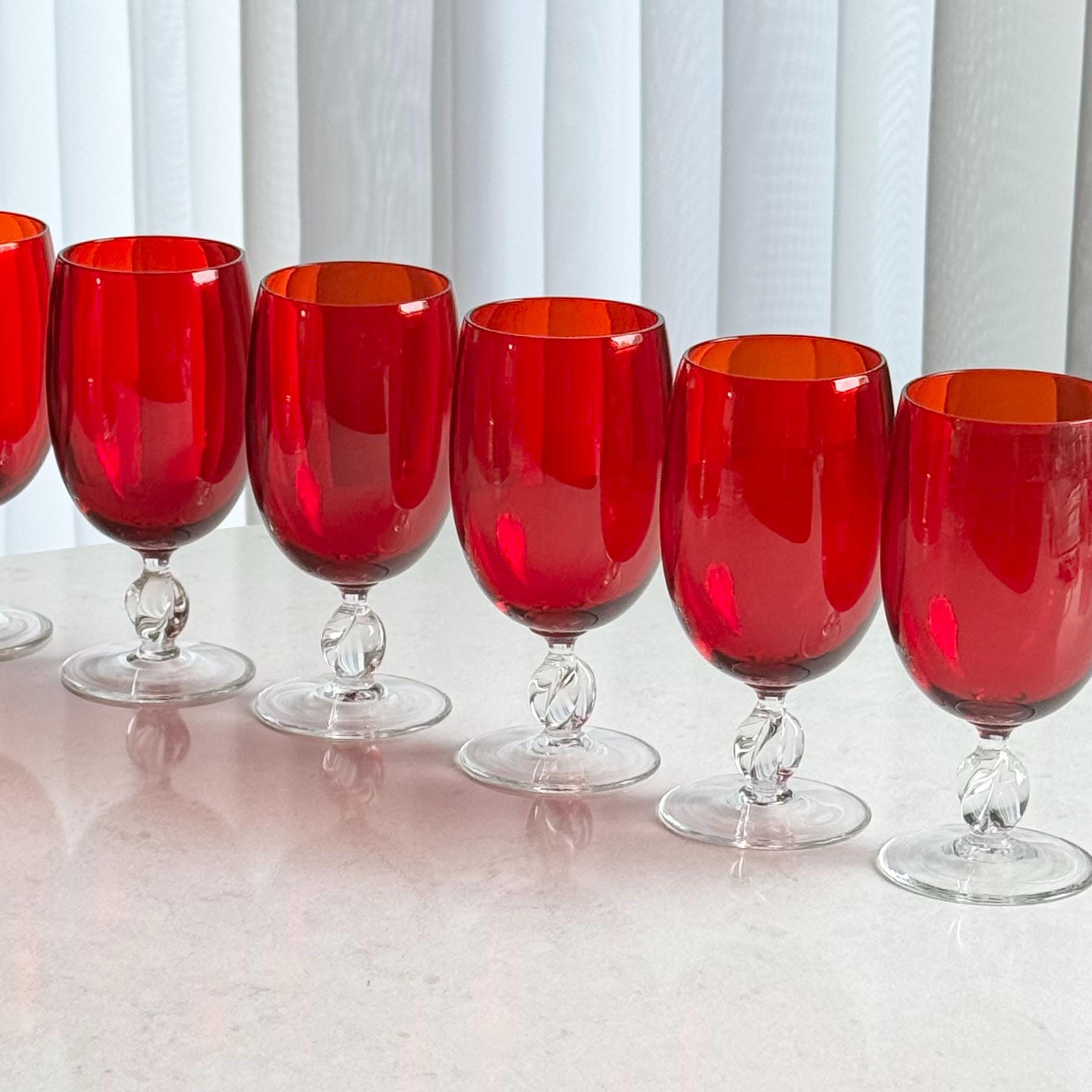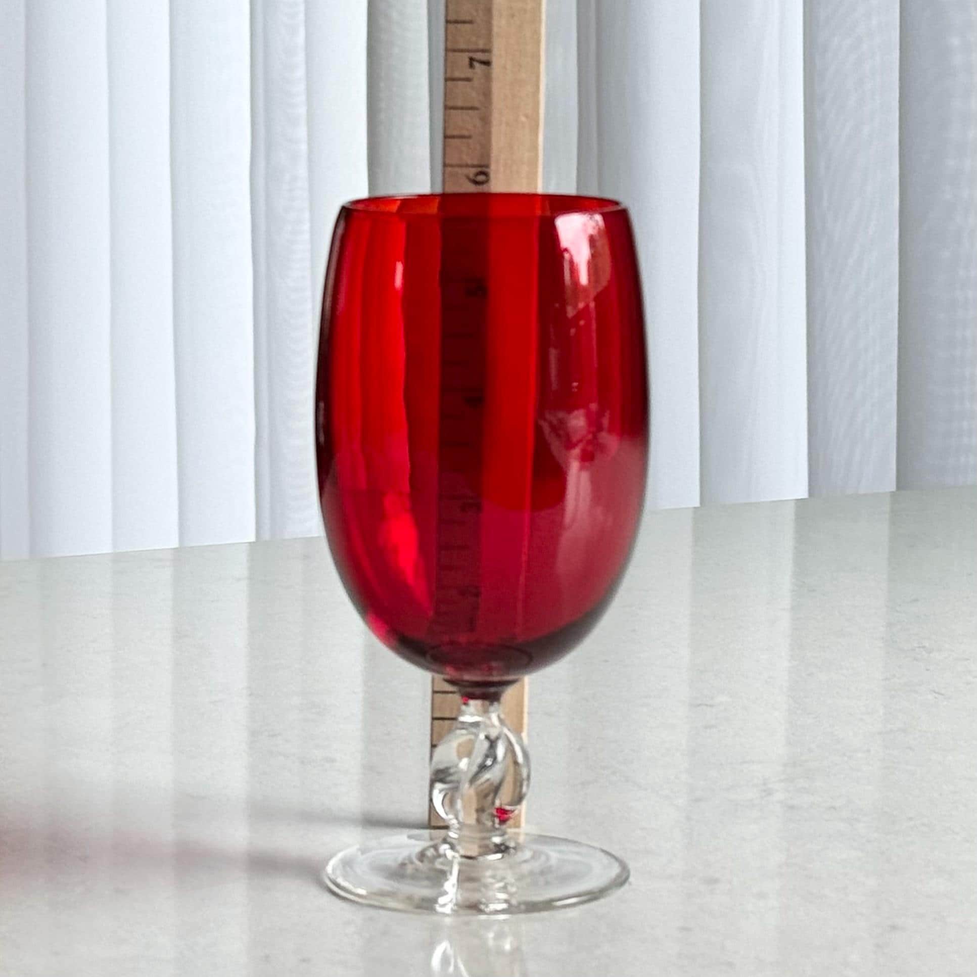 Vintage Ruby Red Twisted Stem Glasses - Set of 6