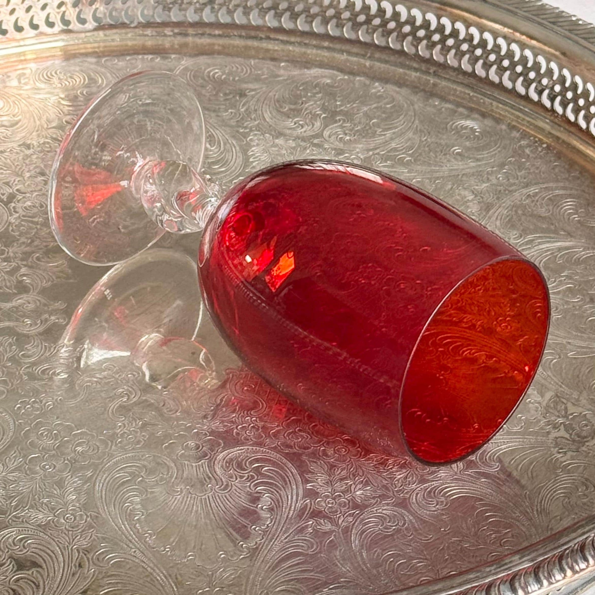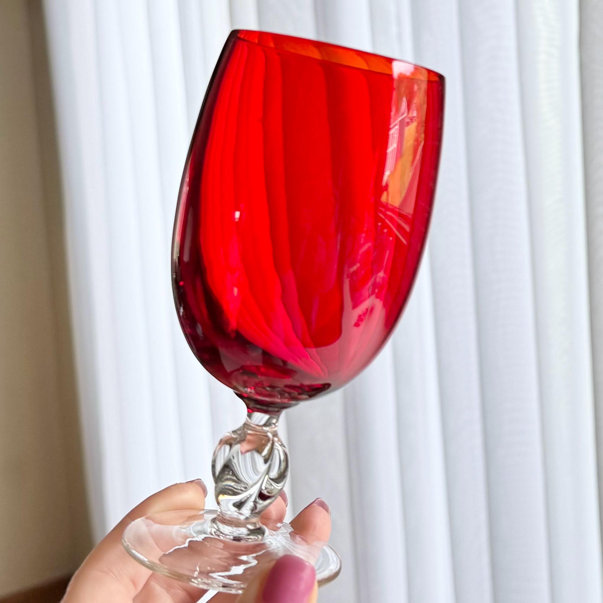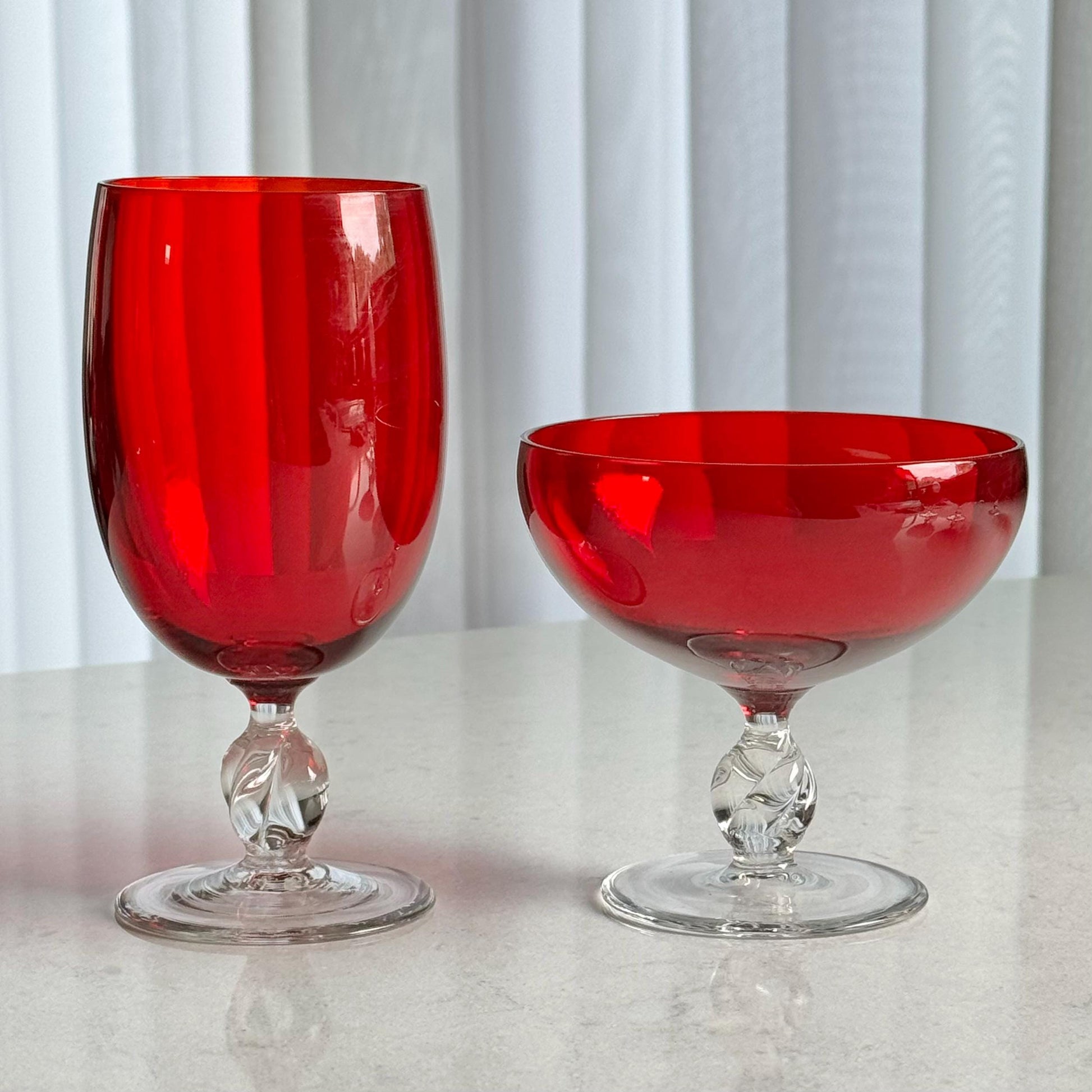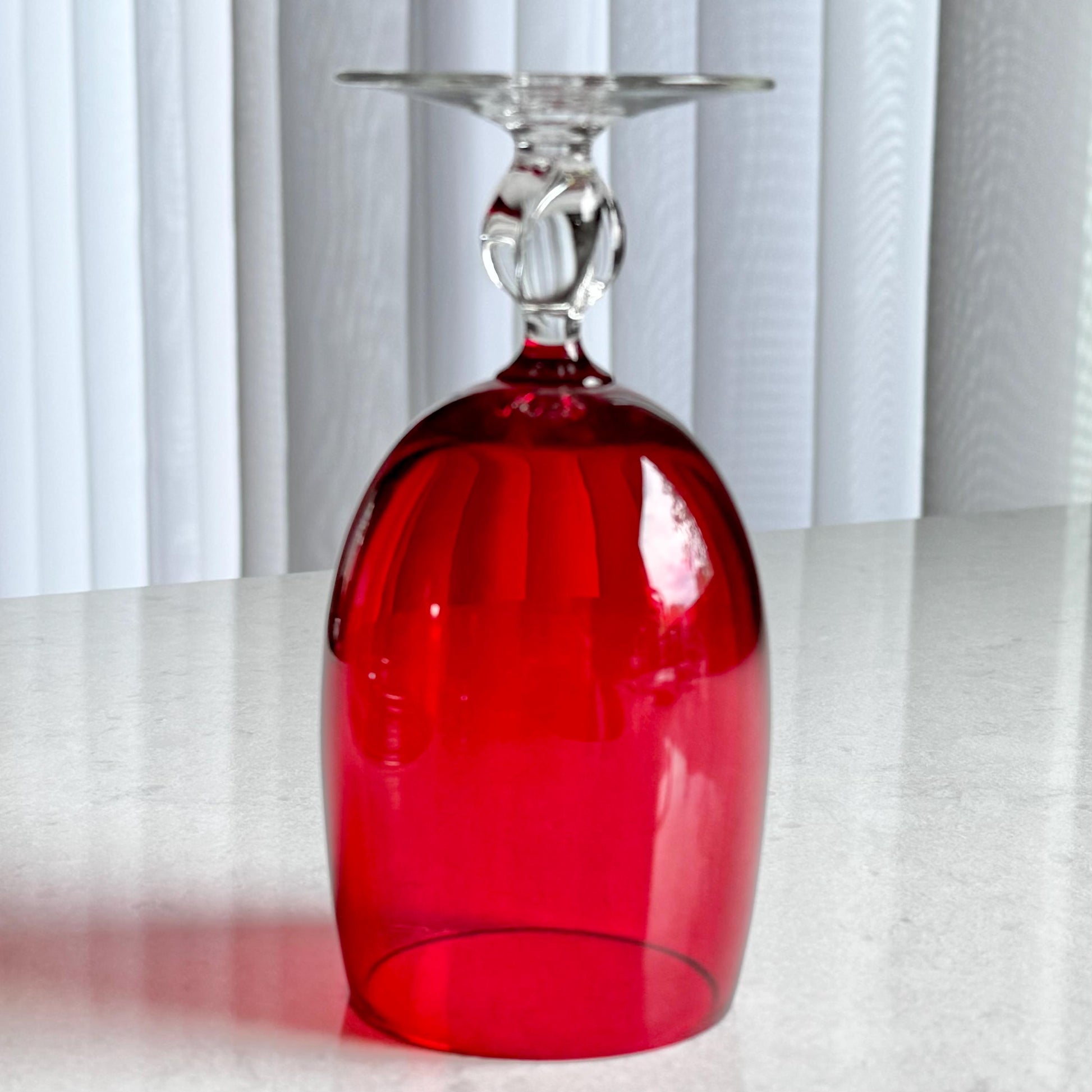 Vintage Ruby Red Twisted Stem Glasses - Set of 6