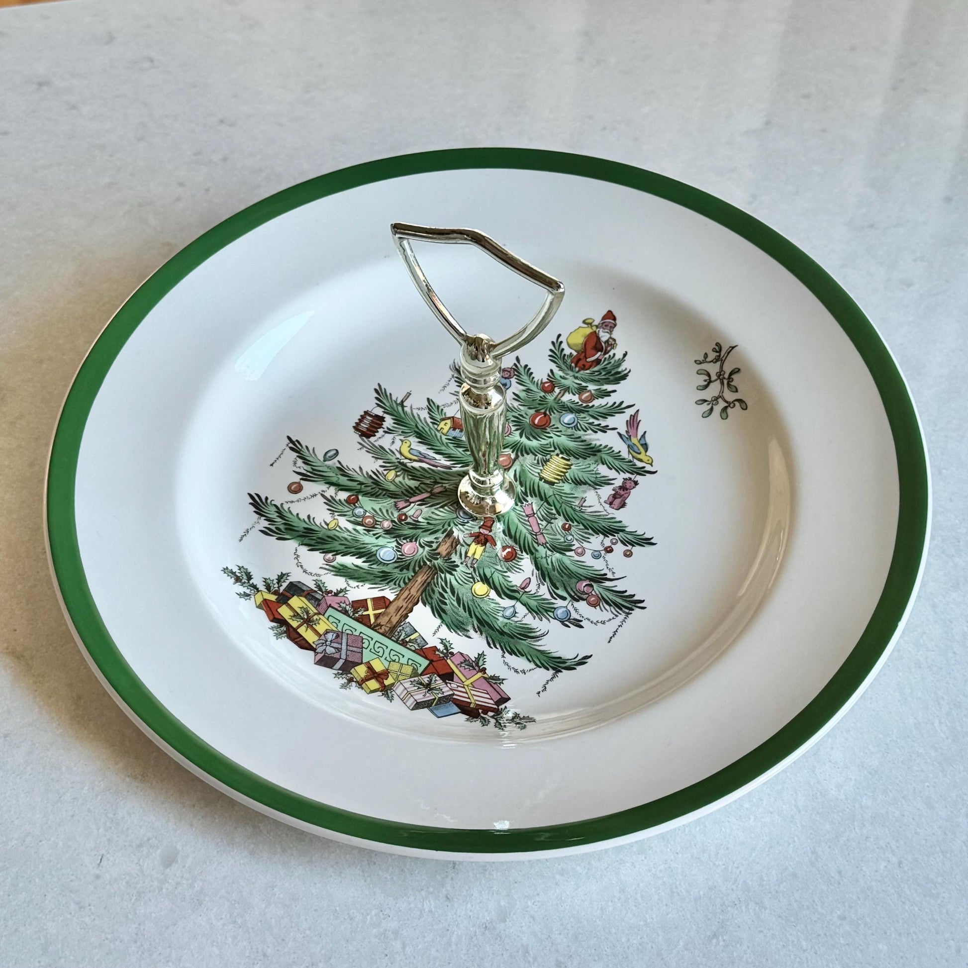 Vintage Spode Christmas Tree Handled Tidbit Tray