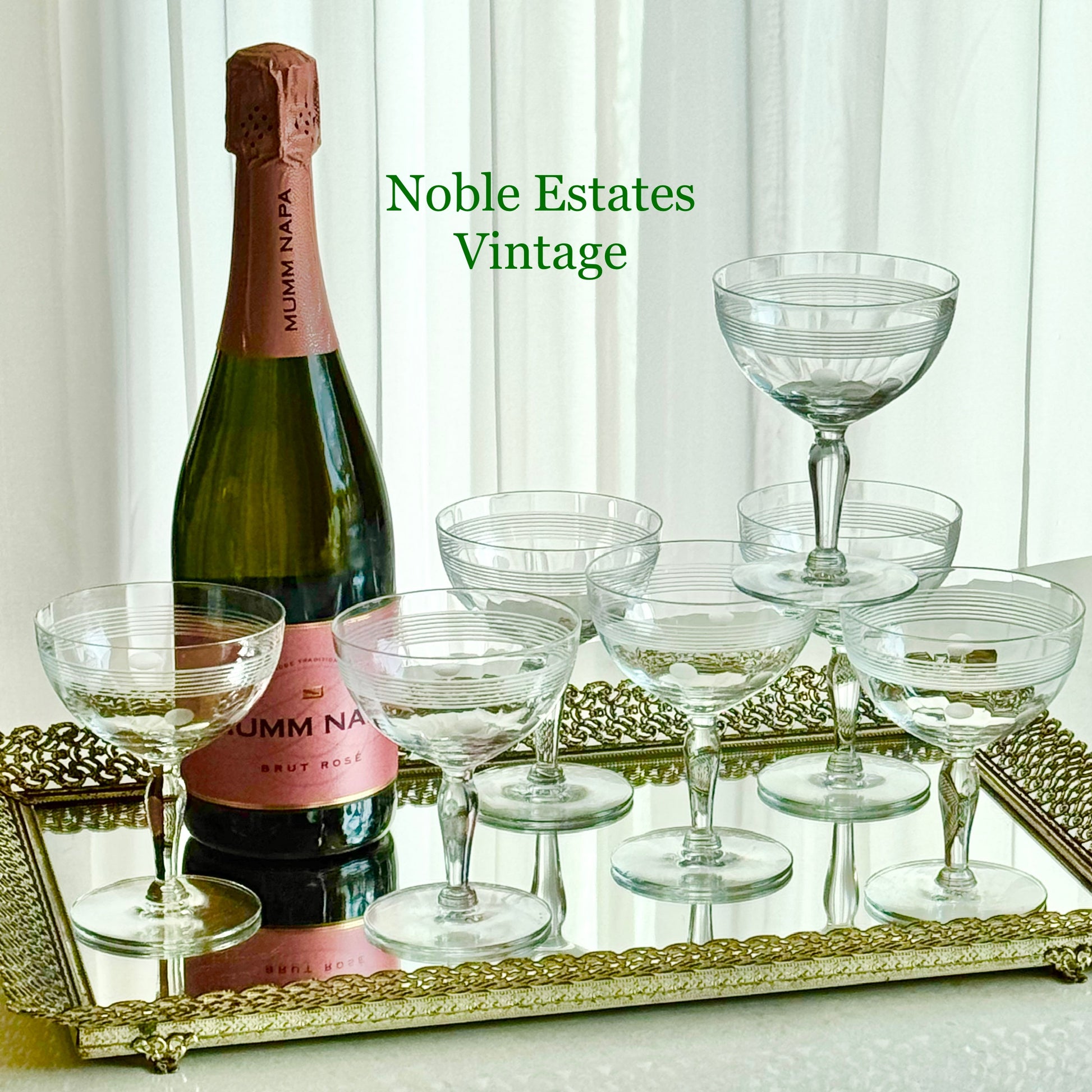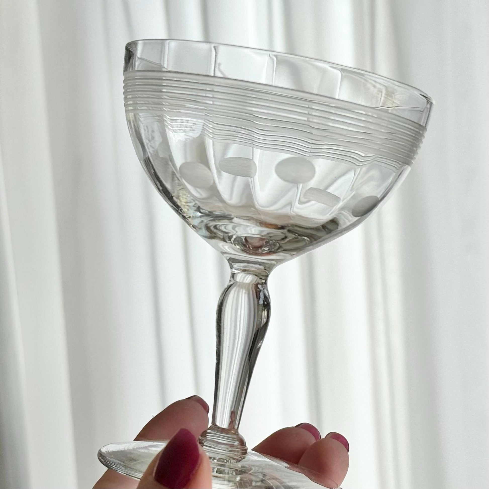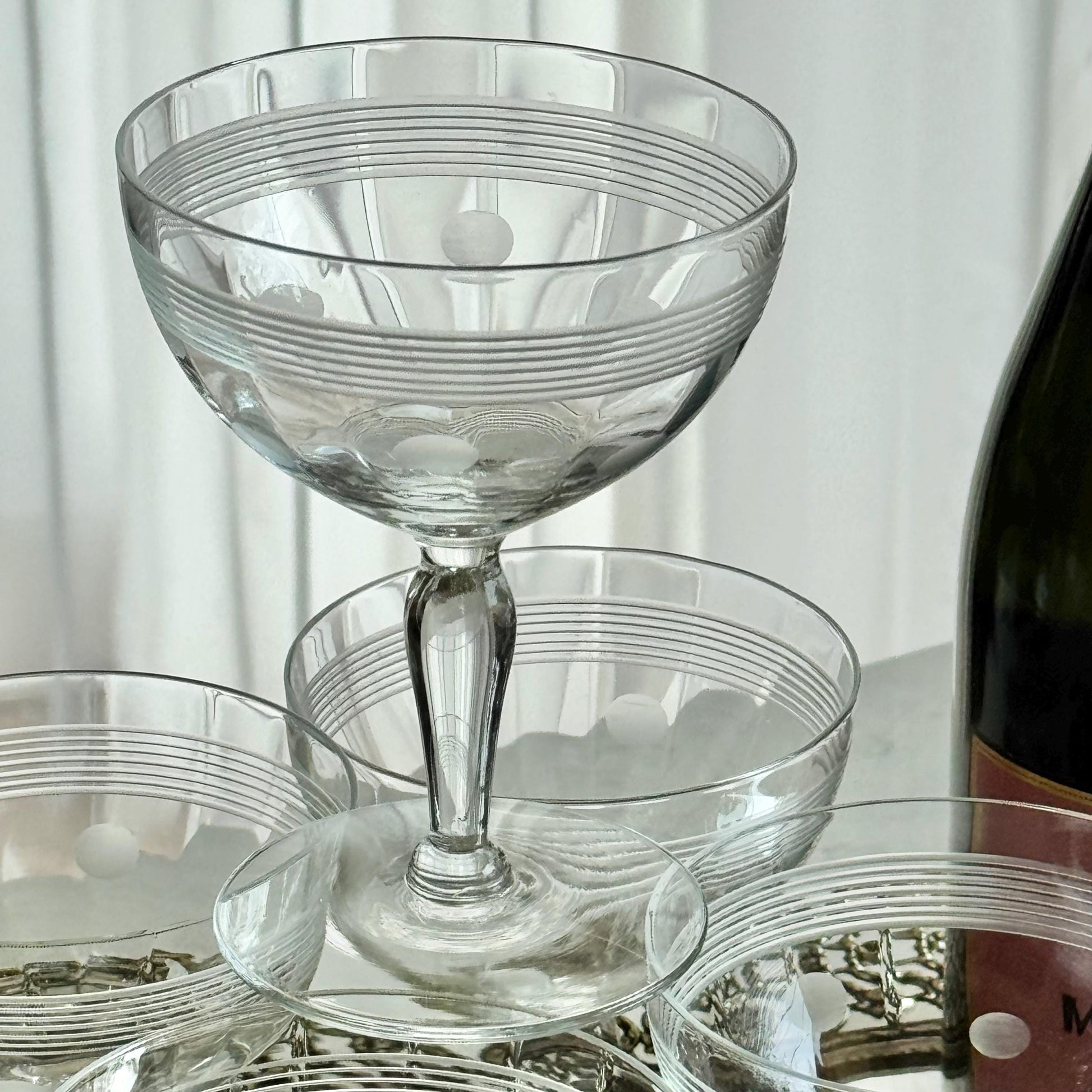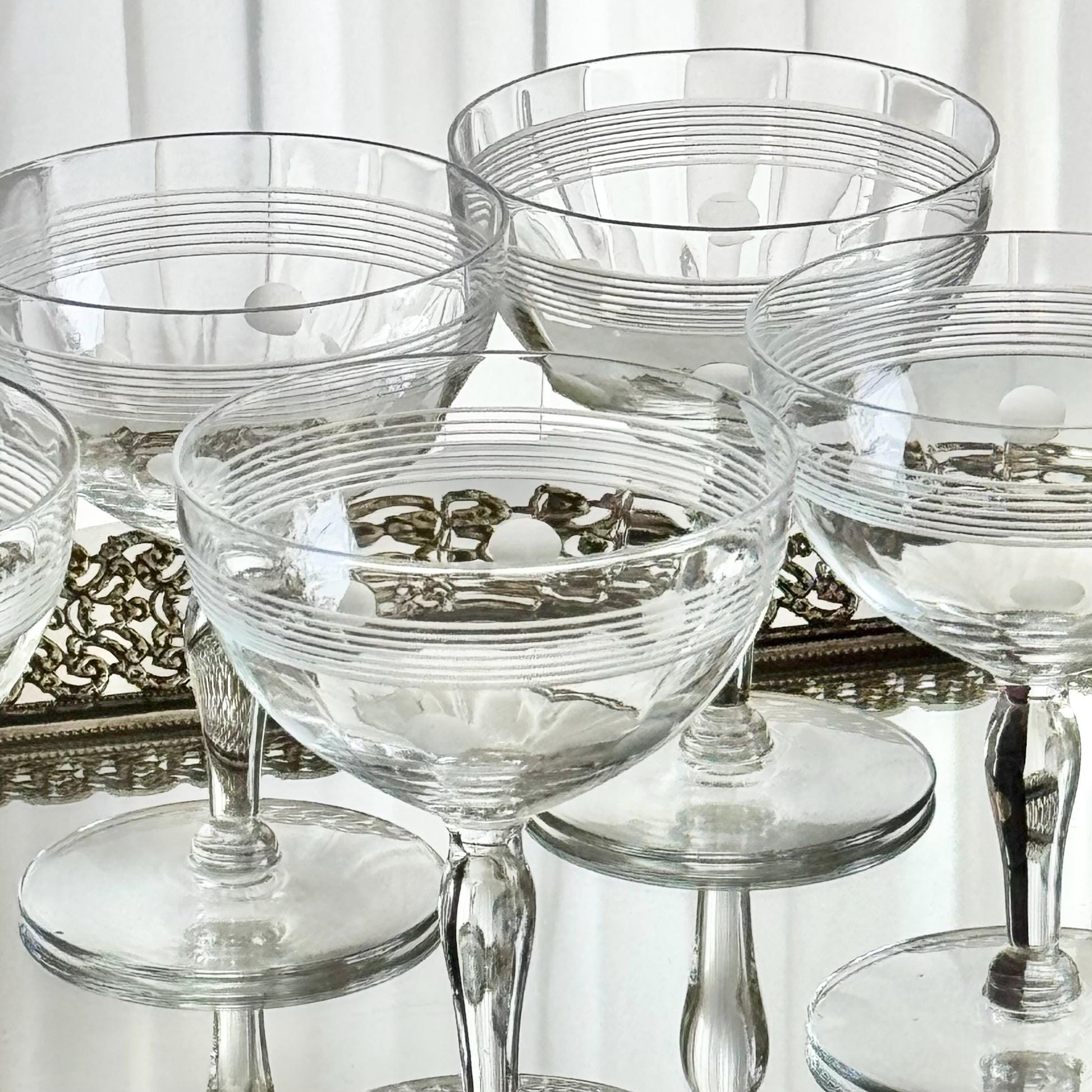 Vintage Standard Glass Dot and Band Champagne Coupes / Cocktail Glasses - Set of 7