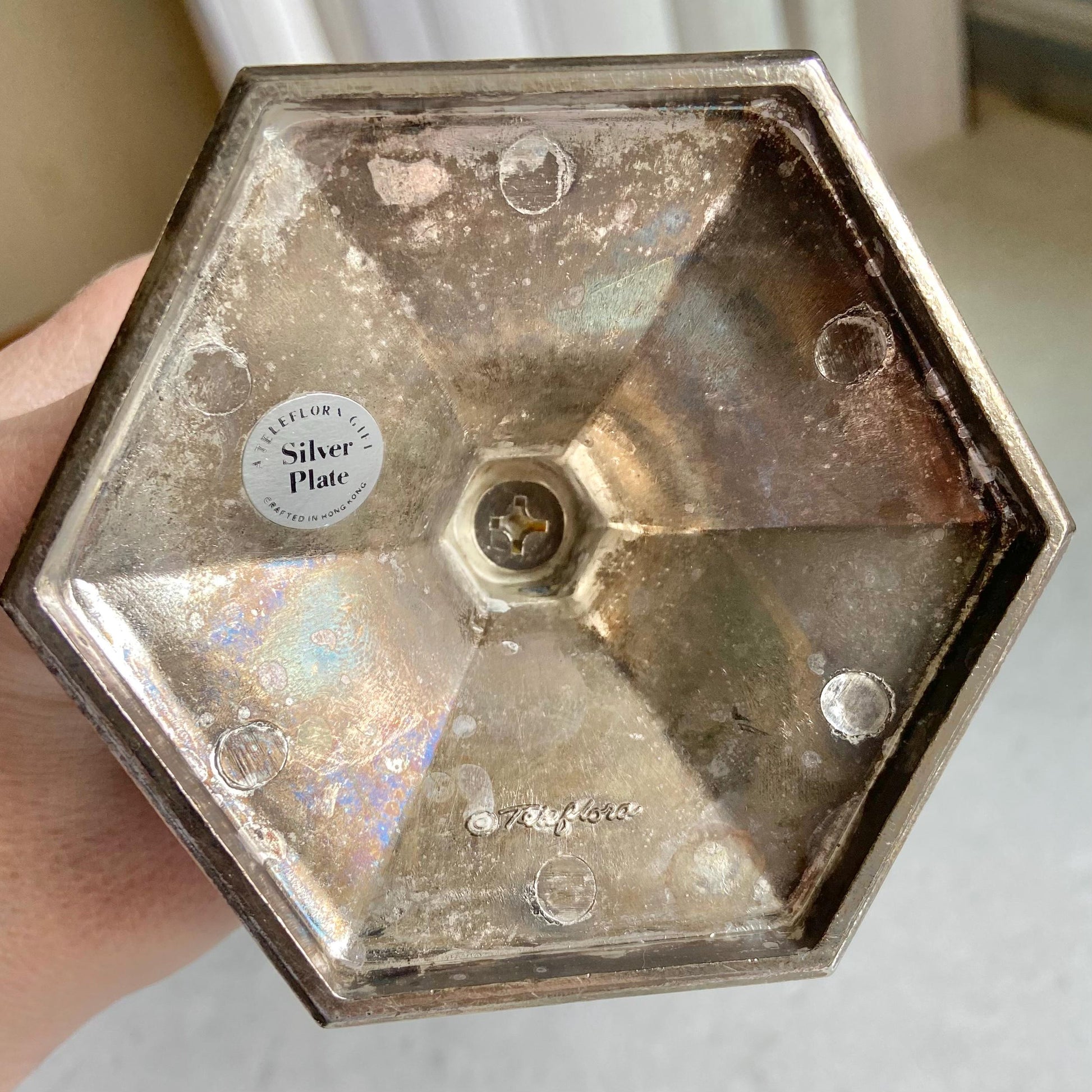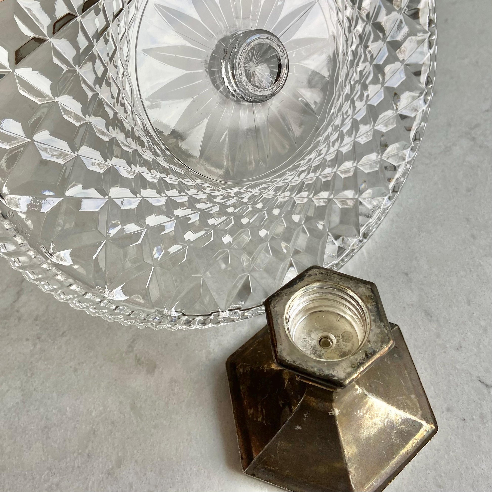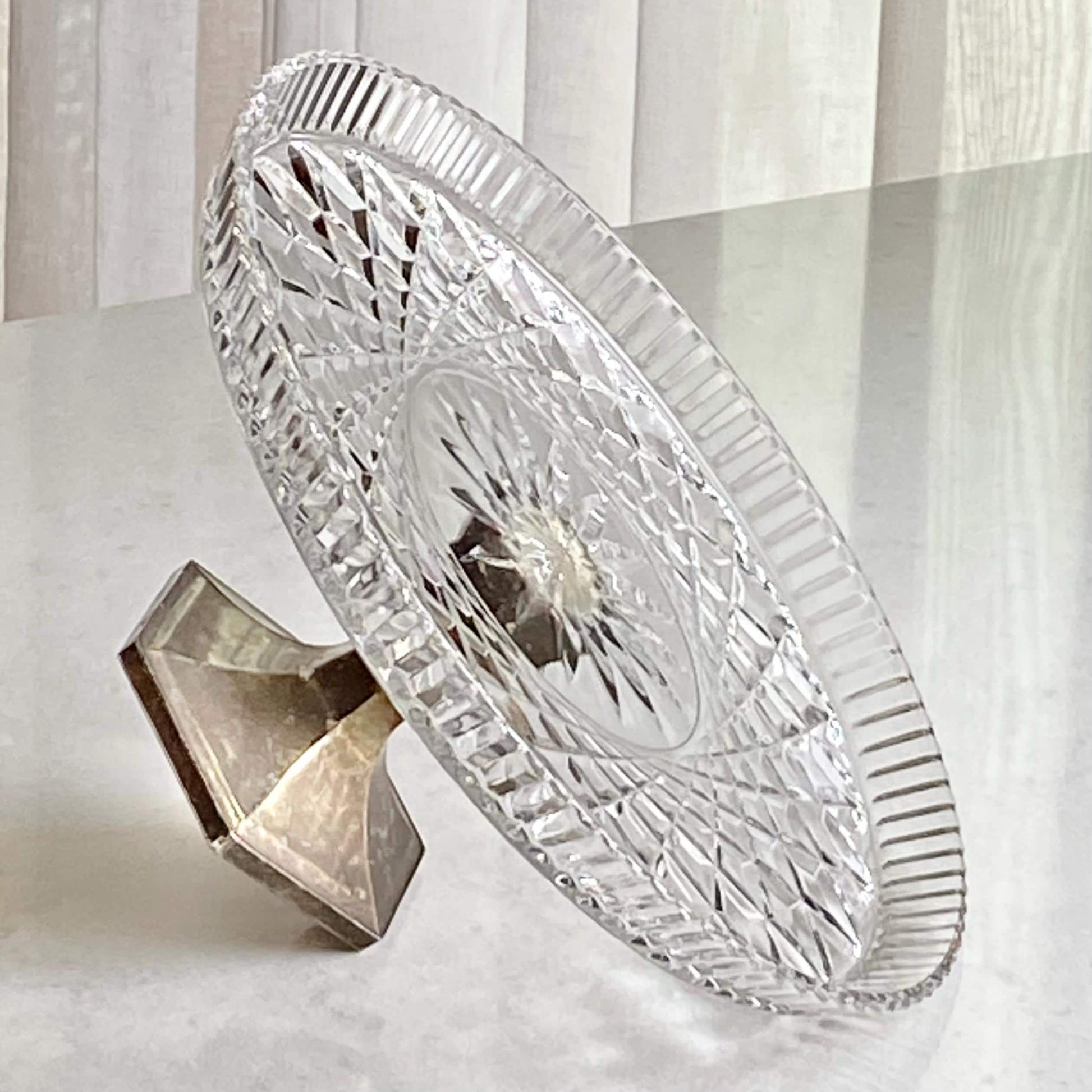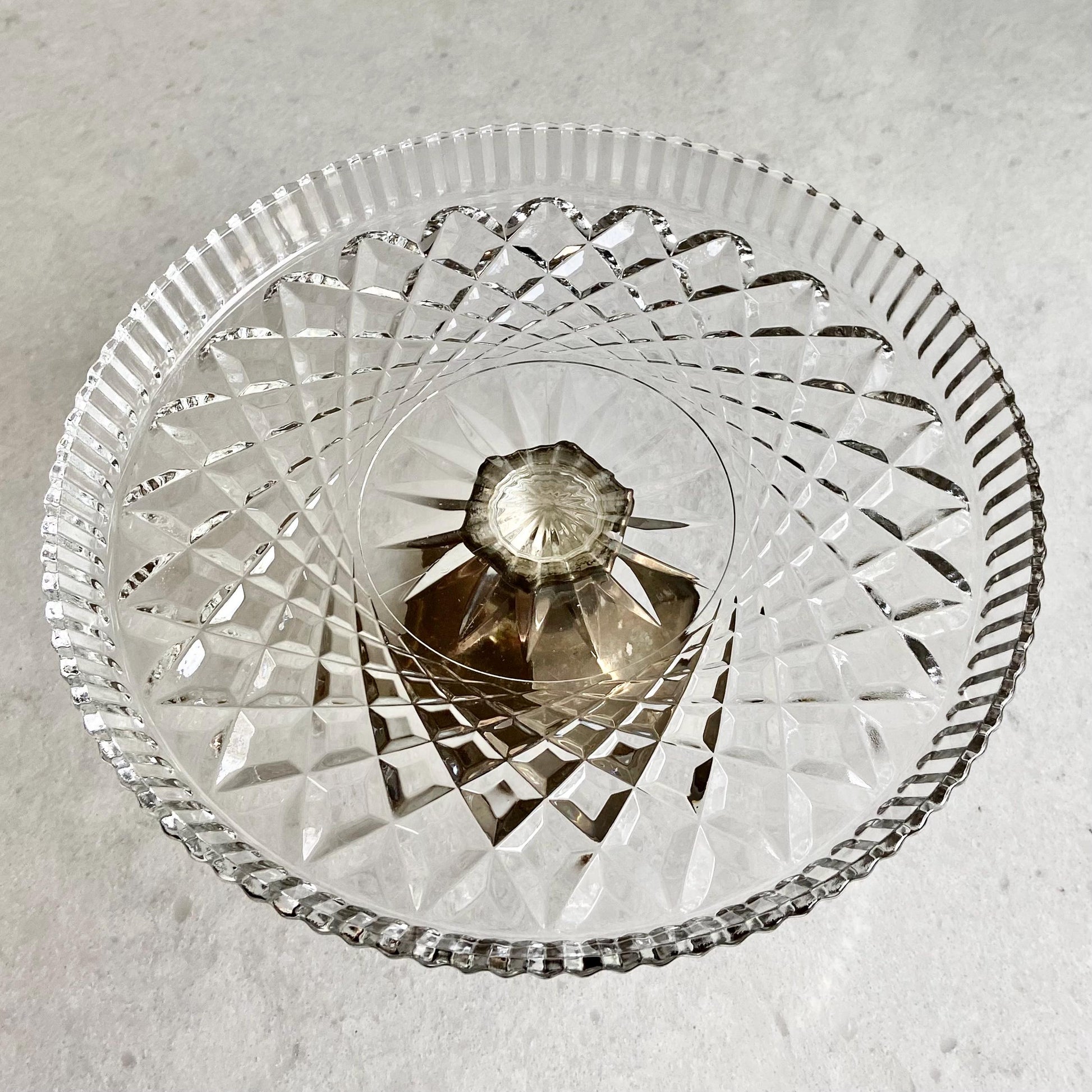 Vintage Teleflora Silver Plate Base 10 Inch Glass Cake Stand