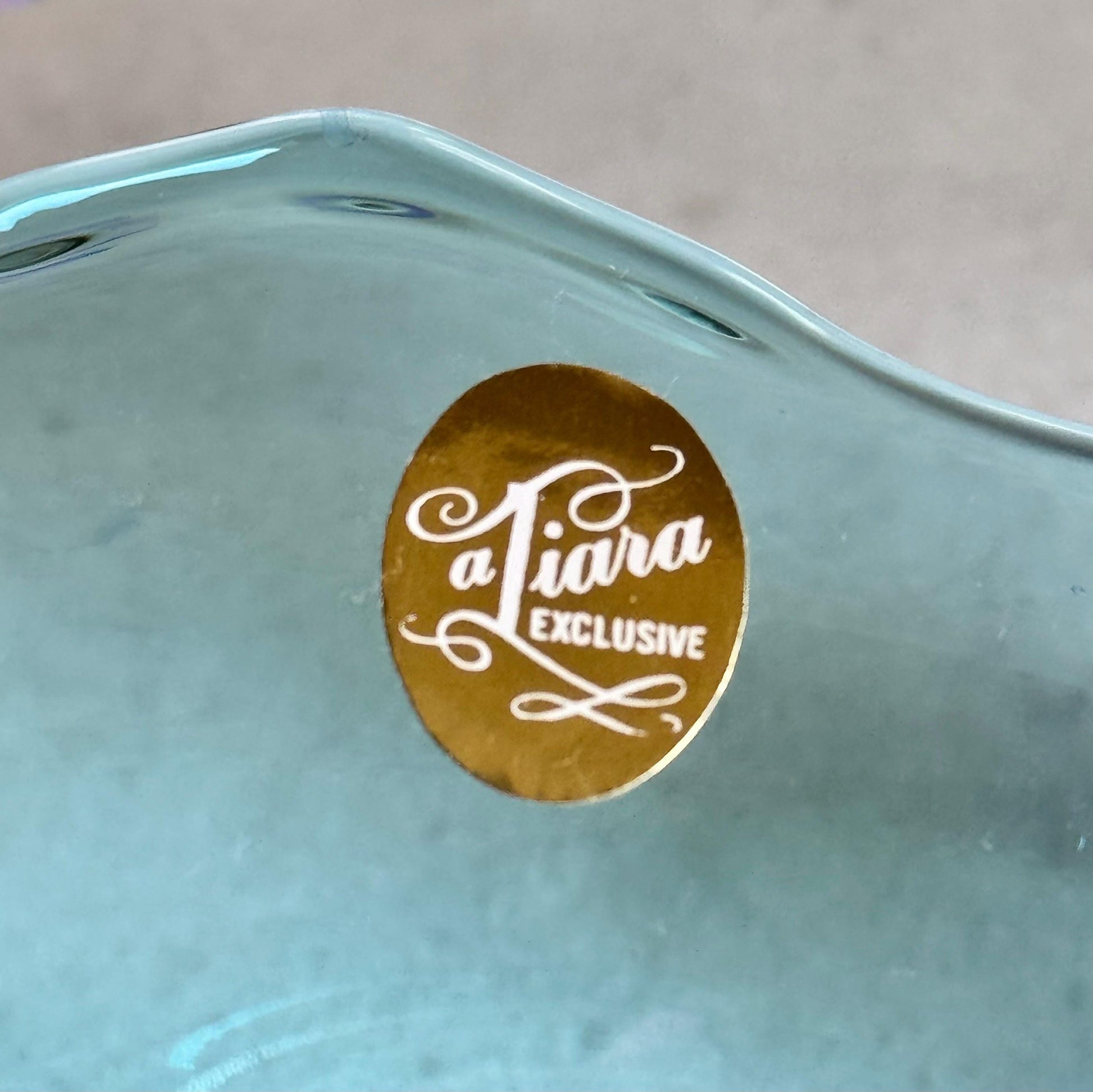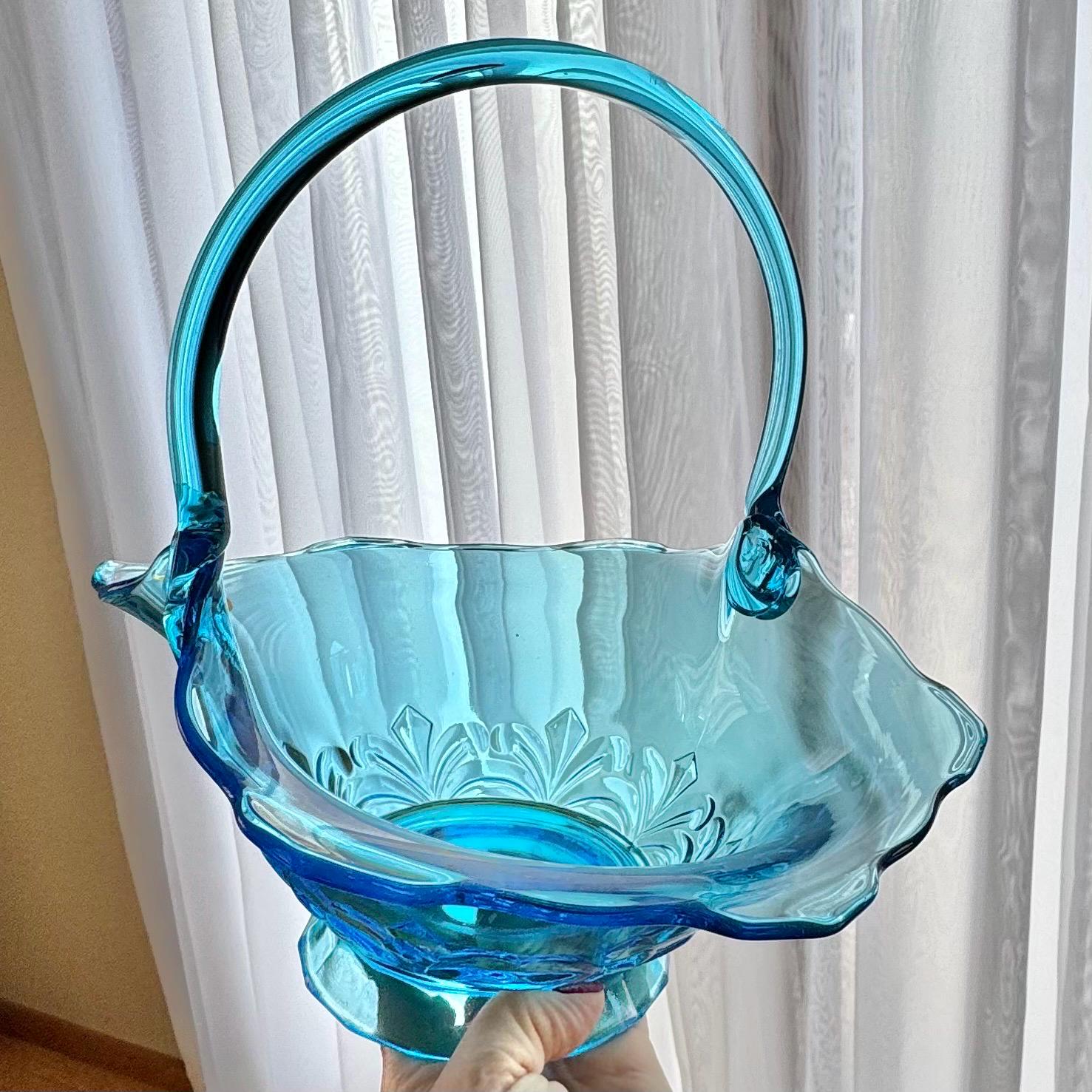 Vintage Tiara Exclusive Blue Glass Duchess Double Fleur De Lis Basket (circa 1980)