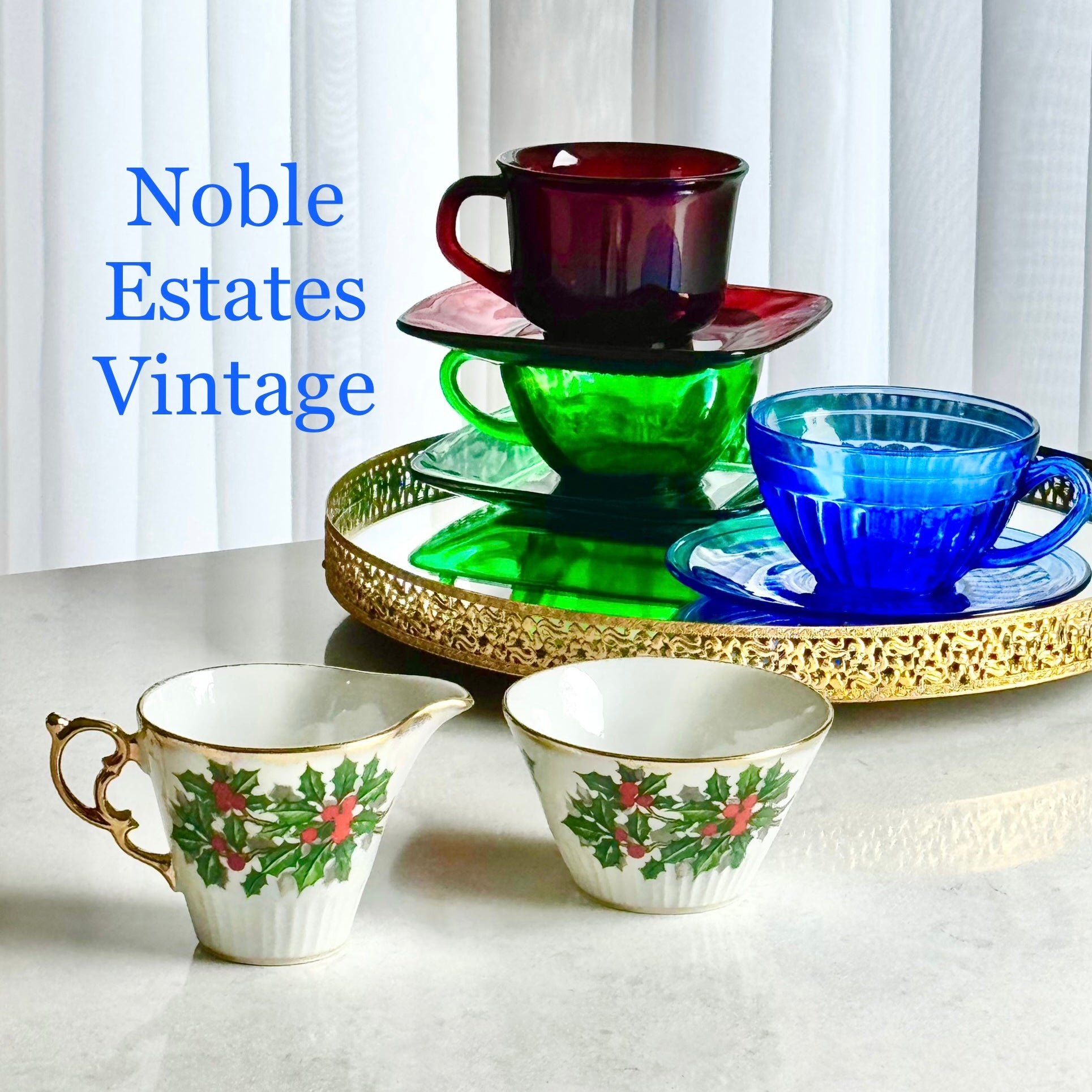 Lovely creamer and open sugar set! The pieces have a slight iridescent sheen, adding to the festive fun!
