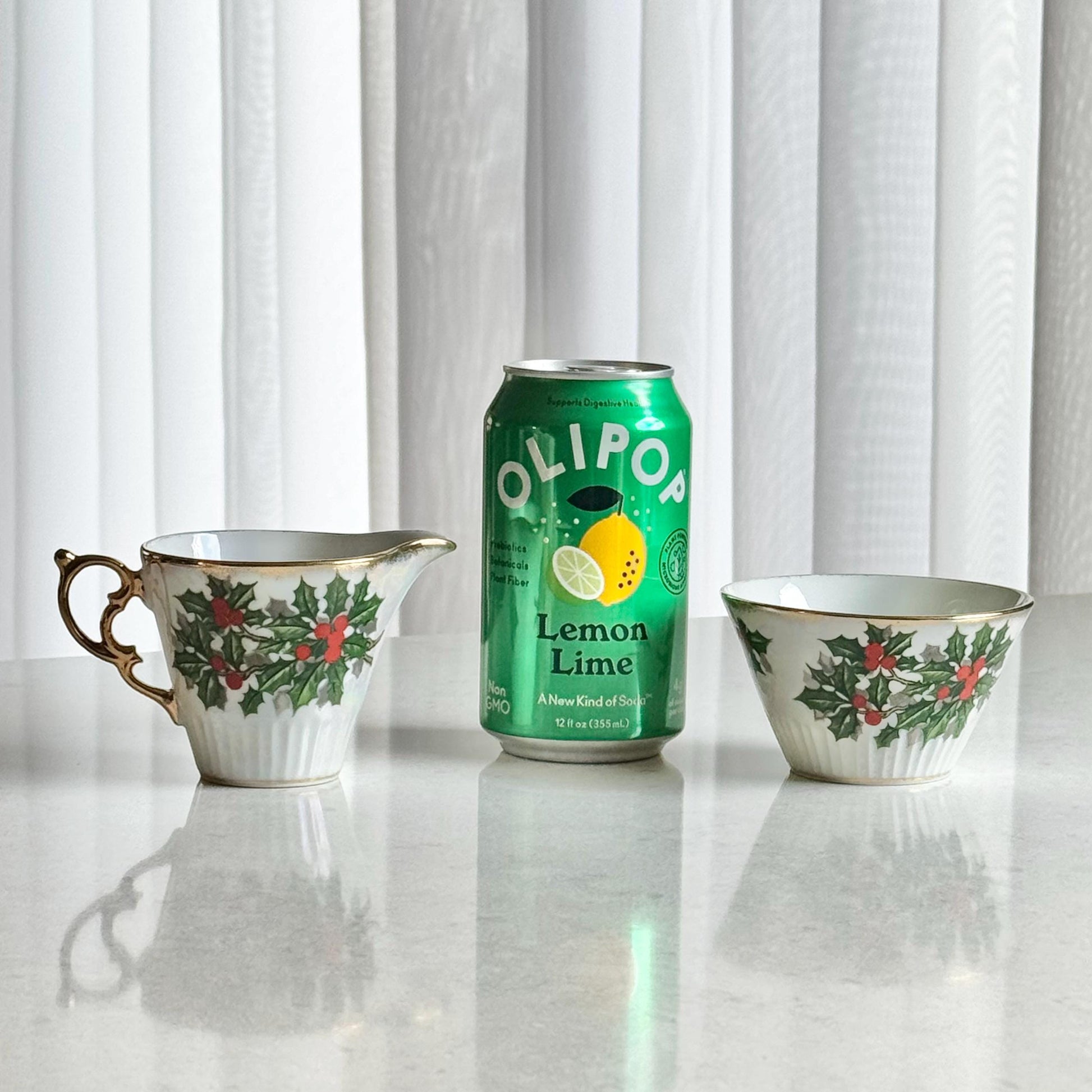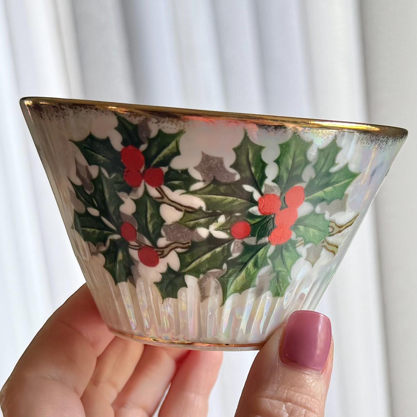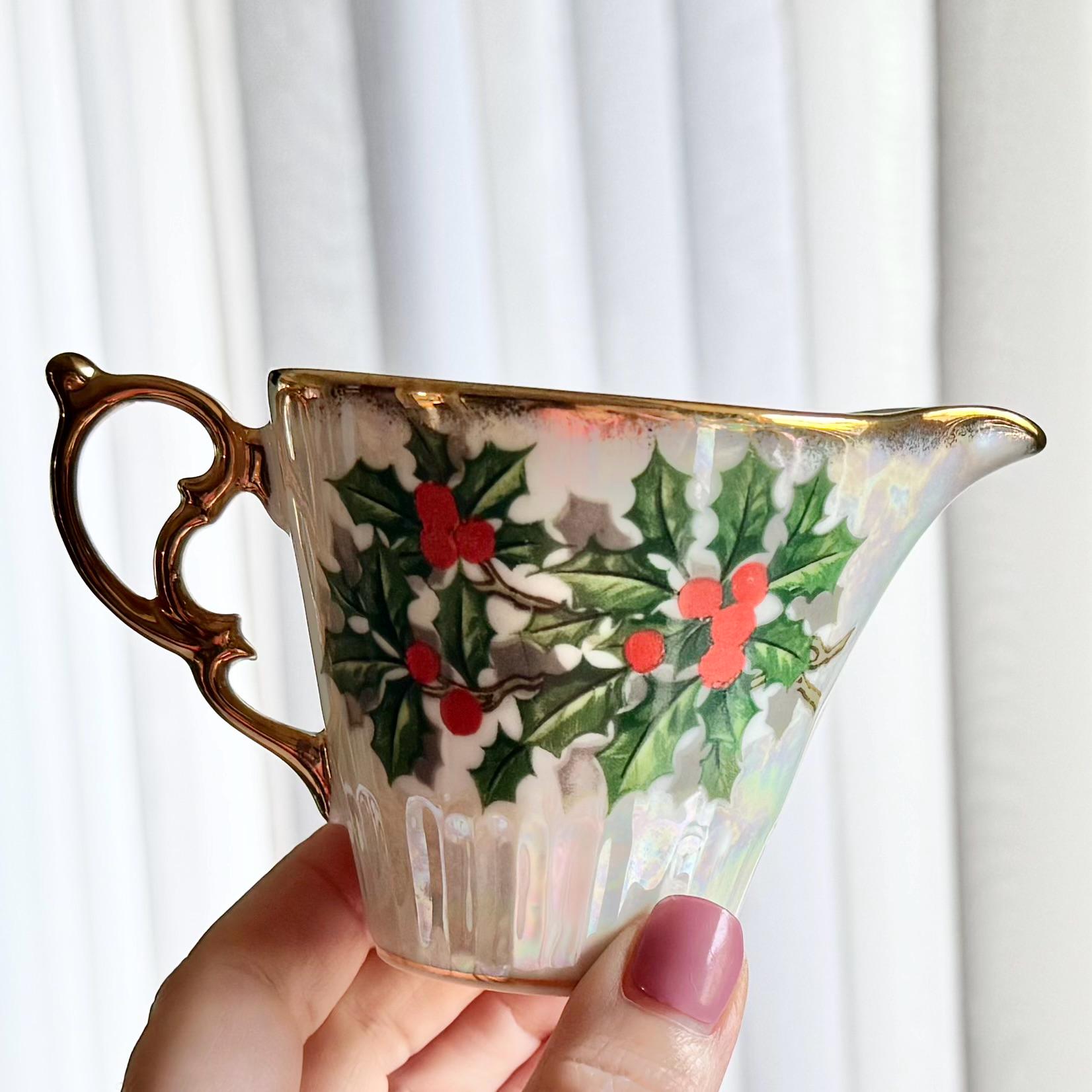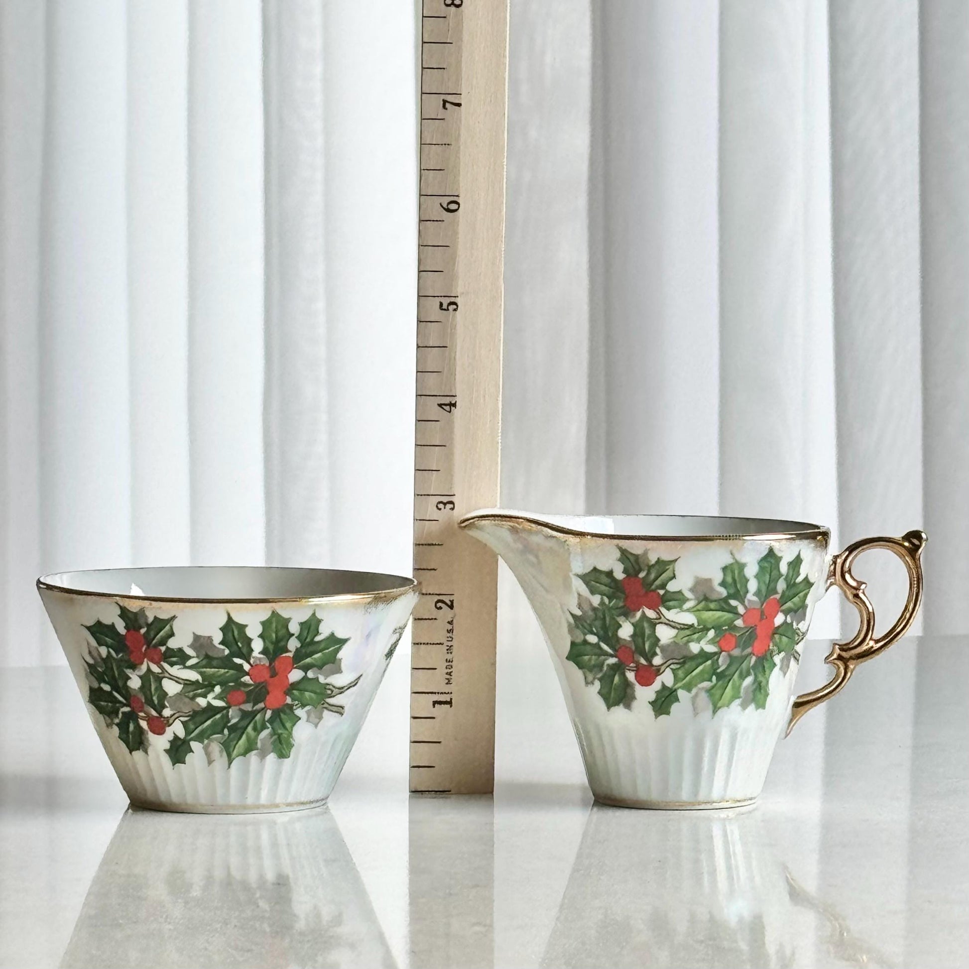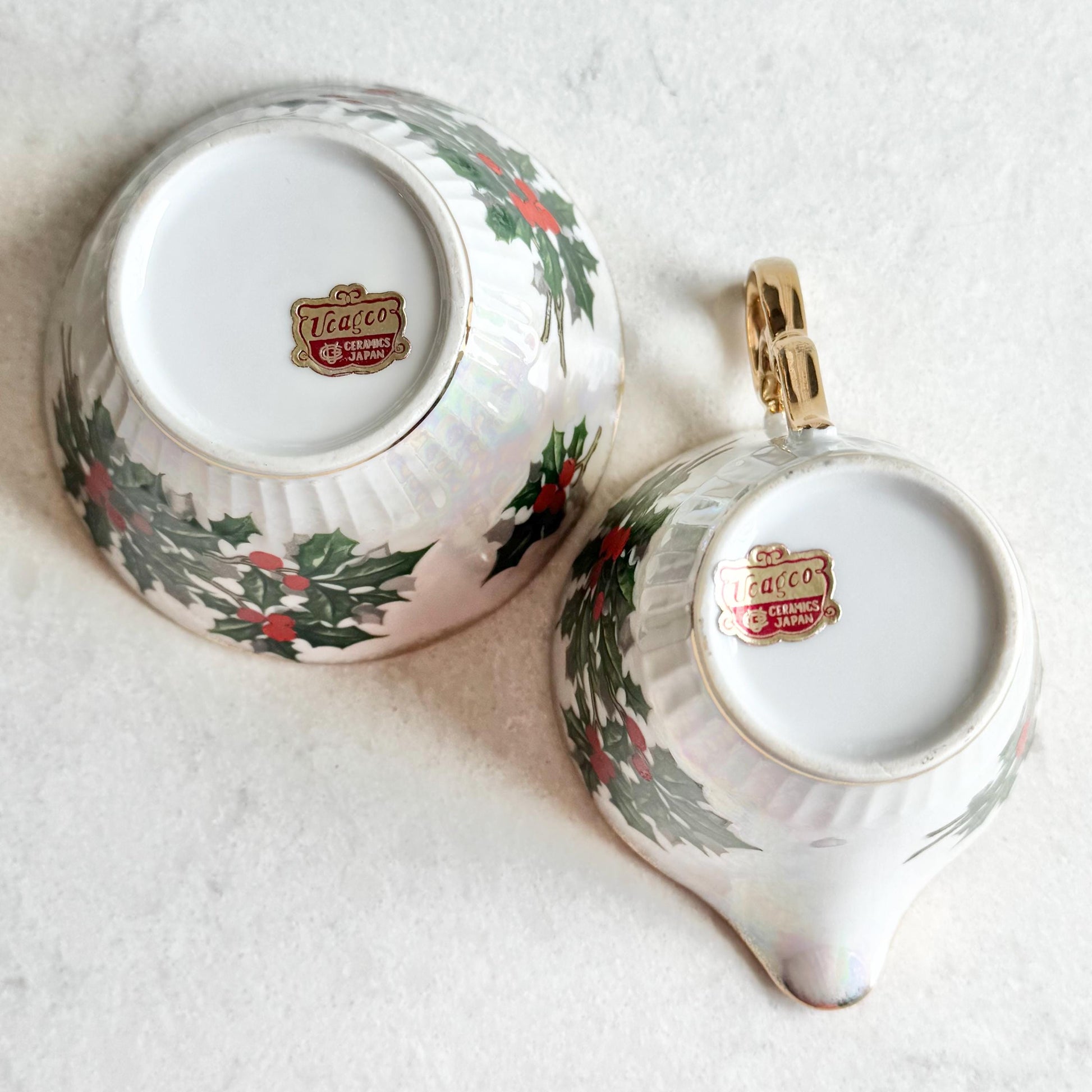 Vintage Ucagco Lusterware Creamer and Open Sugar Set (December / Holly from the Flower of the Month Club)