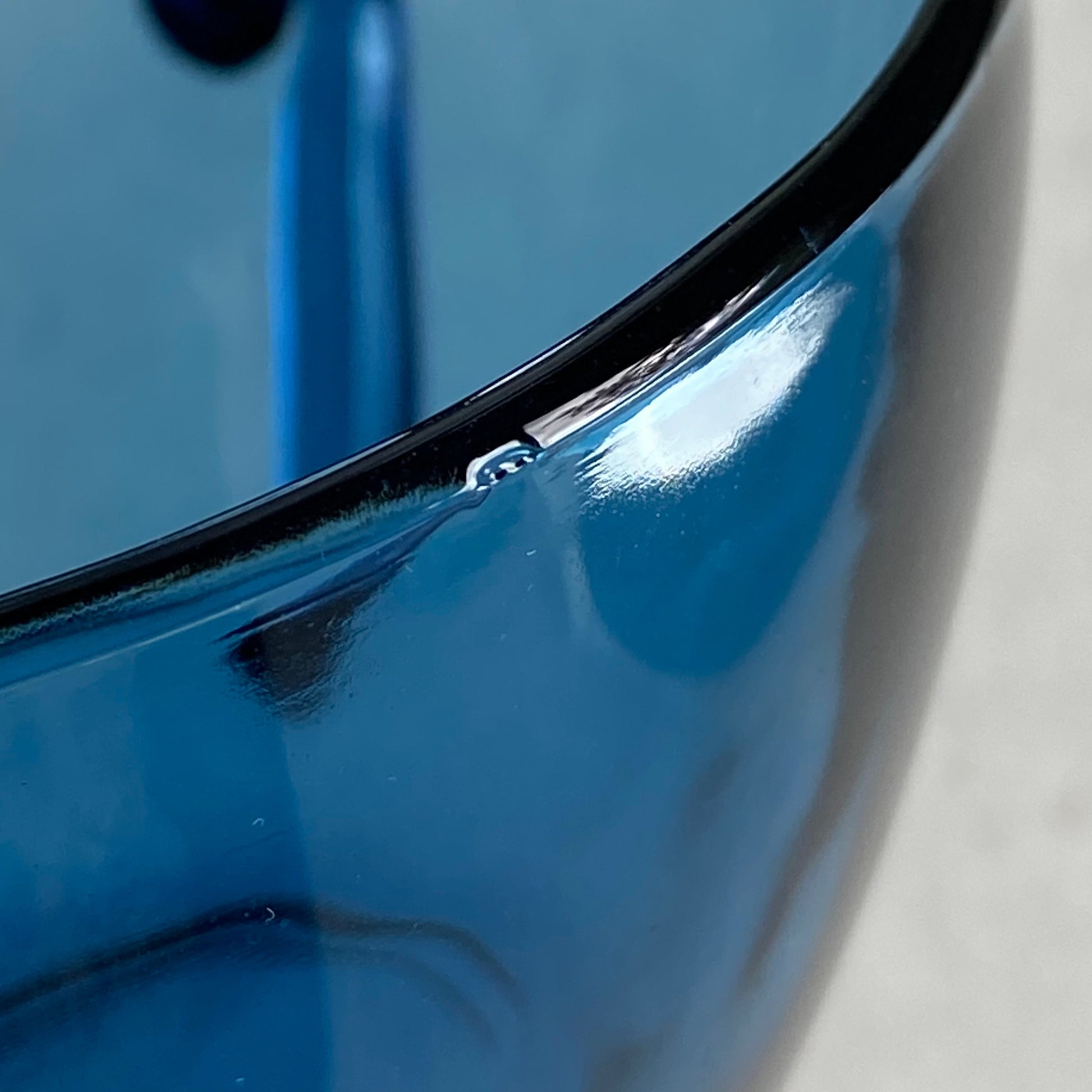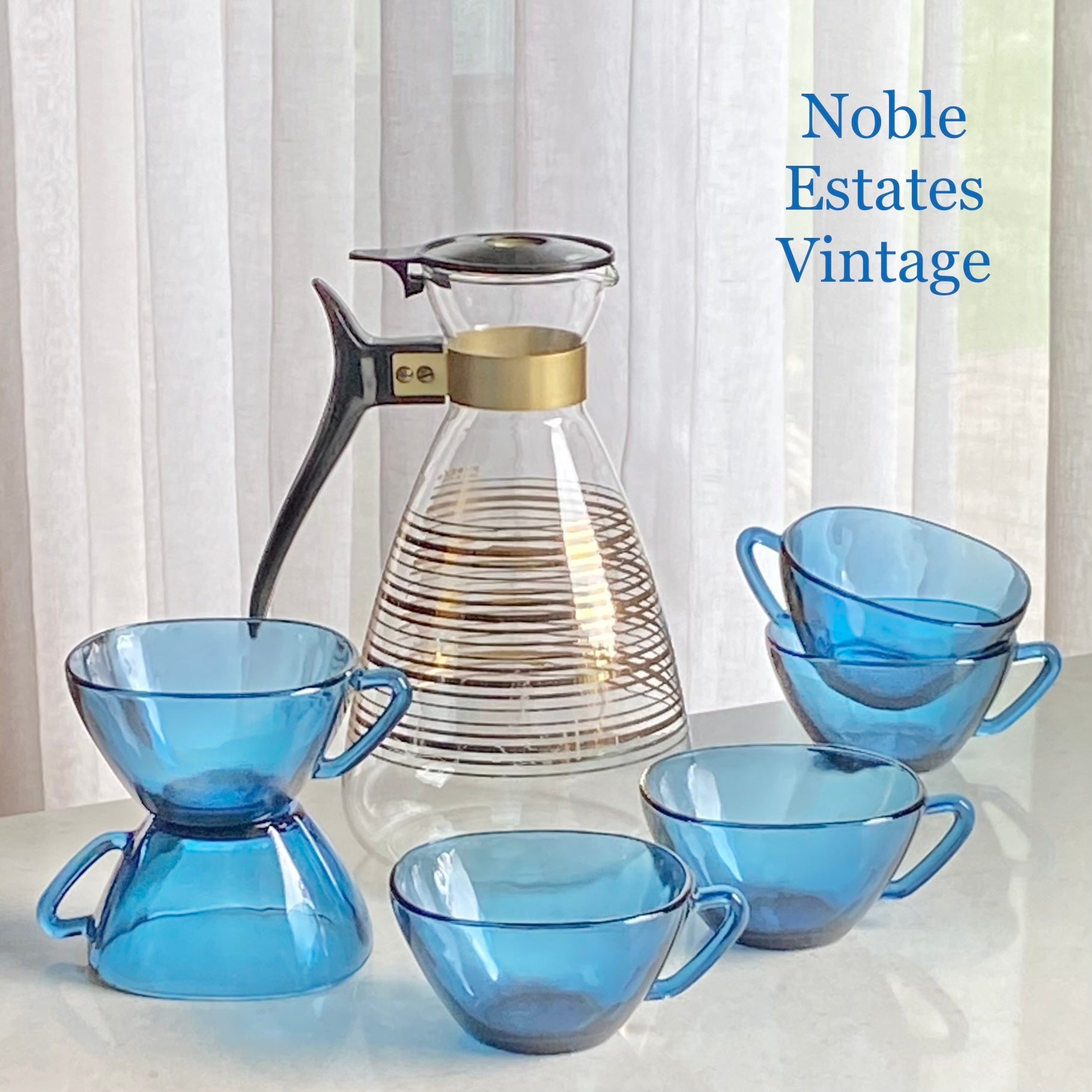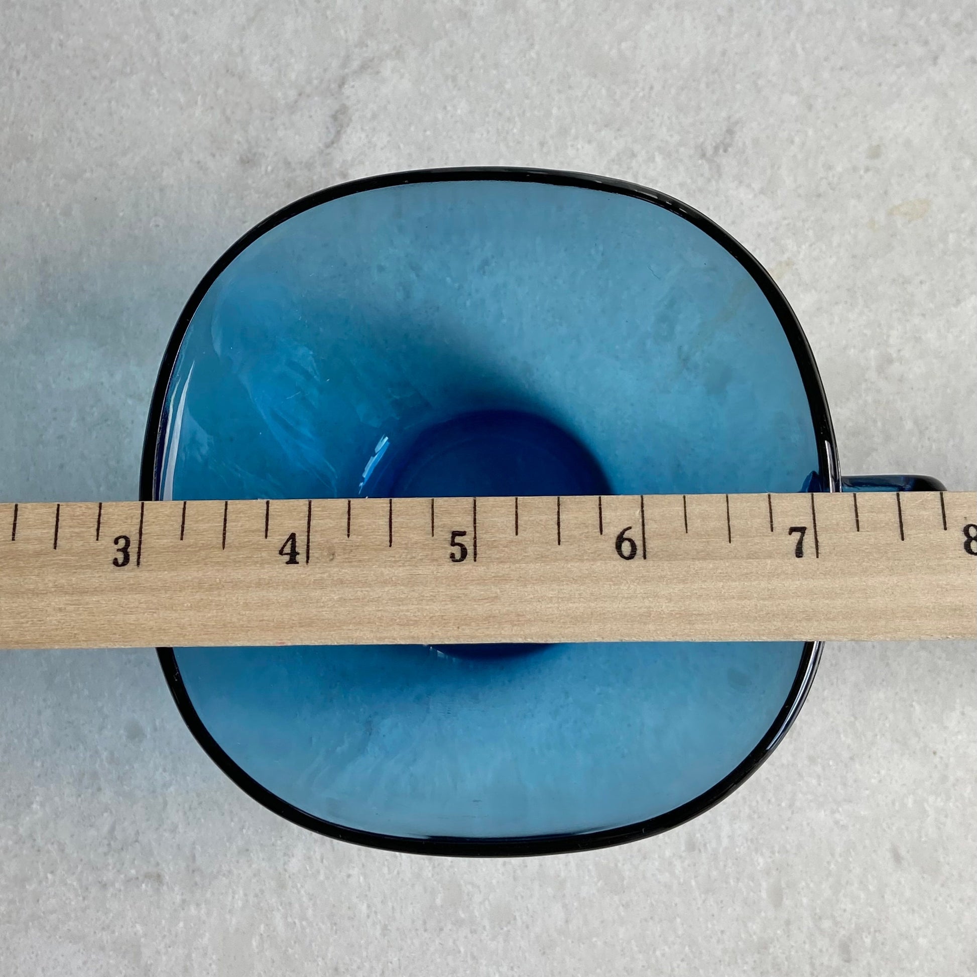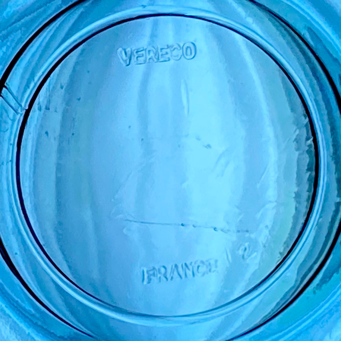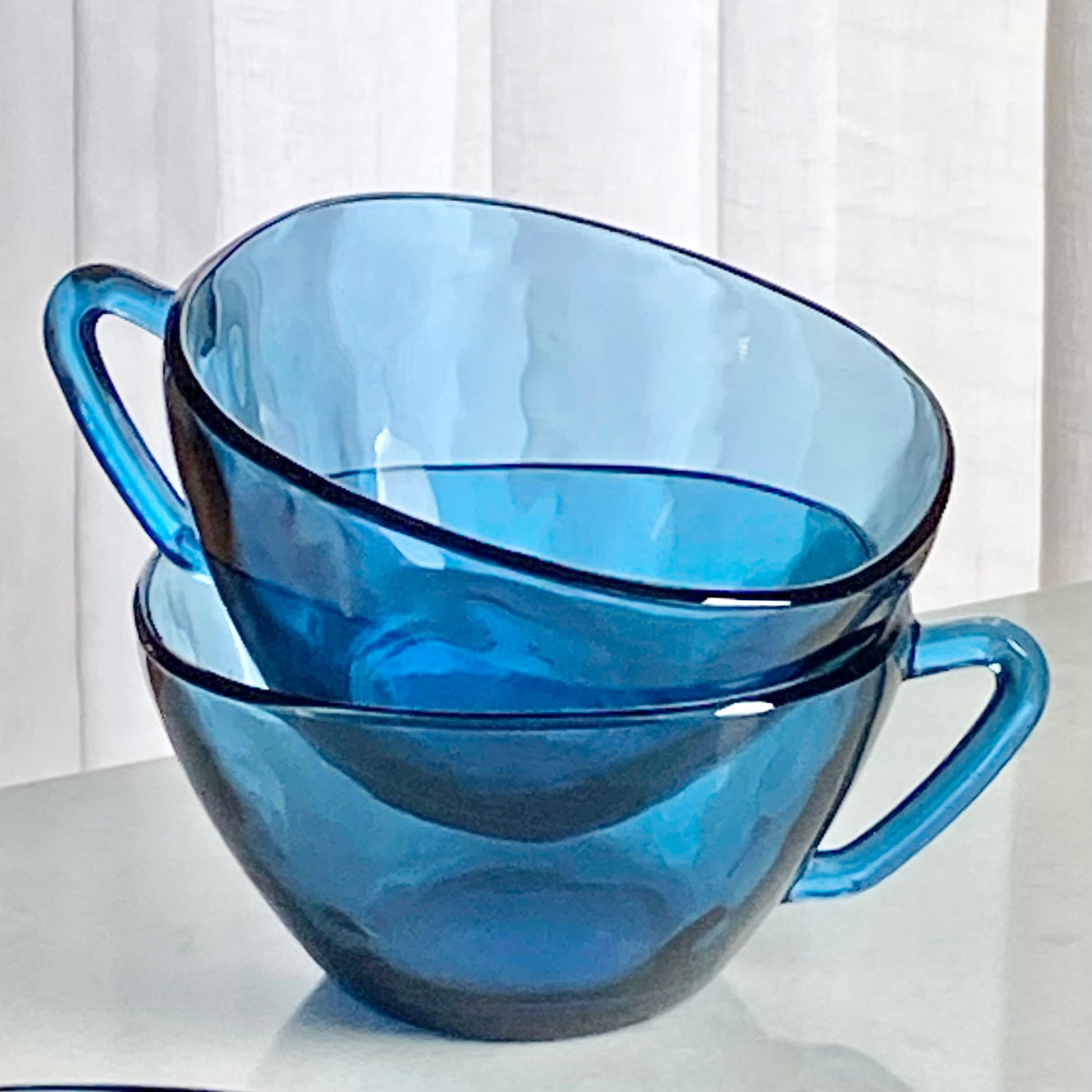 Set of six blue cups with a fun square shape! The cups are marked "Vereco" and "France" on the bottoms.