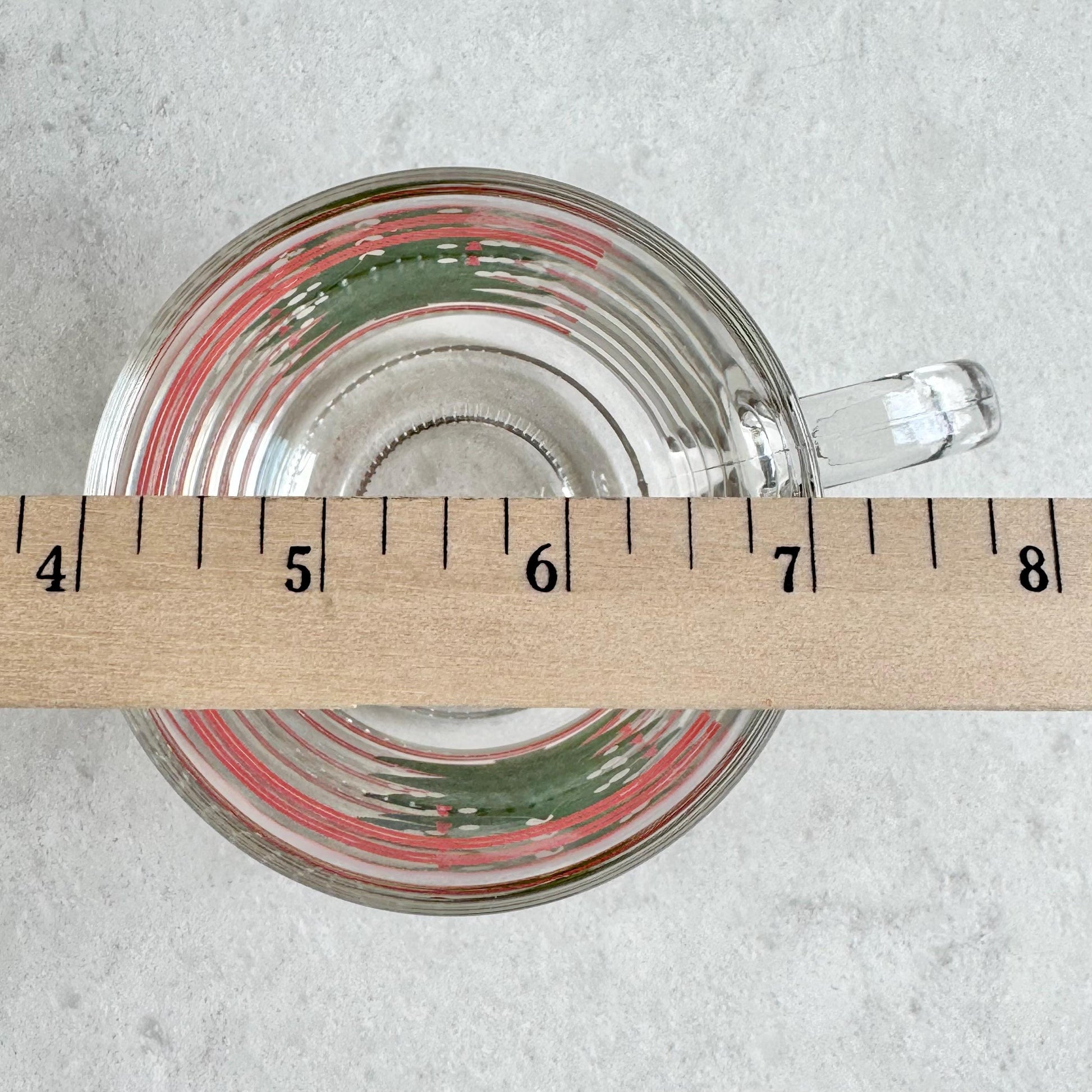 Set of 8 mugs. Approximately 3-1/2" tall and 3" across the rim with a capacity of about 10 ounces completely full. Excellent vintage condition.