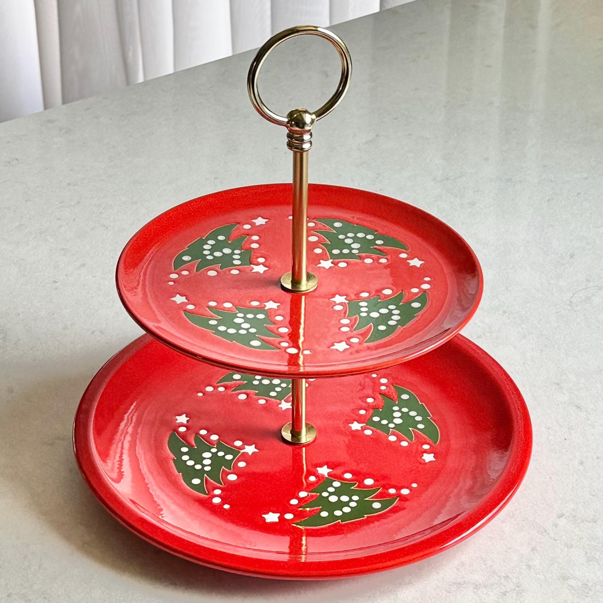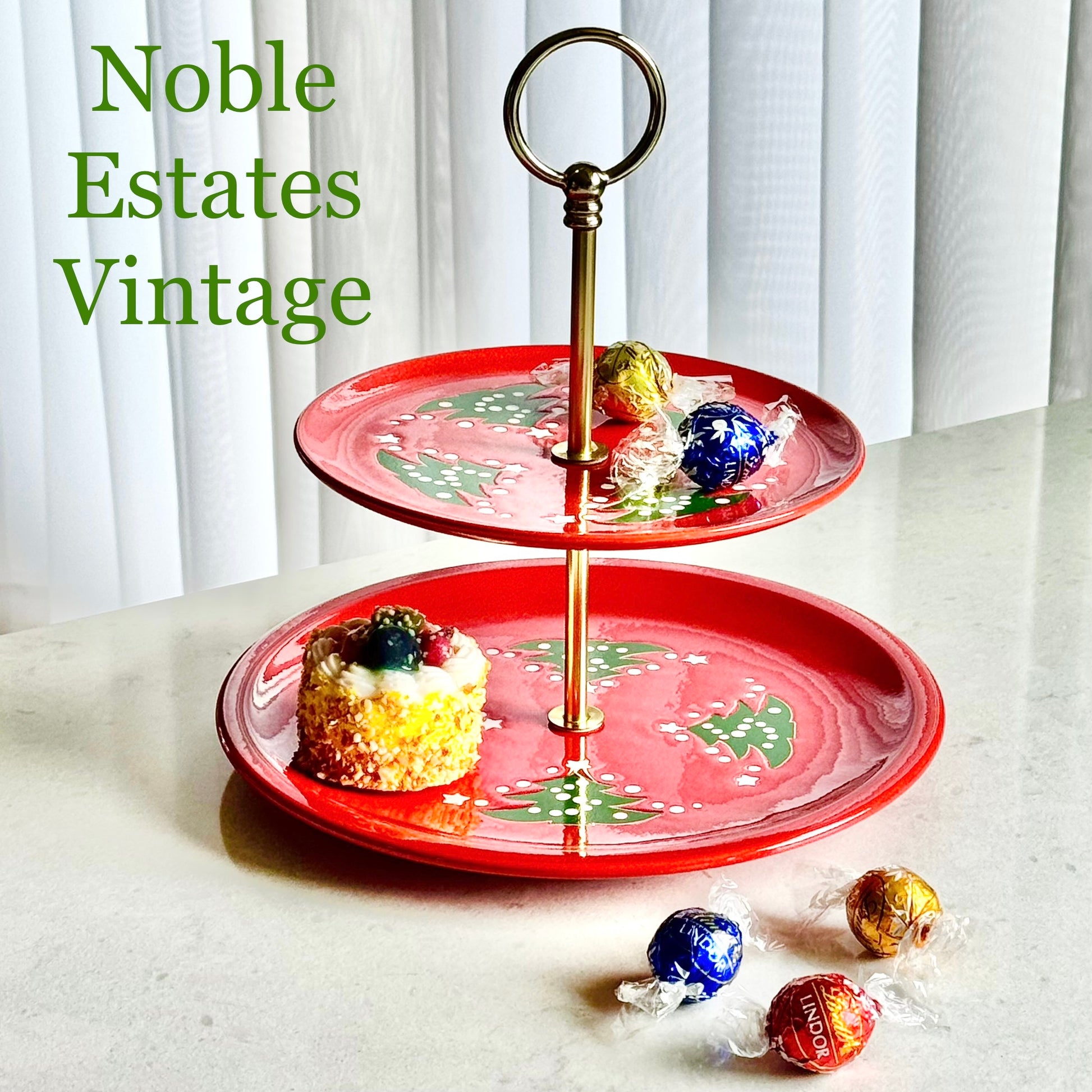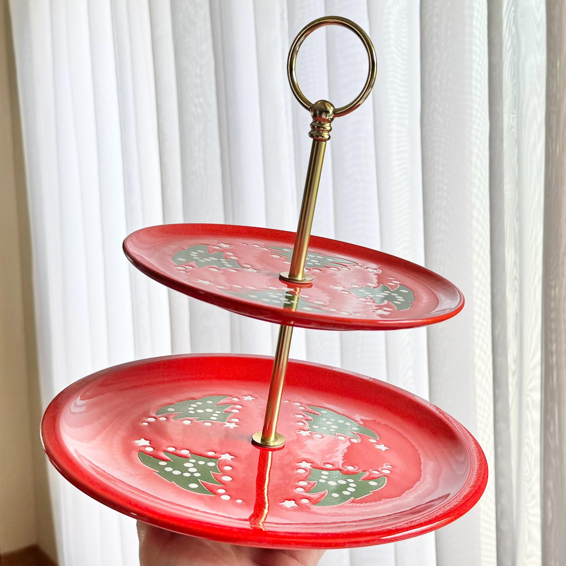 Vintage Waechtersbach Red Christmas Tree Two-Tier Tidbit Tray