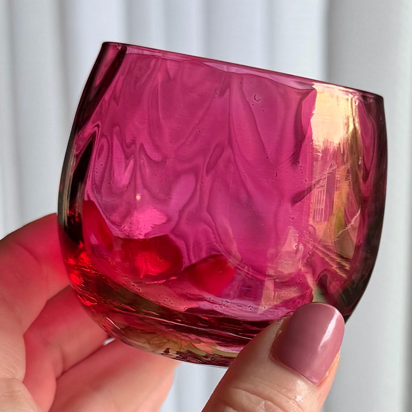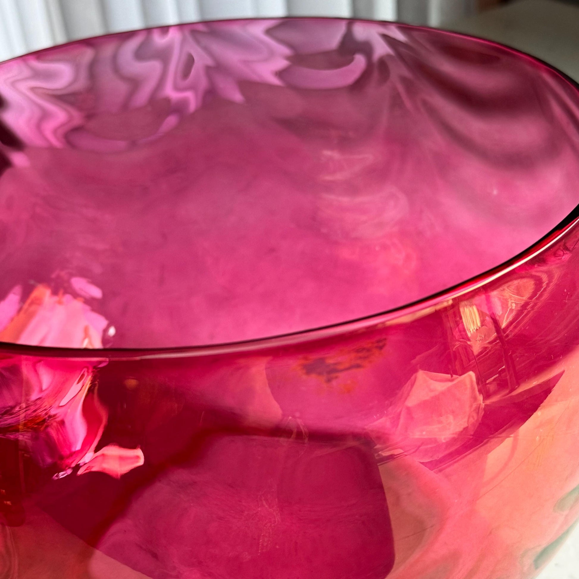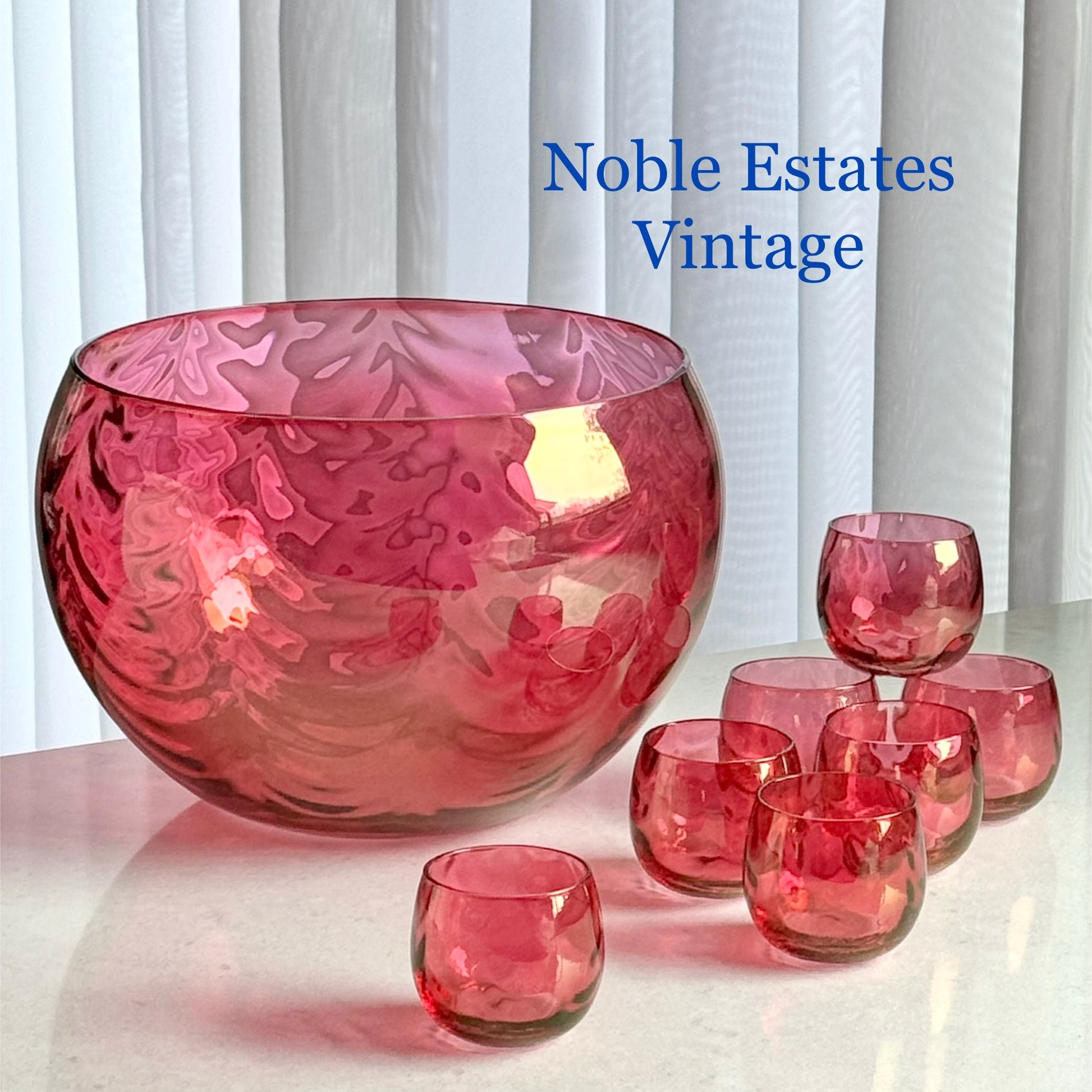 Vintage West Virginia Glass Rose Lustre Loop Optic Punch Bowl and 7 Glasses