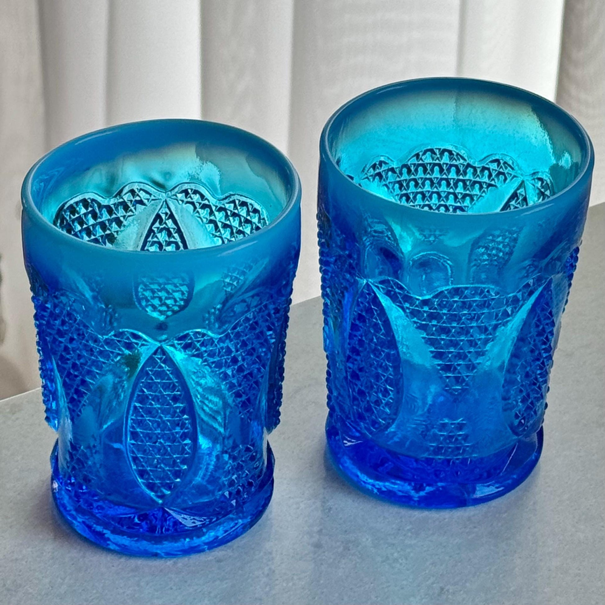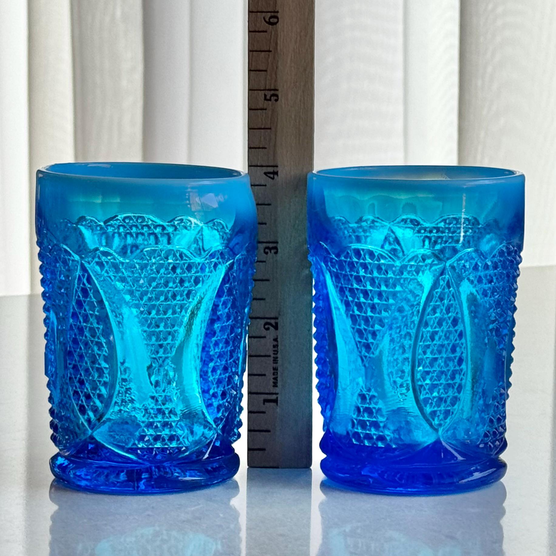 Vintage Westmoreland High Hob Blue Opalescent Tumblers - Set of 2 Glasses